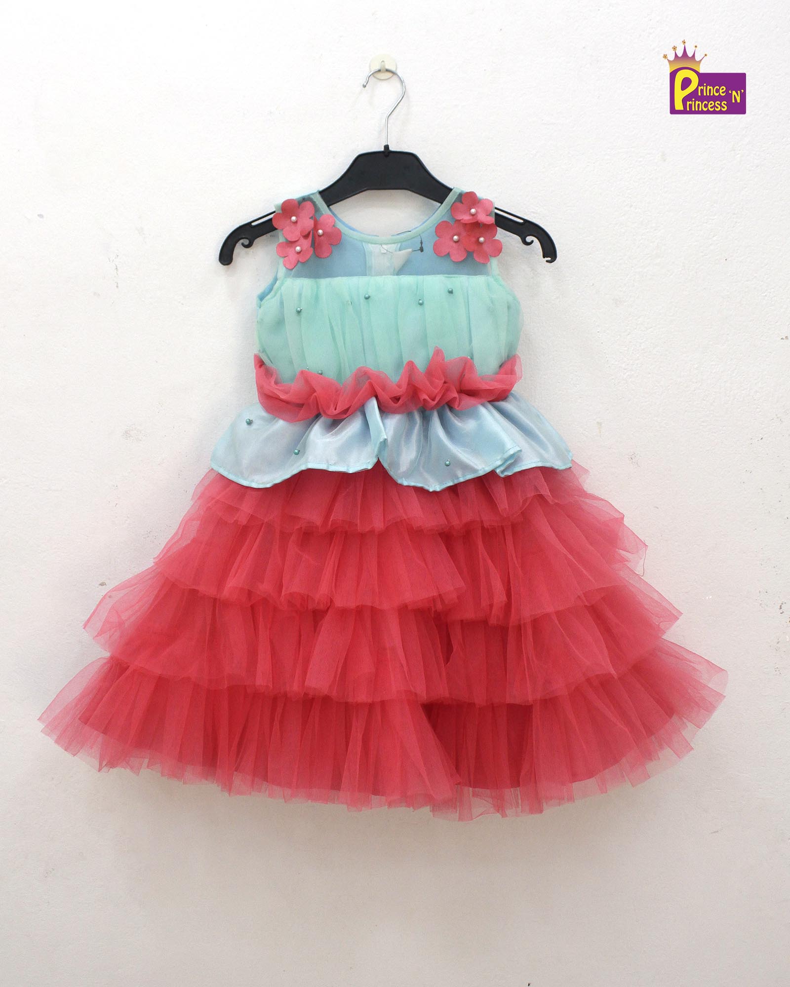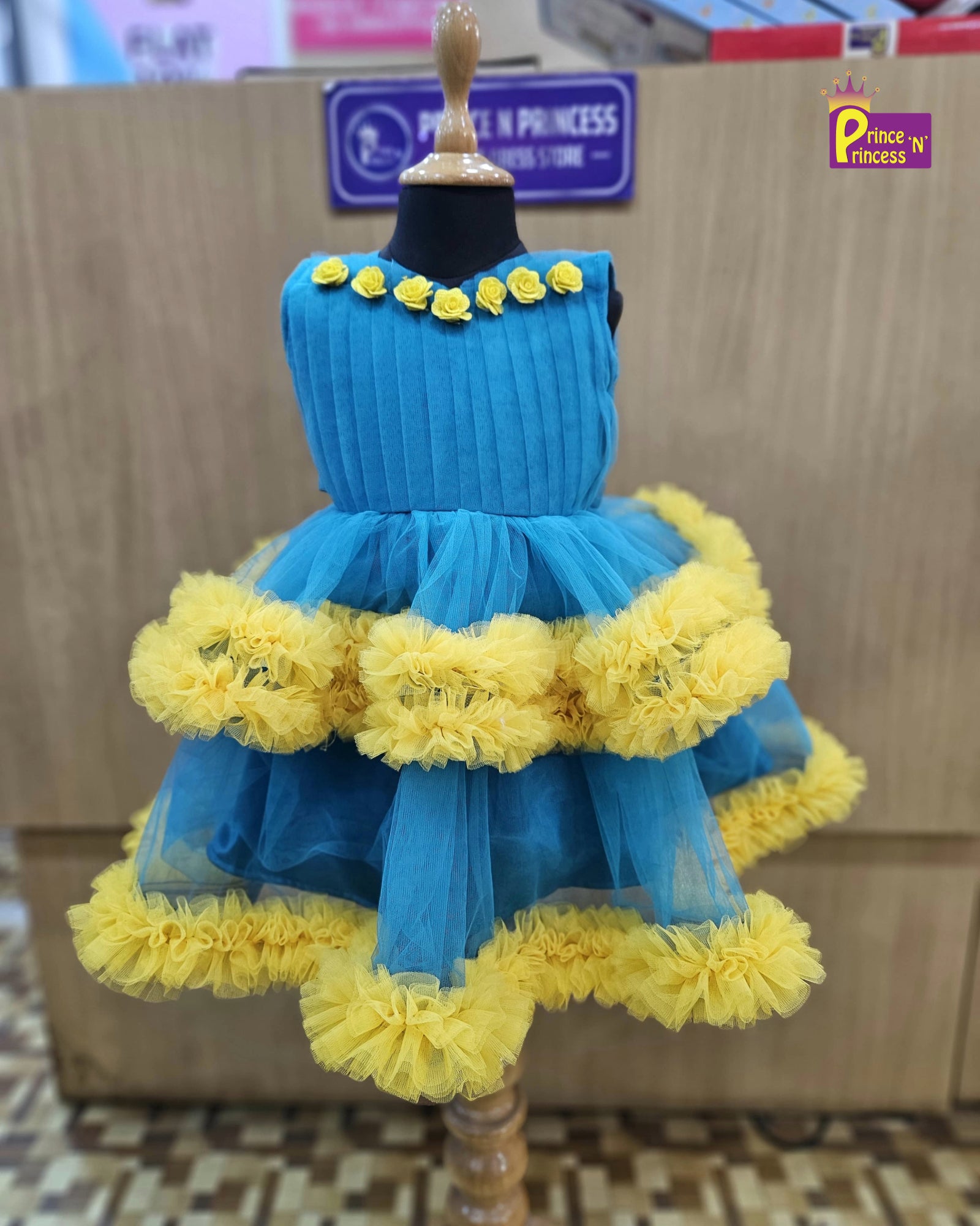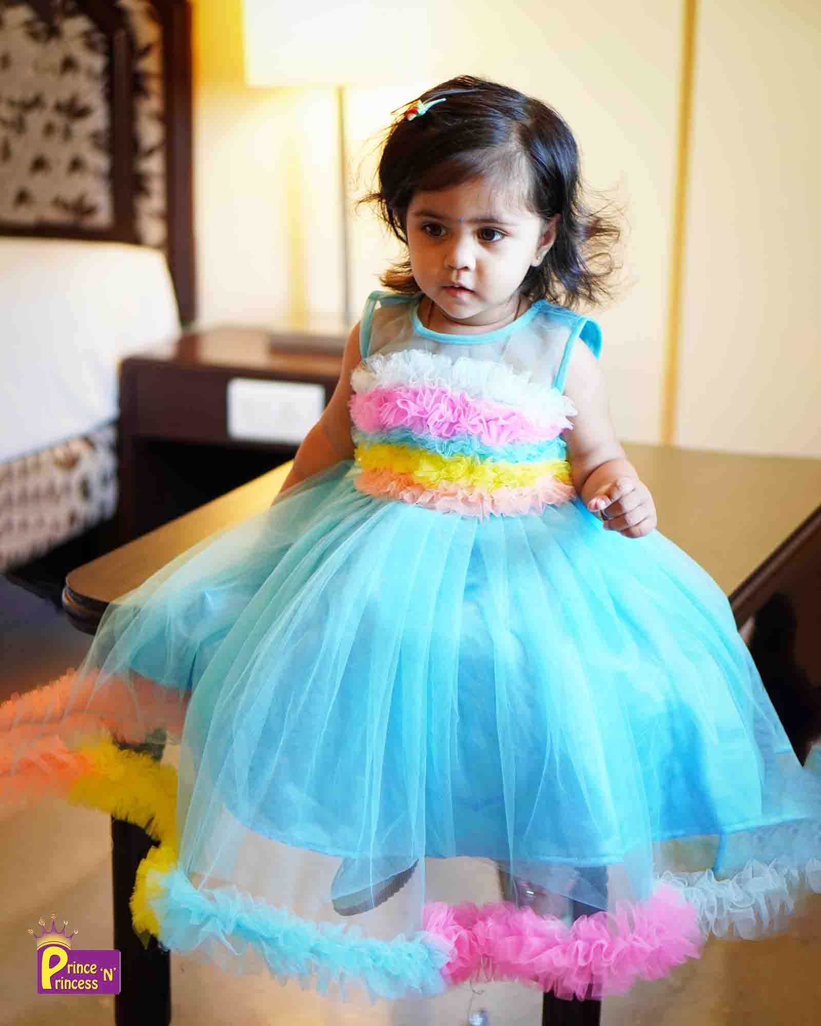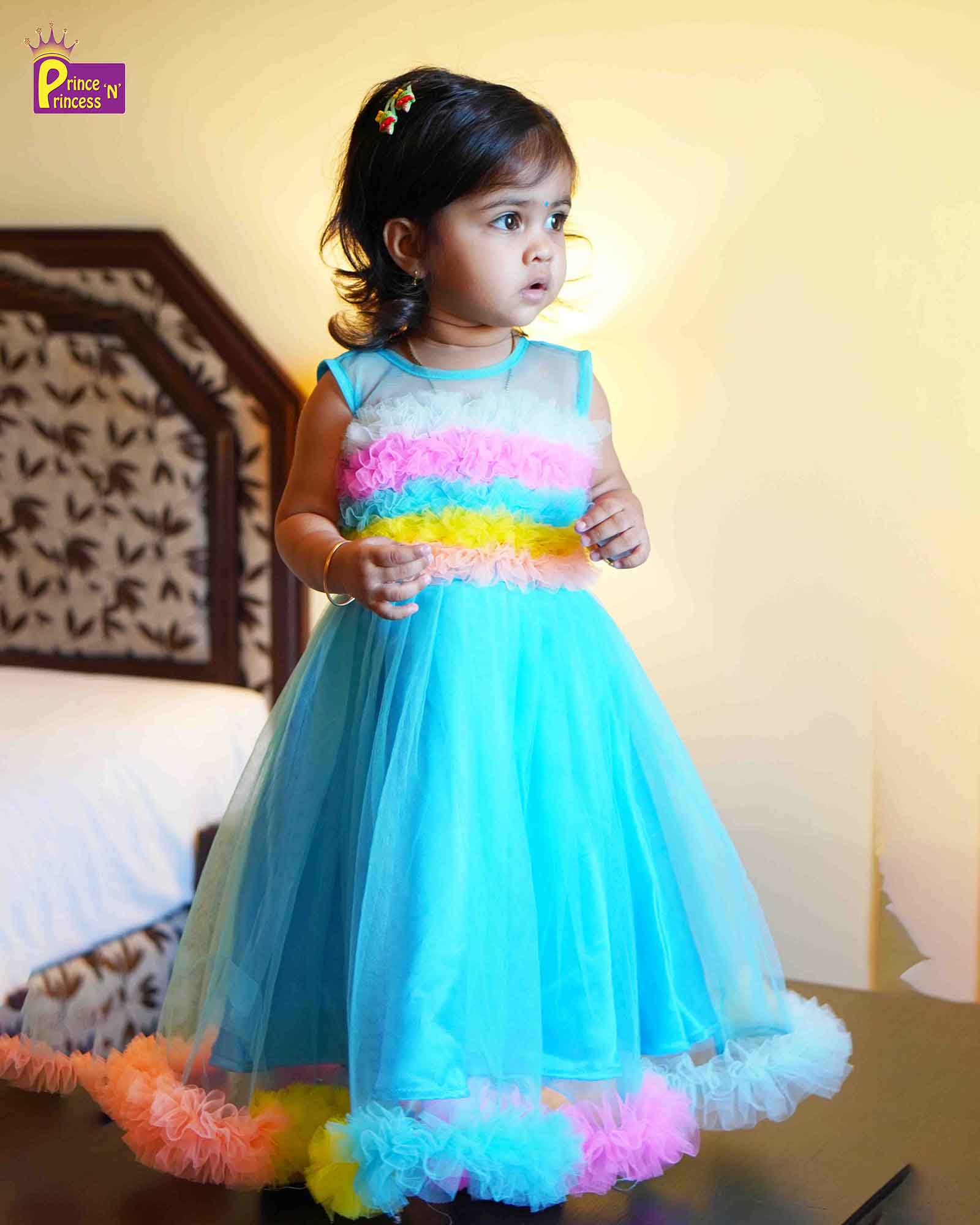 Kids Blue Aari work Prince N Princess Birthday Gown WGF035