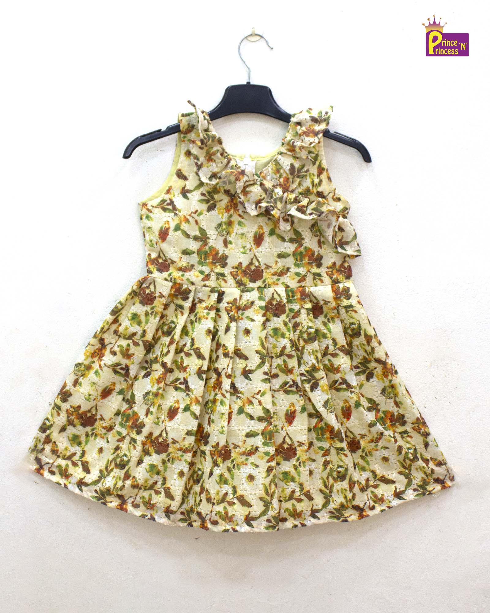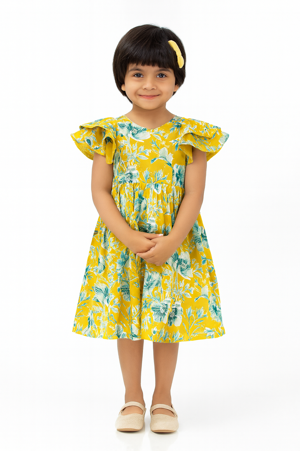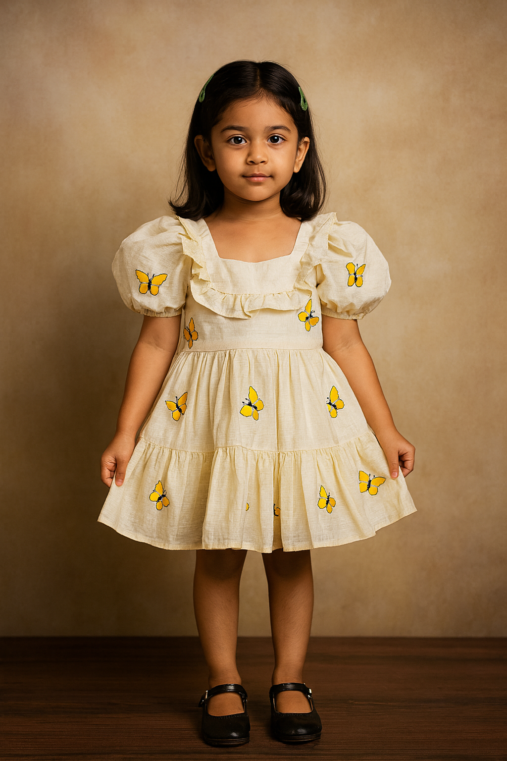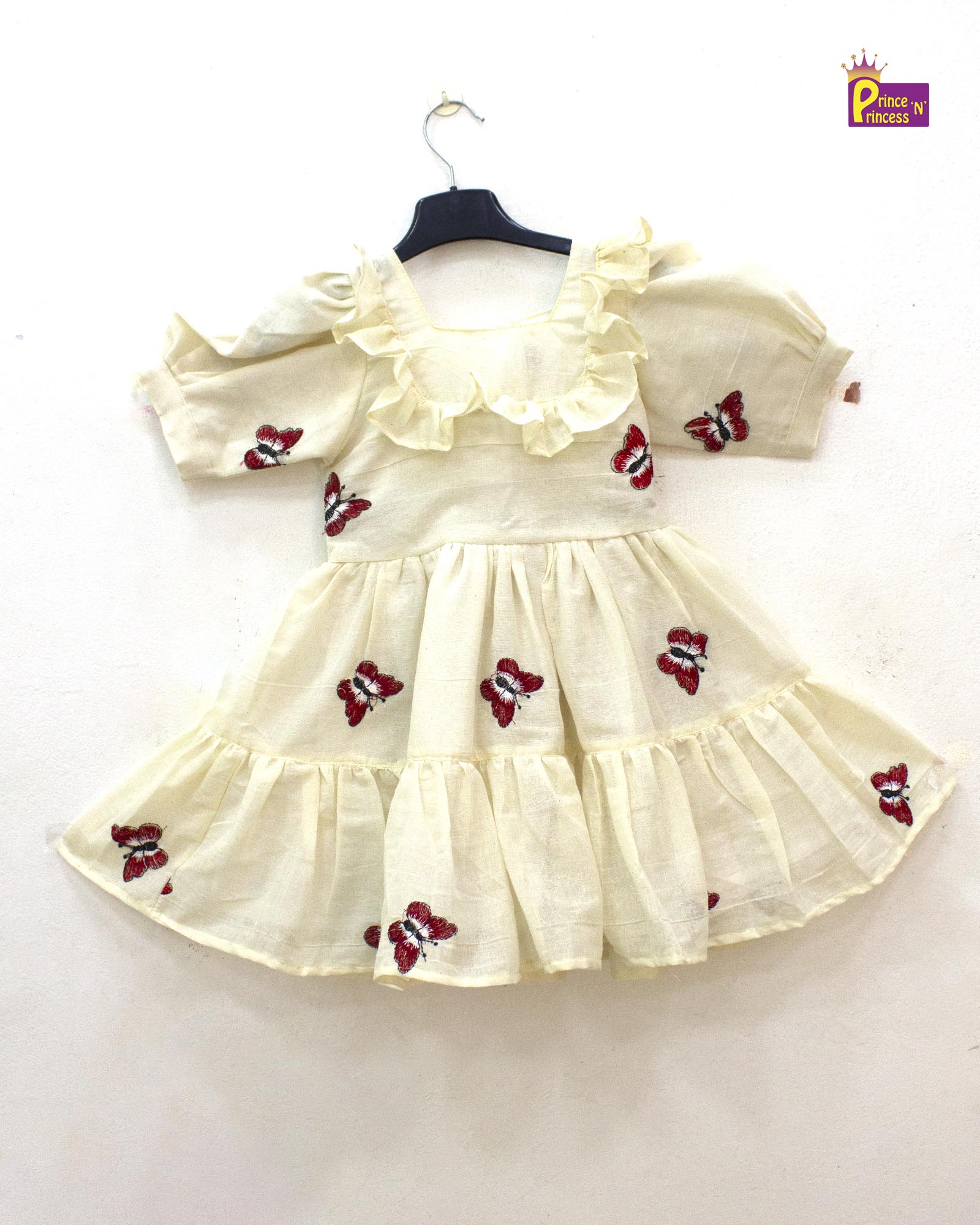 Kids Halfwhite With Yellow Printed Butterfly Cotton Frock CF368