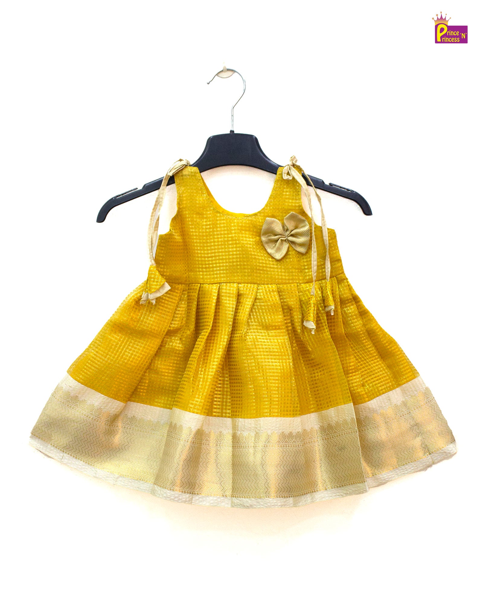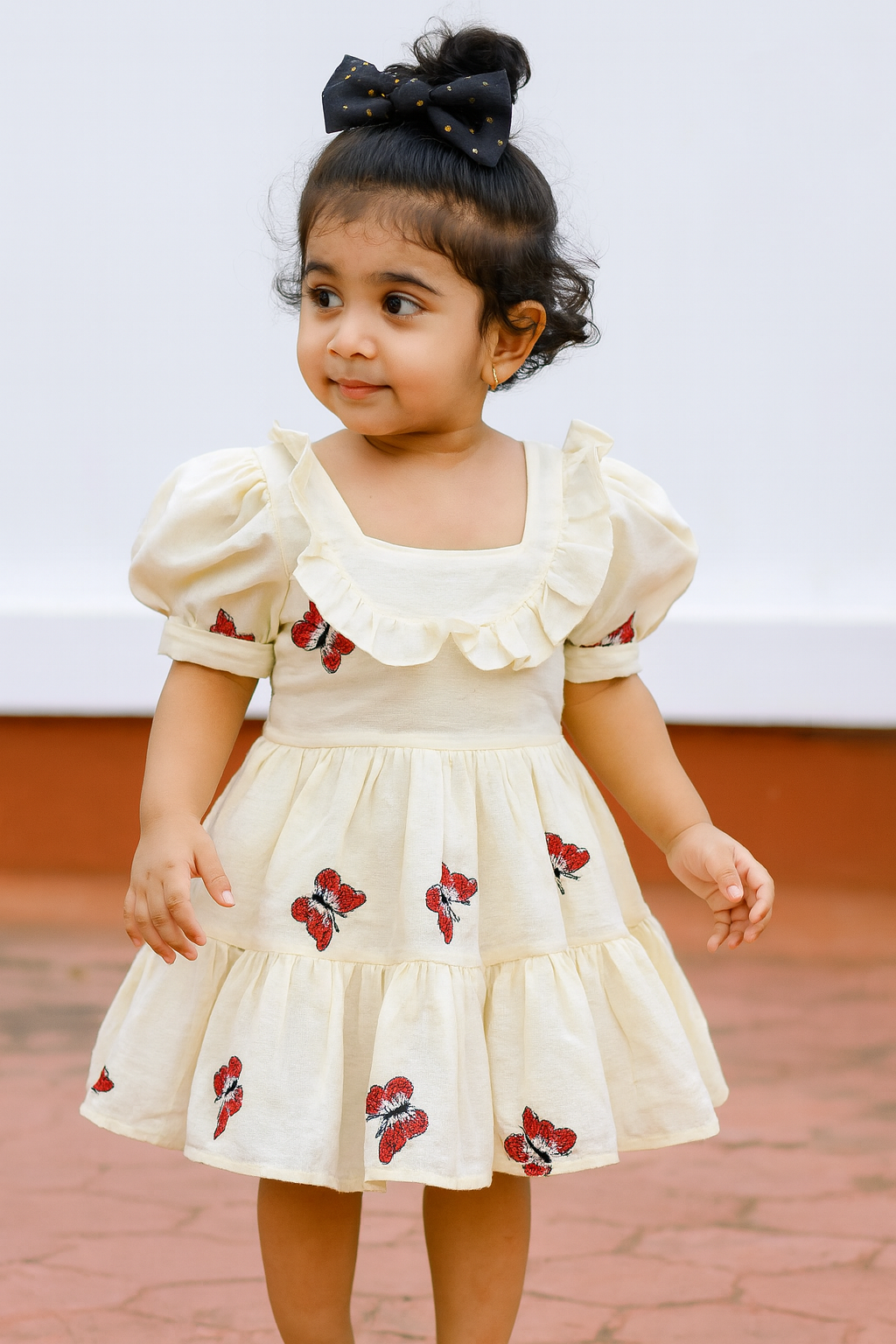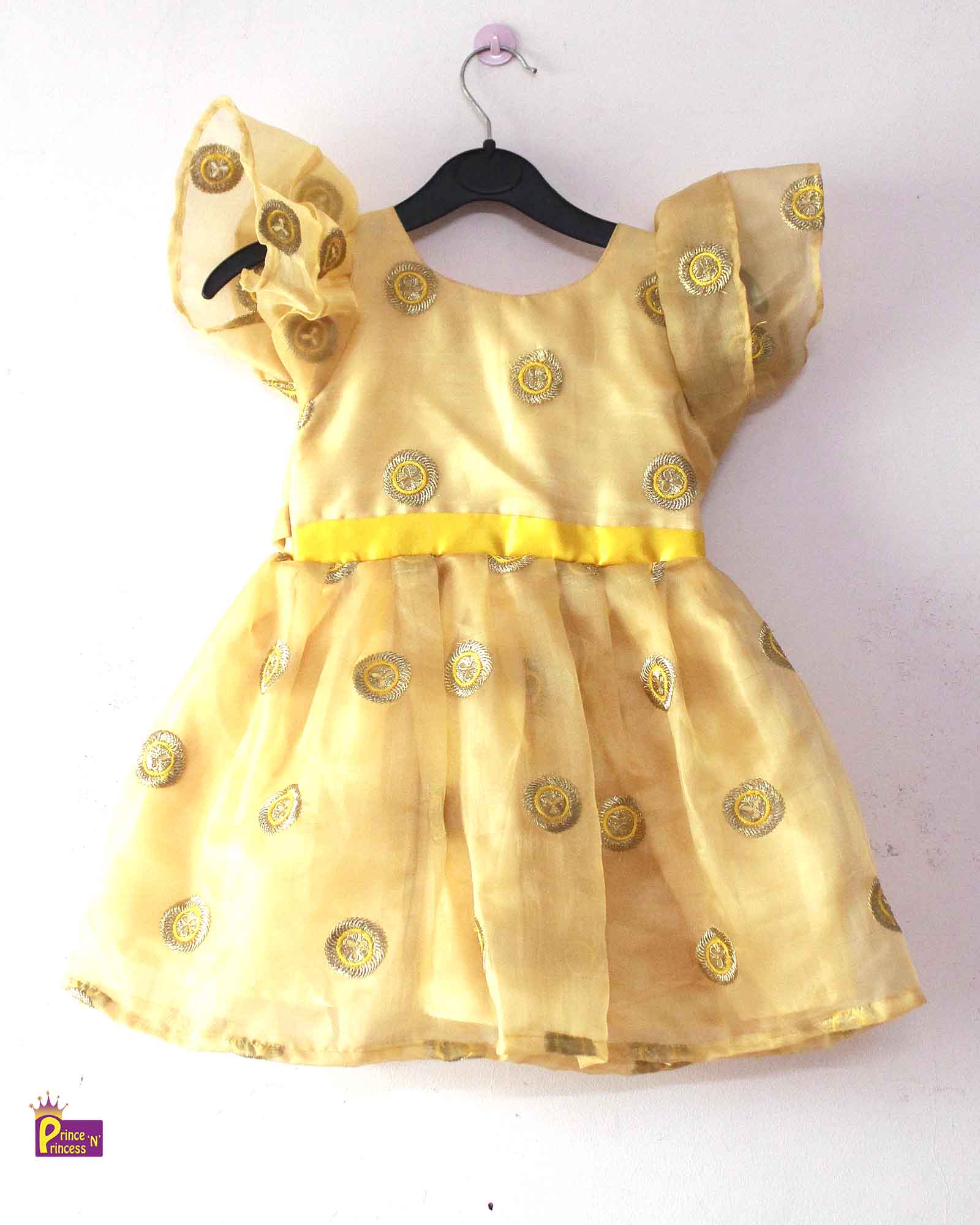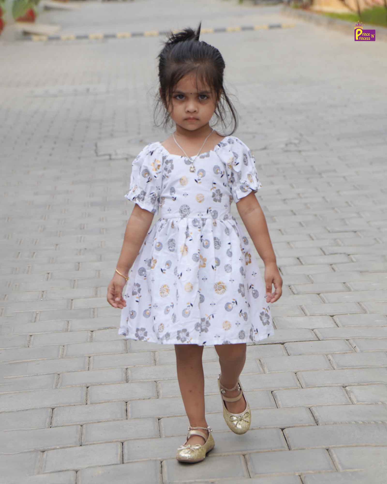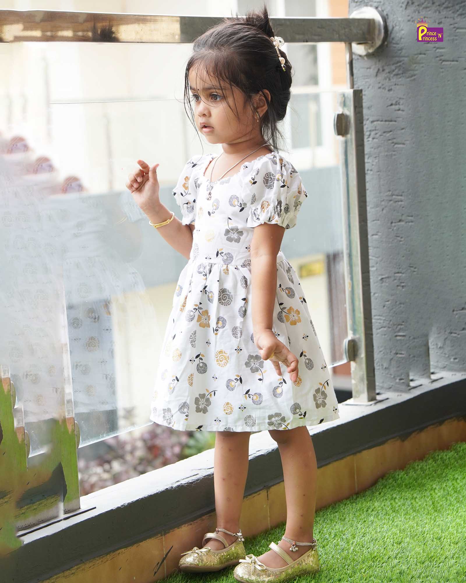 Kids Halfwhite With Yellow Printed Butterfly Cotton Frock CF368