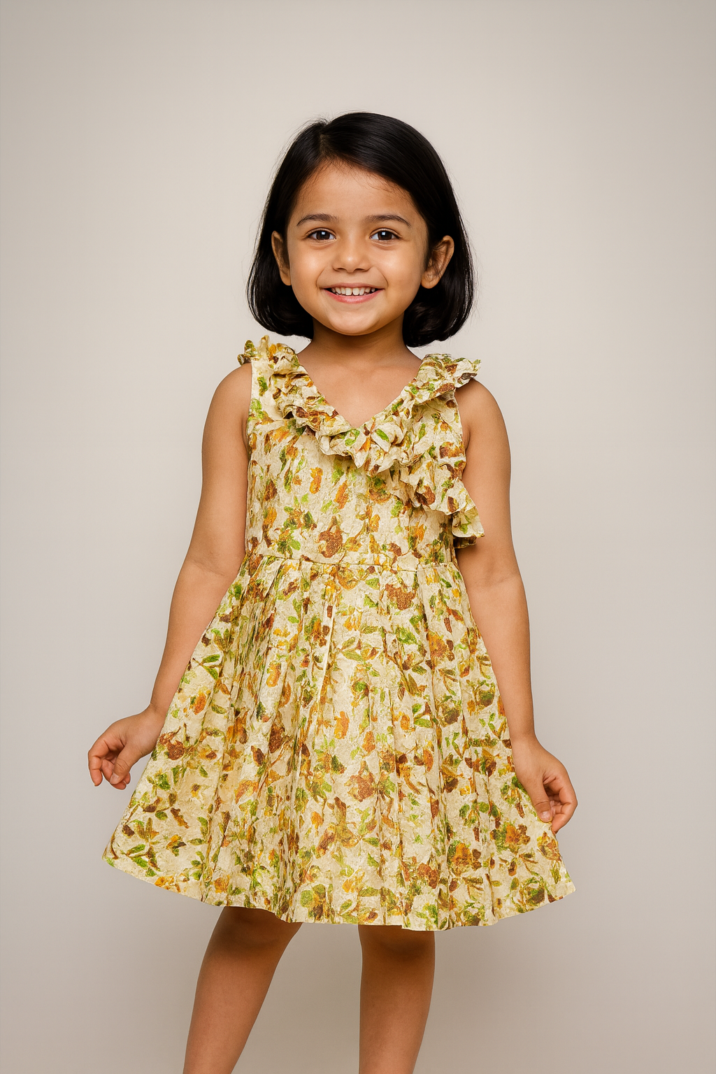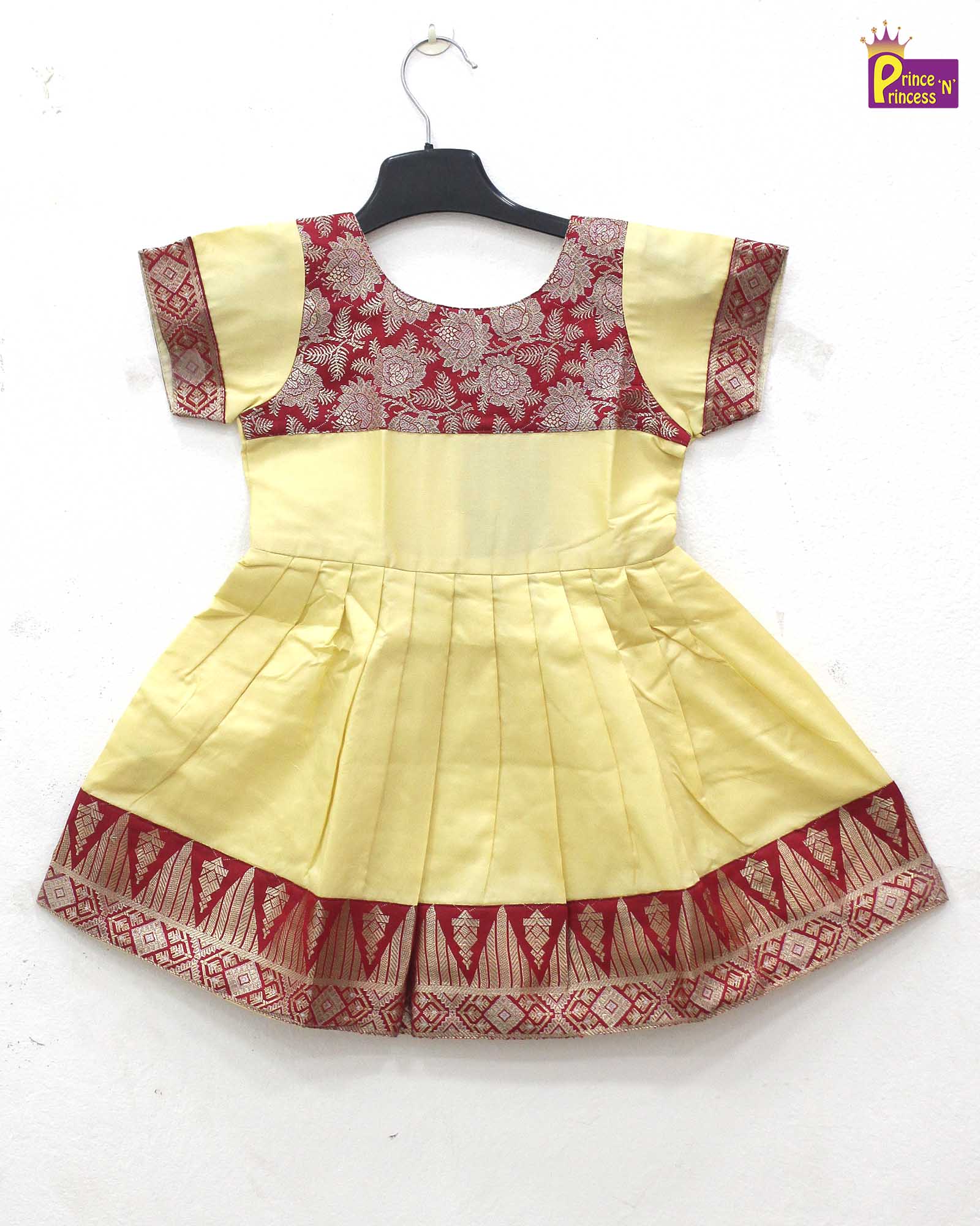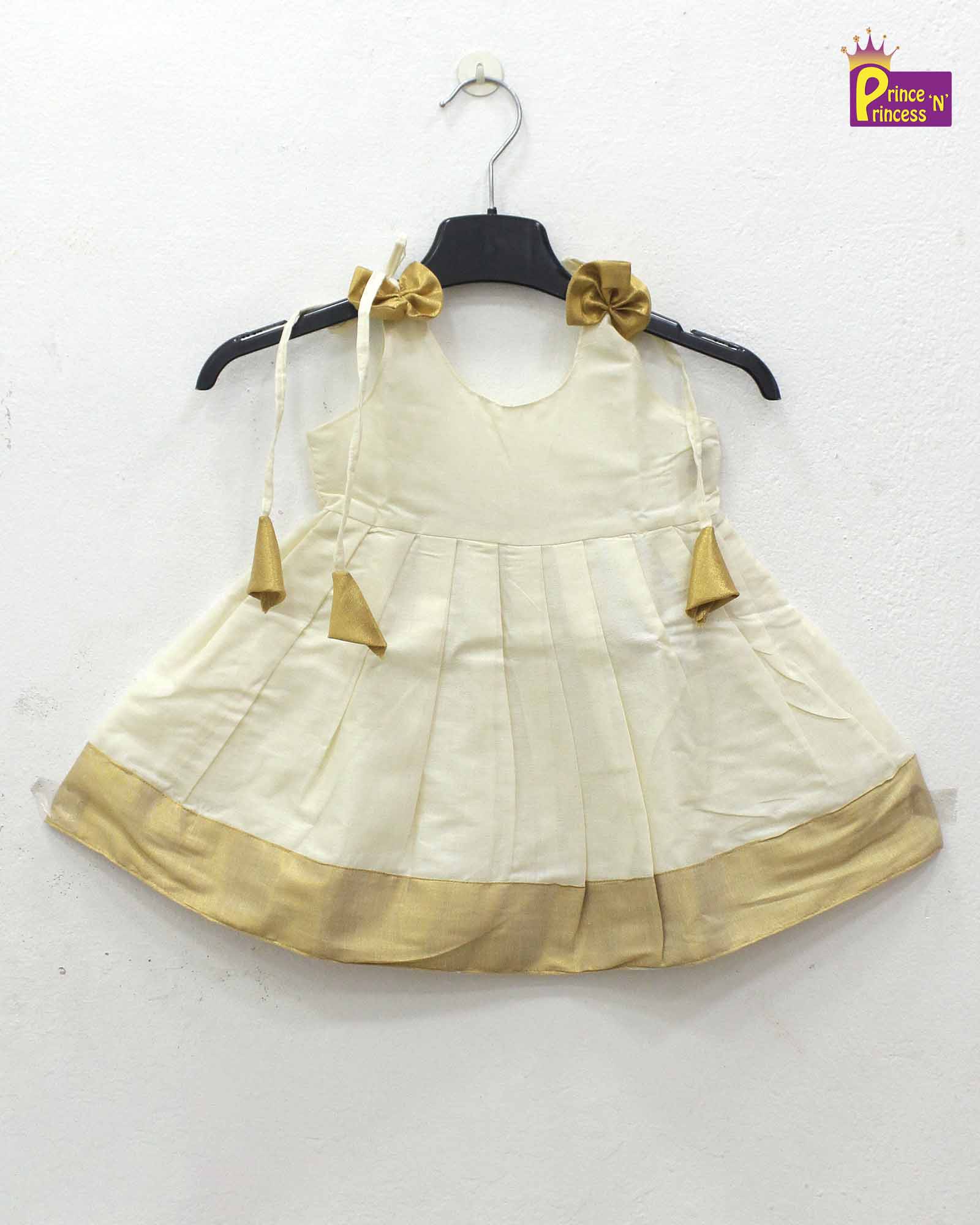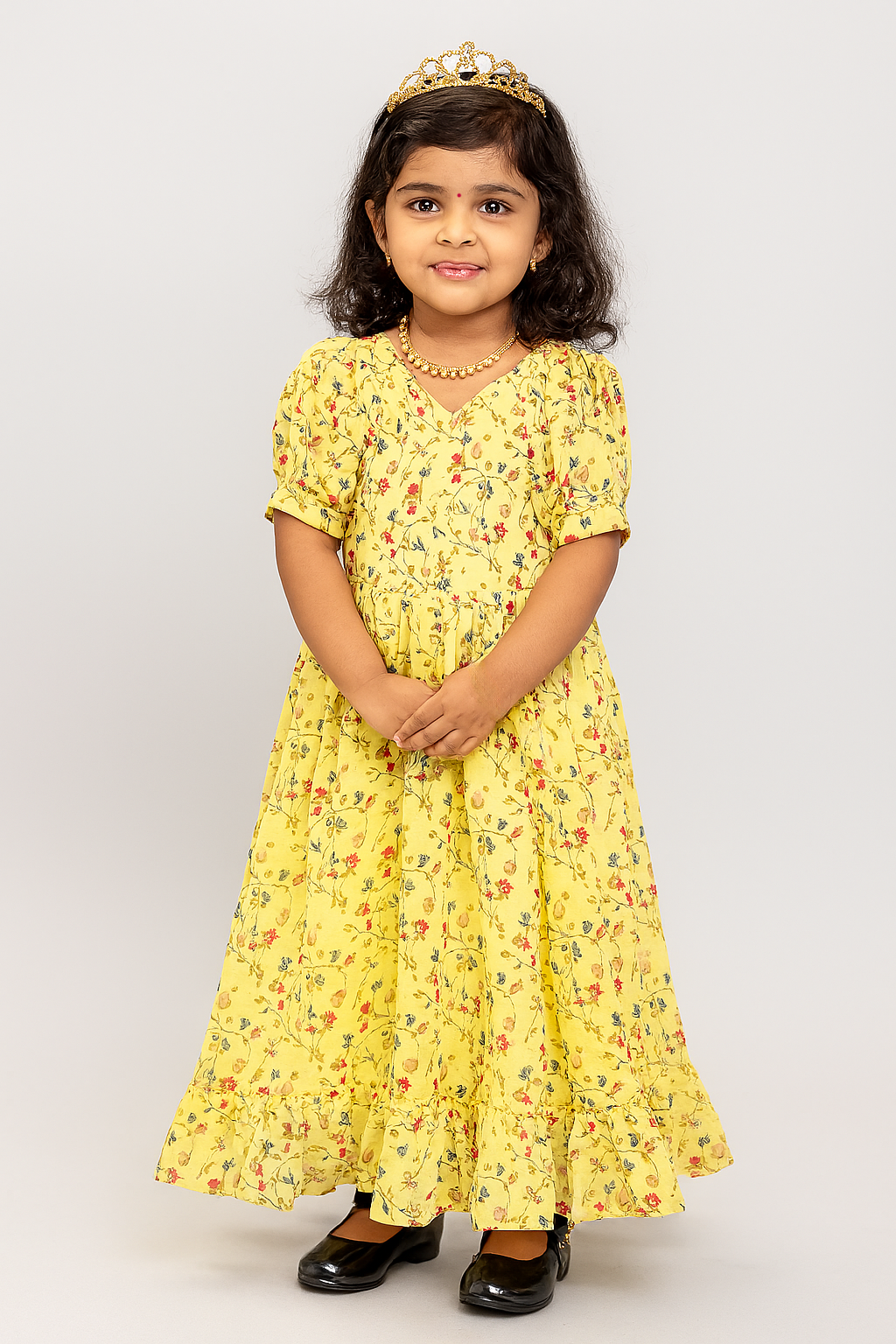Kids Halfwhite With Yellow Printed Butterfly Cotton Frock CF368
