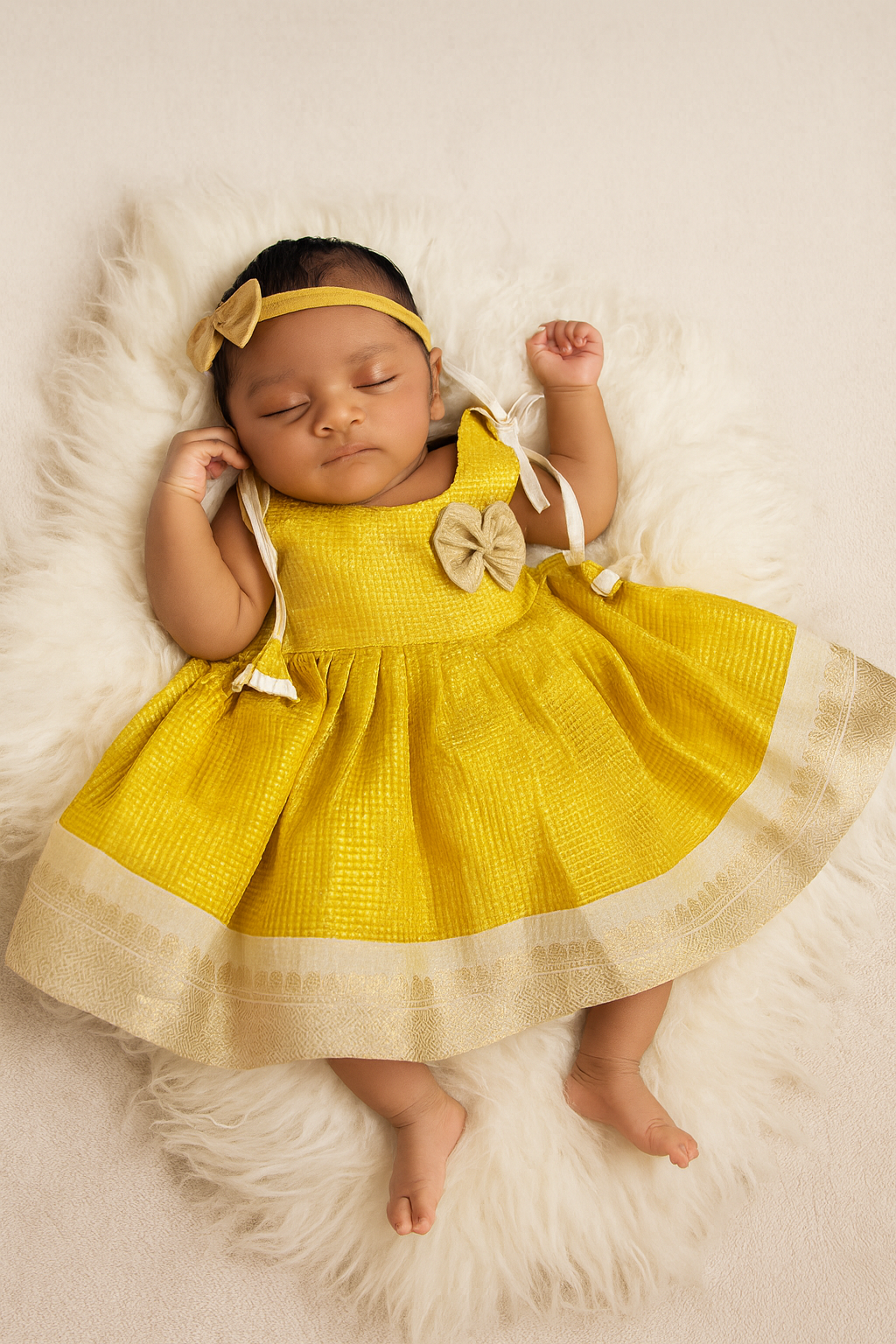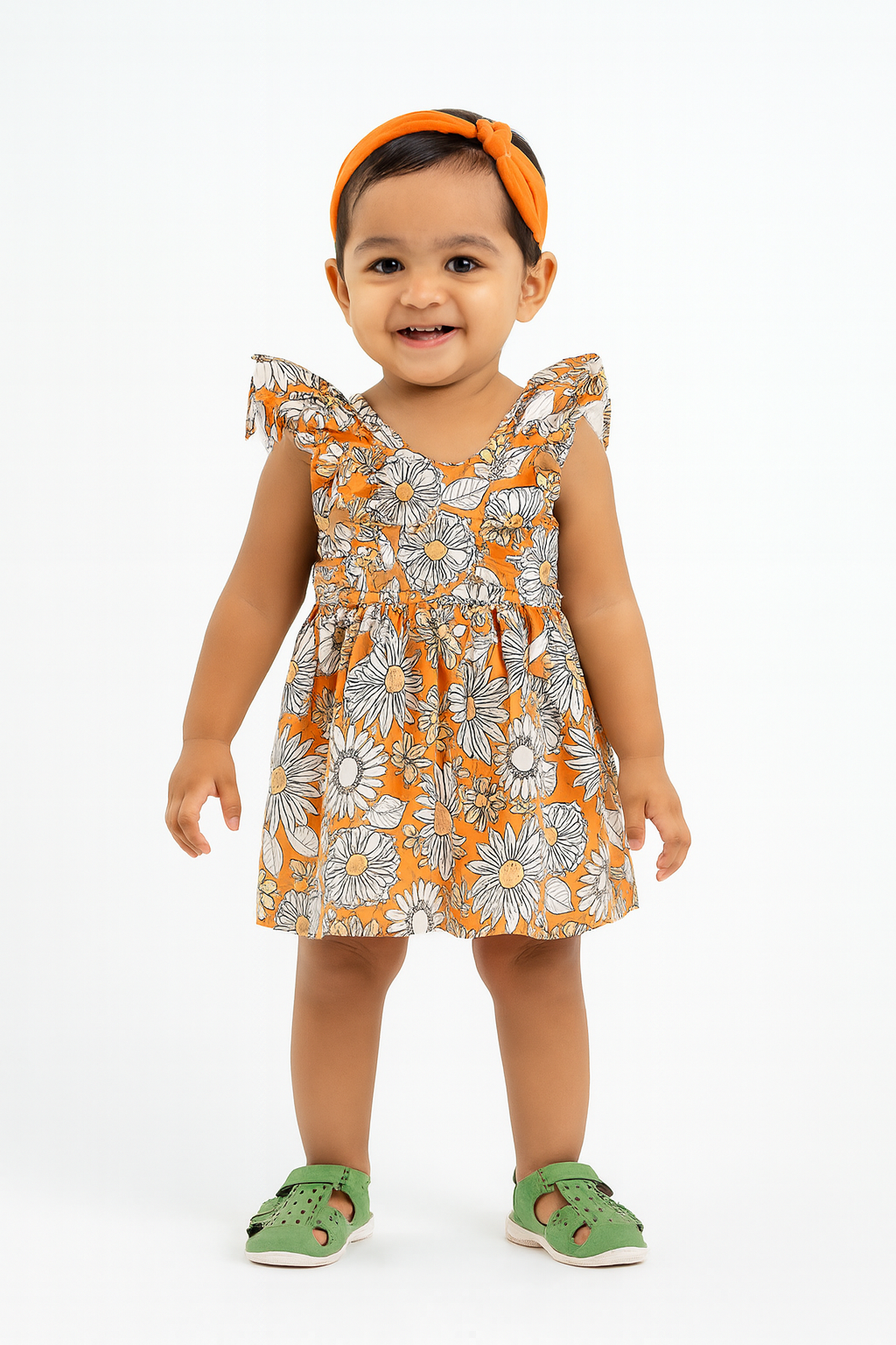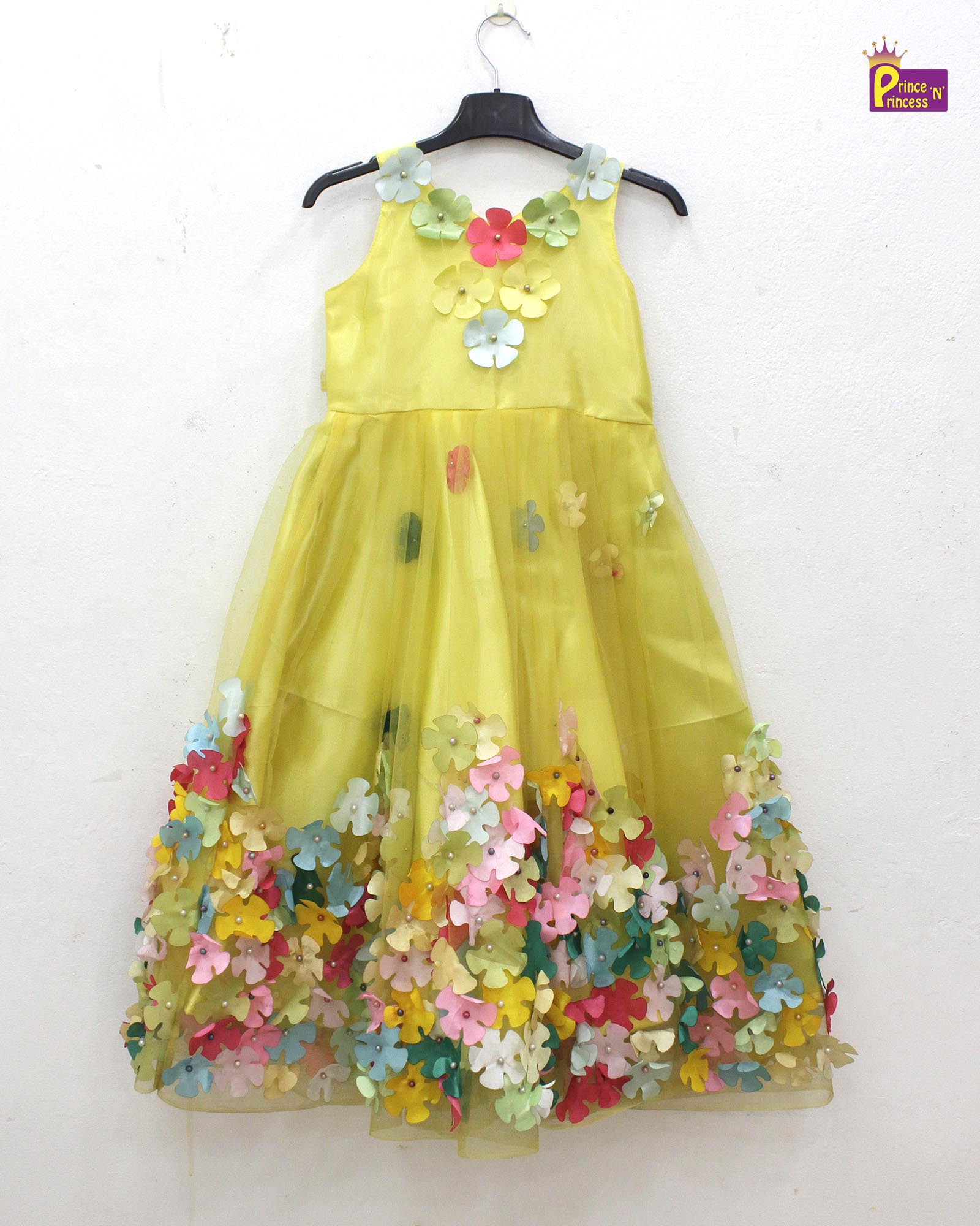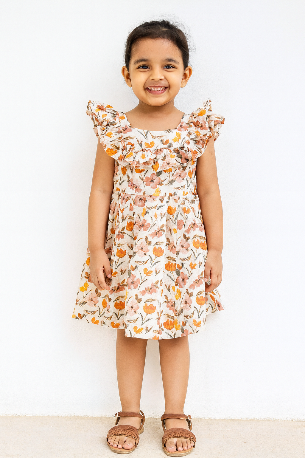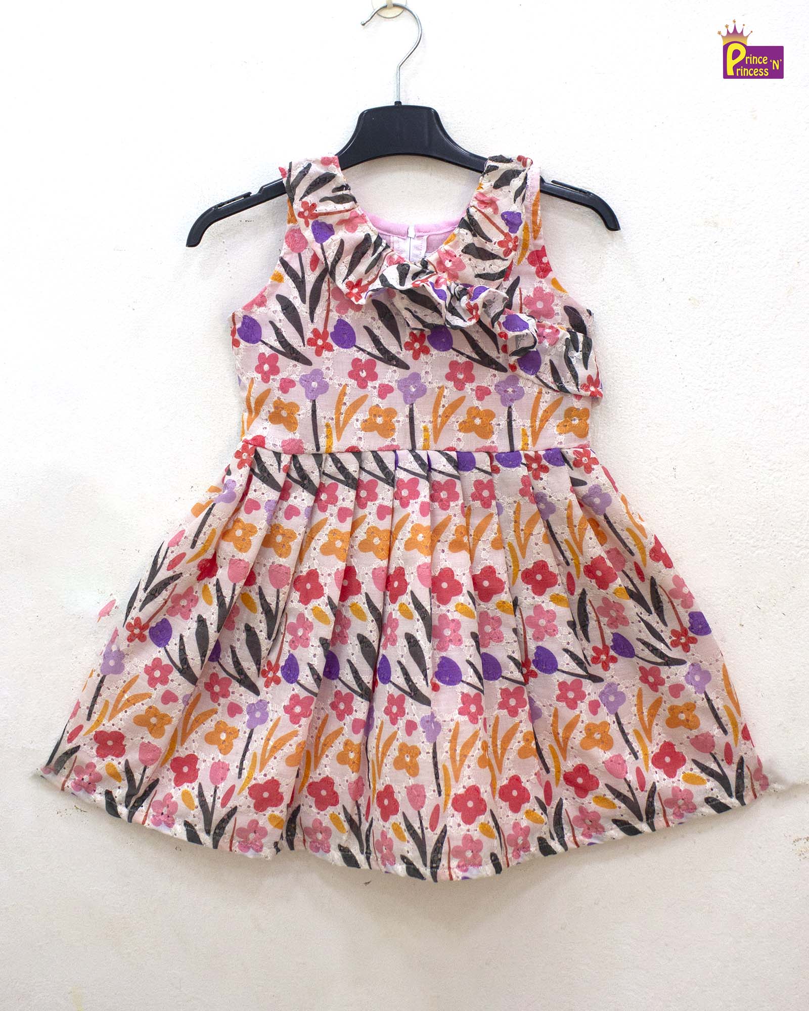 Kids Halfwhite With Yellow Printed Butterfly Cotton Frock CF368