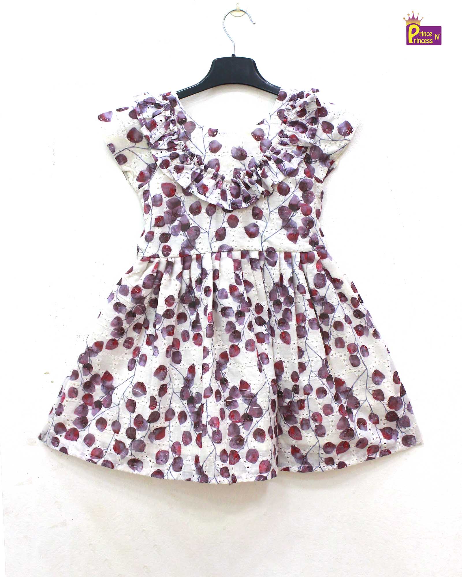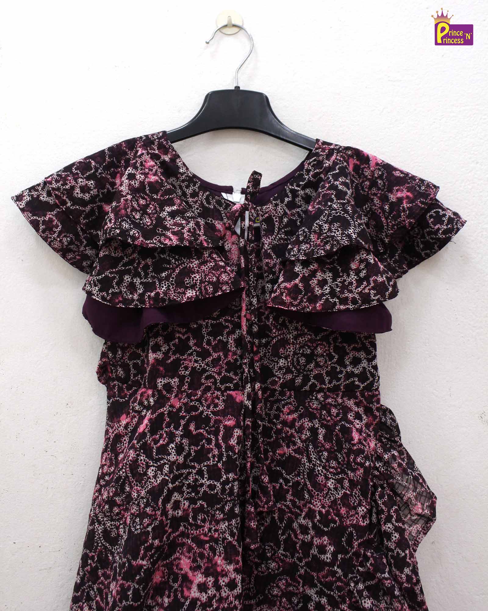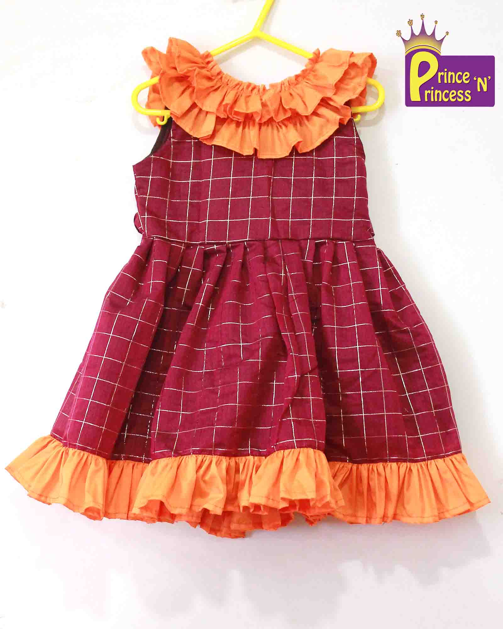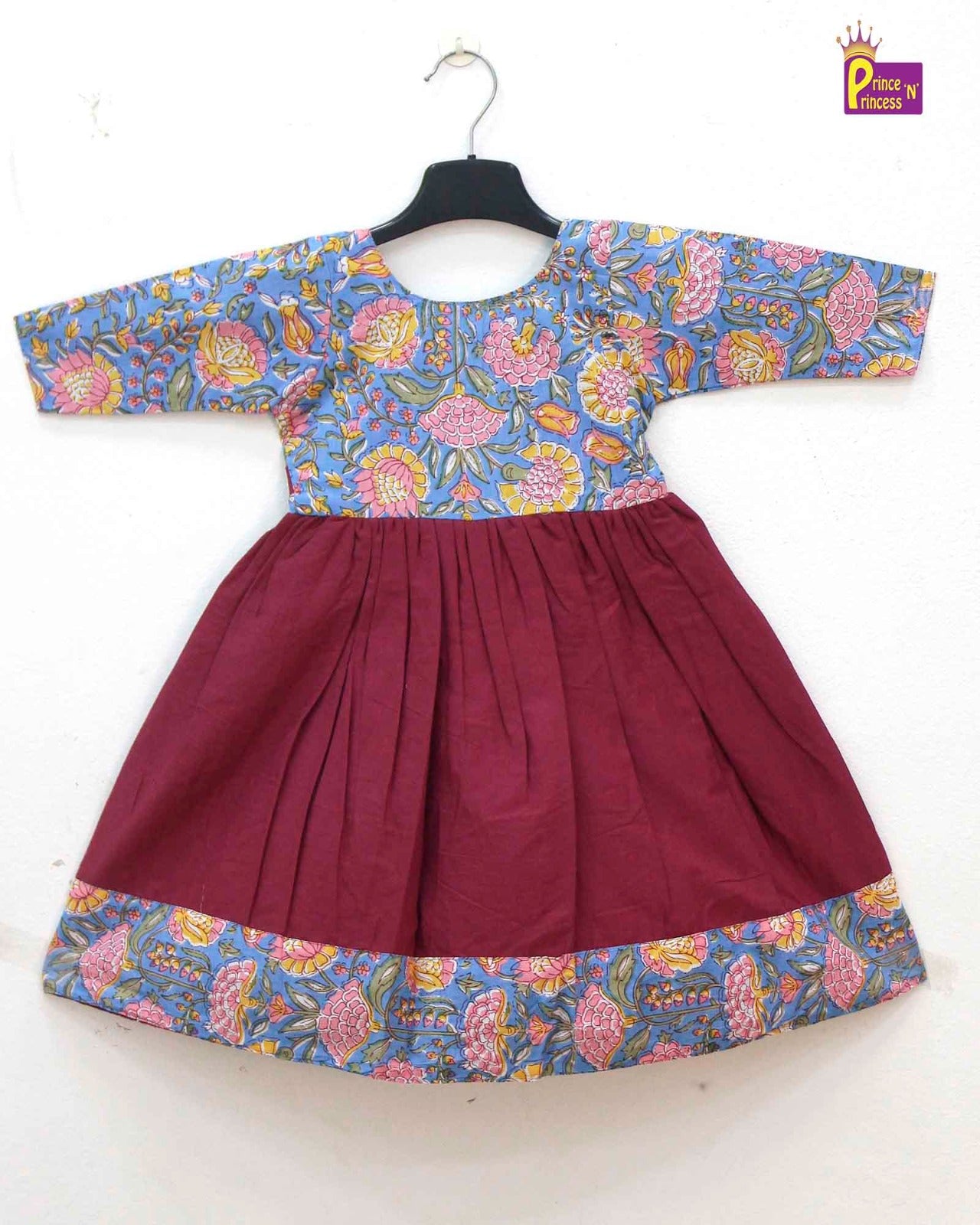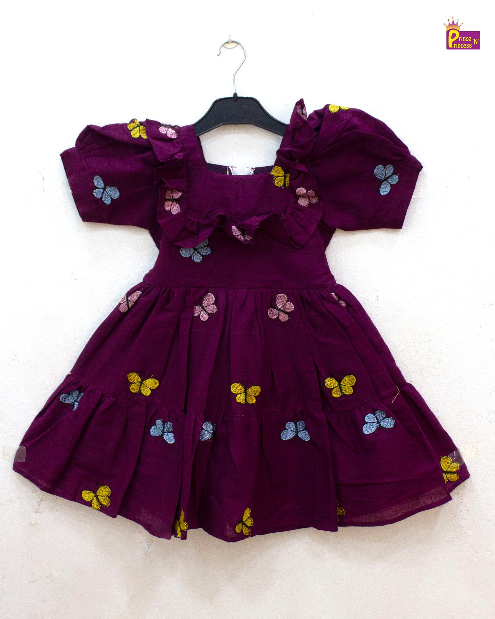 Kids Wine With Butterfly Printed Cotton Frock CF386