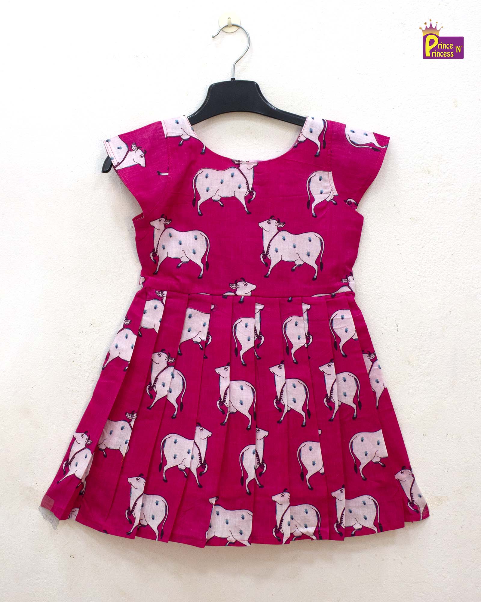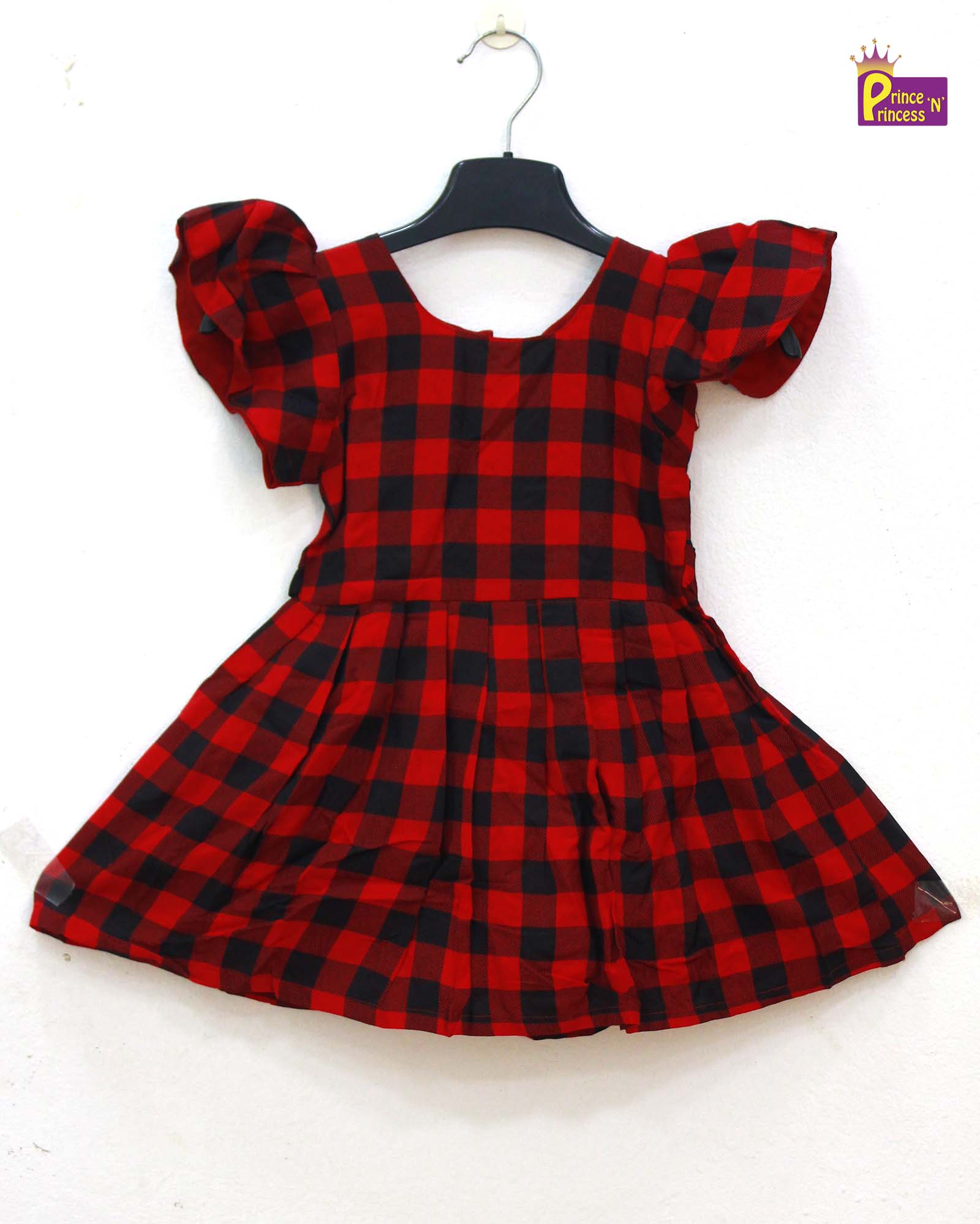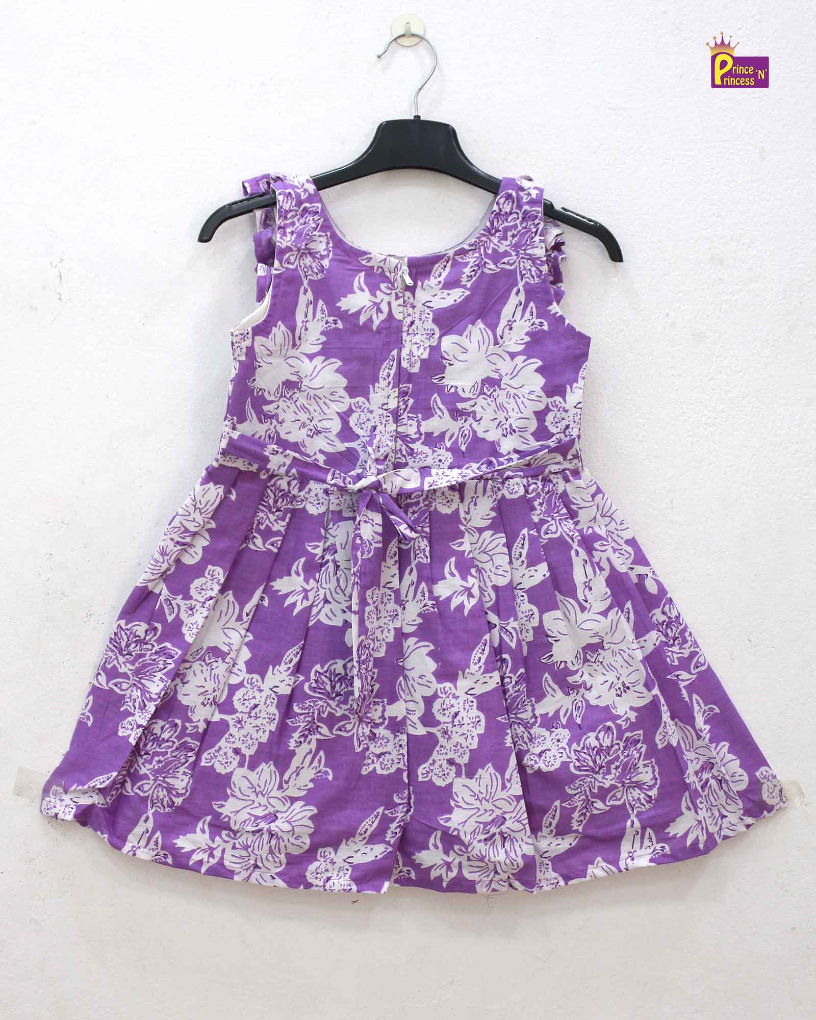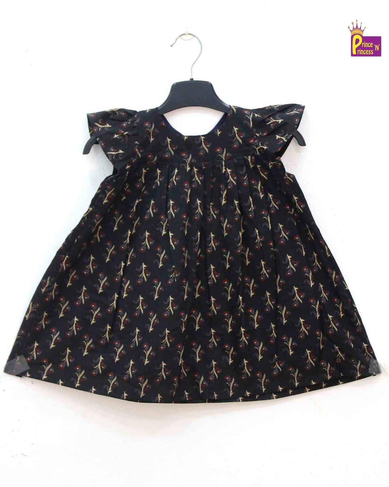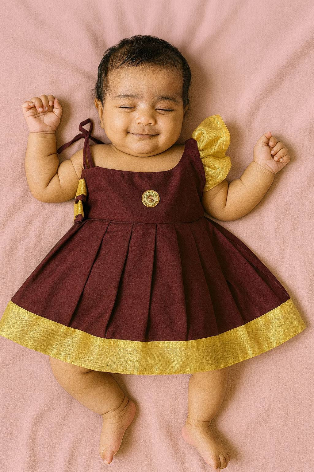 Kids Wine With Butterfly Printed Cotton Frock CF386