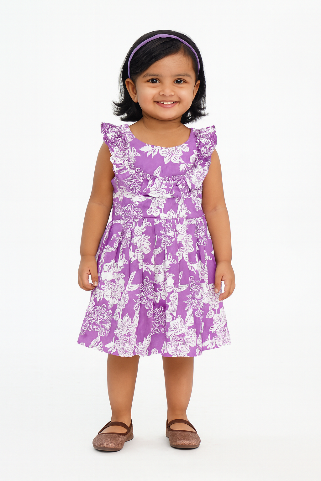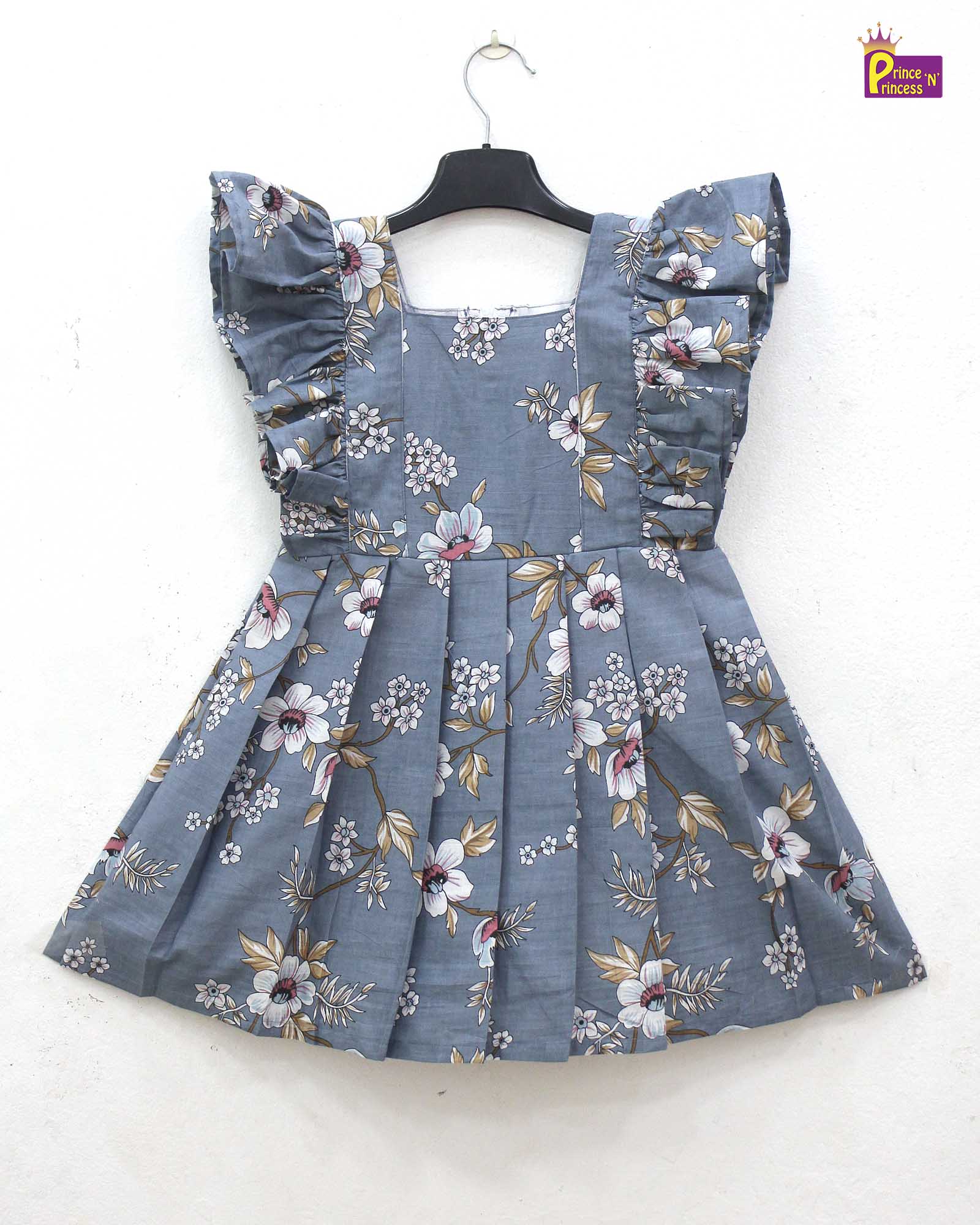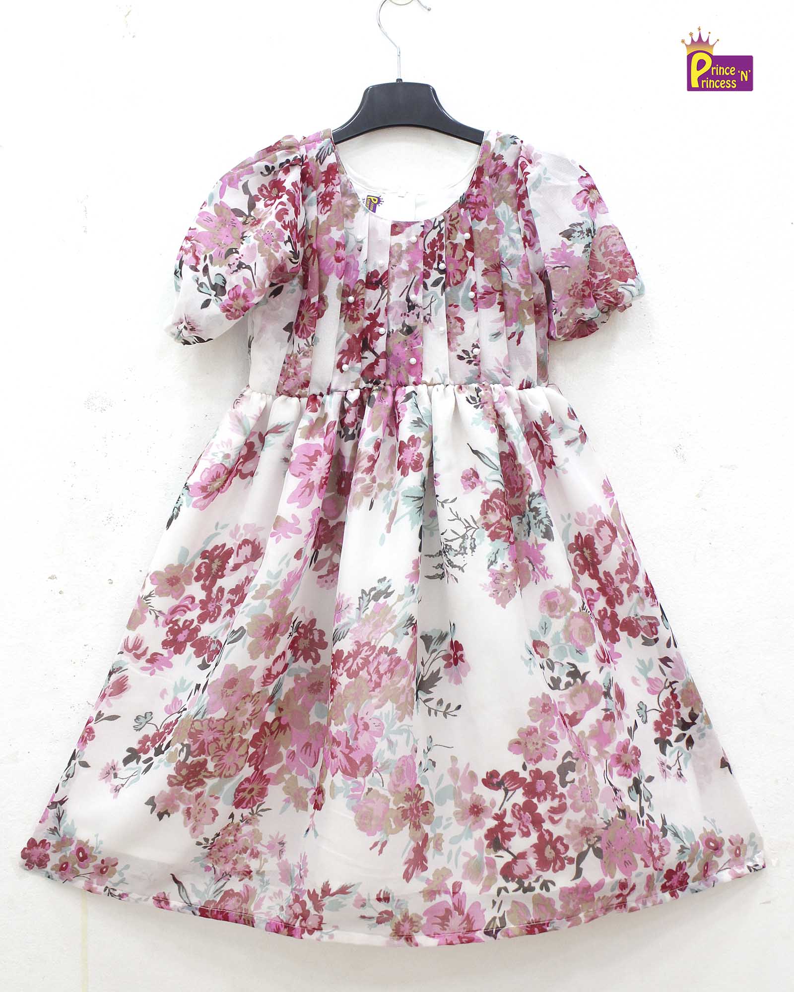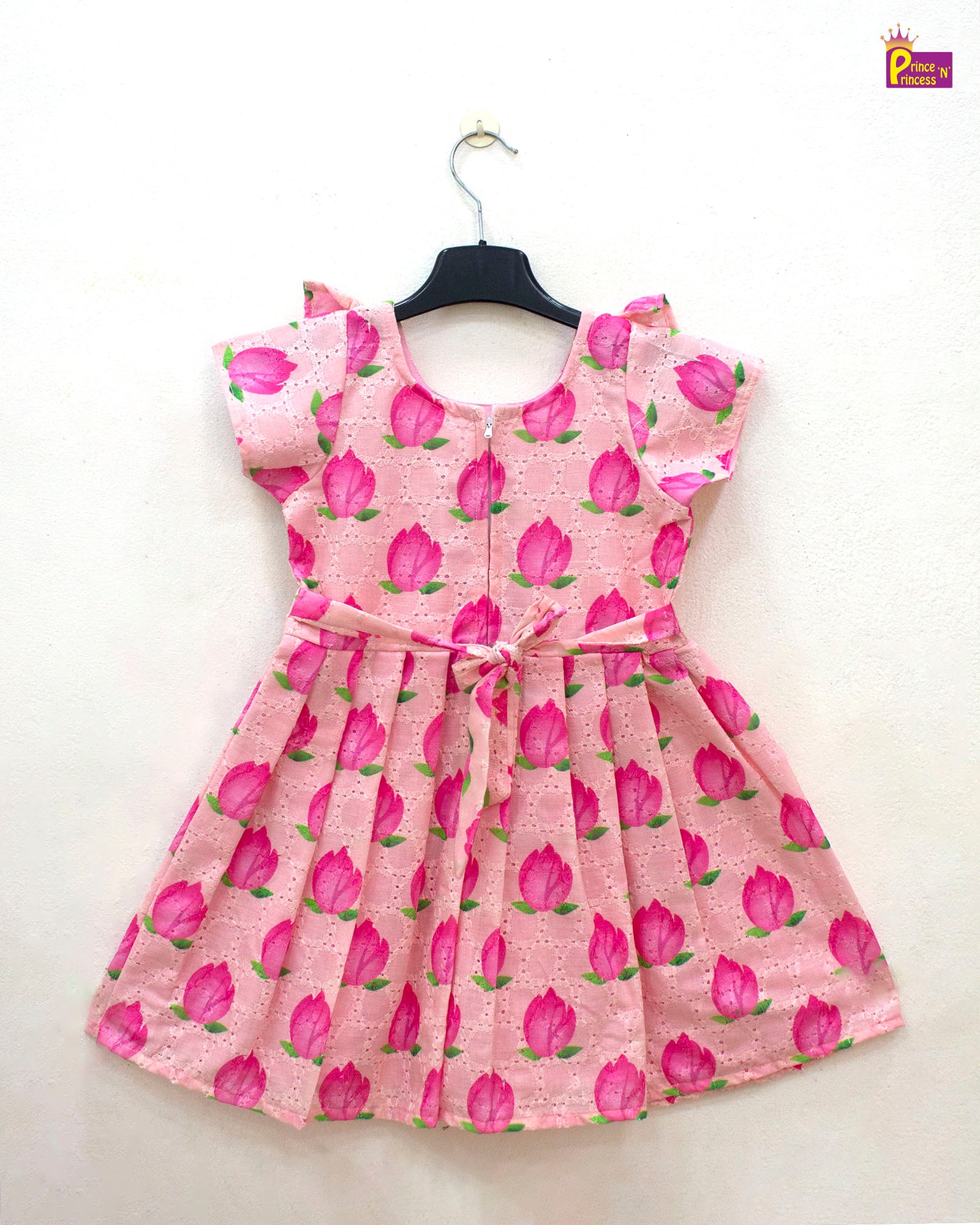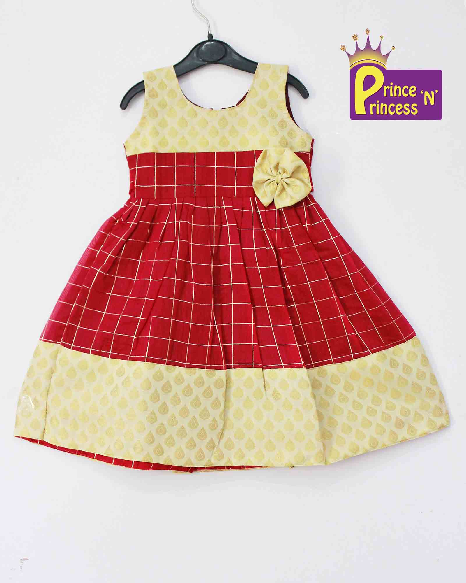 Kids Wine With Butterfly Printed Cotton Frock CF386