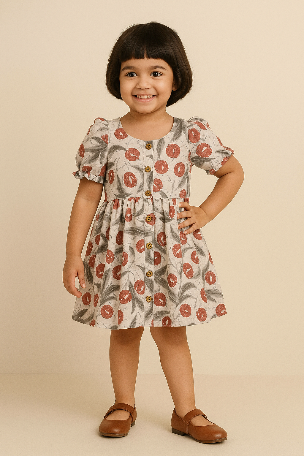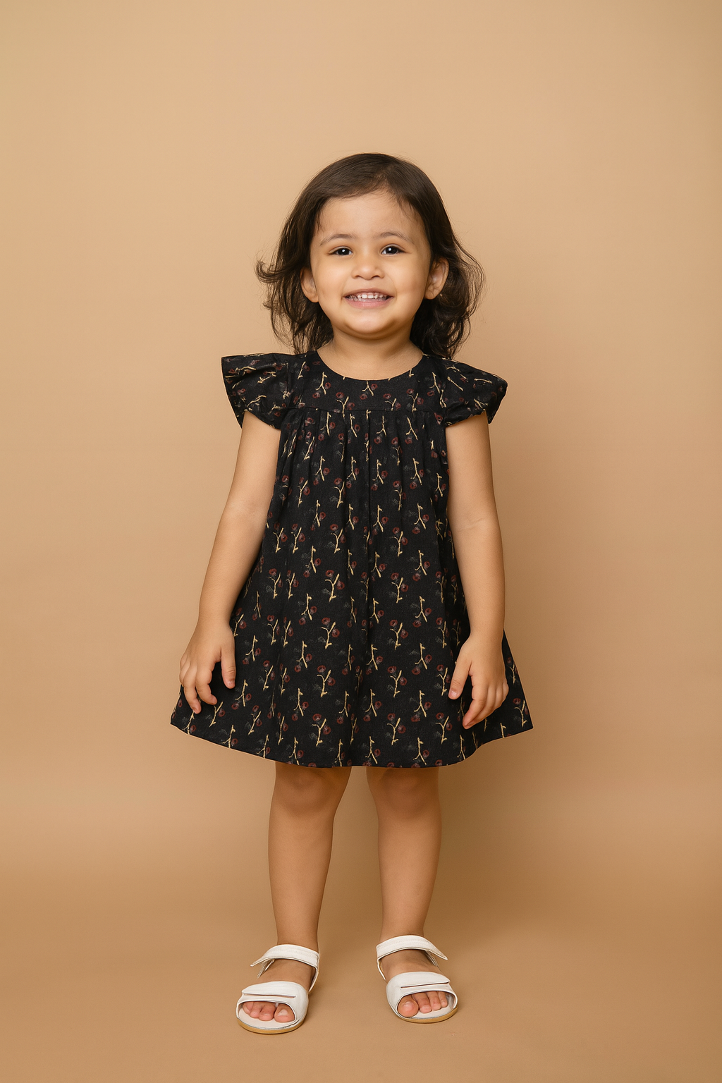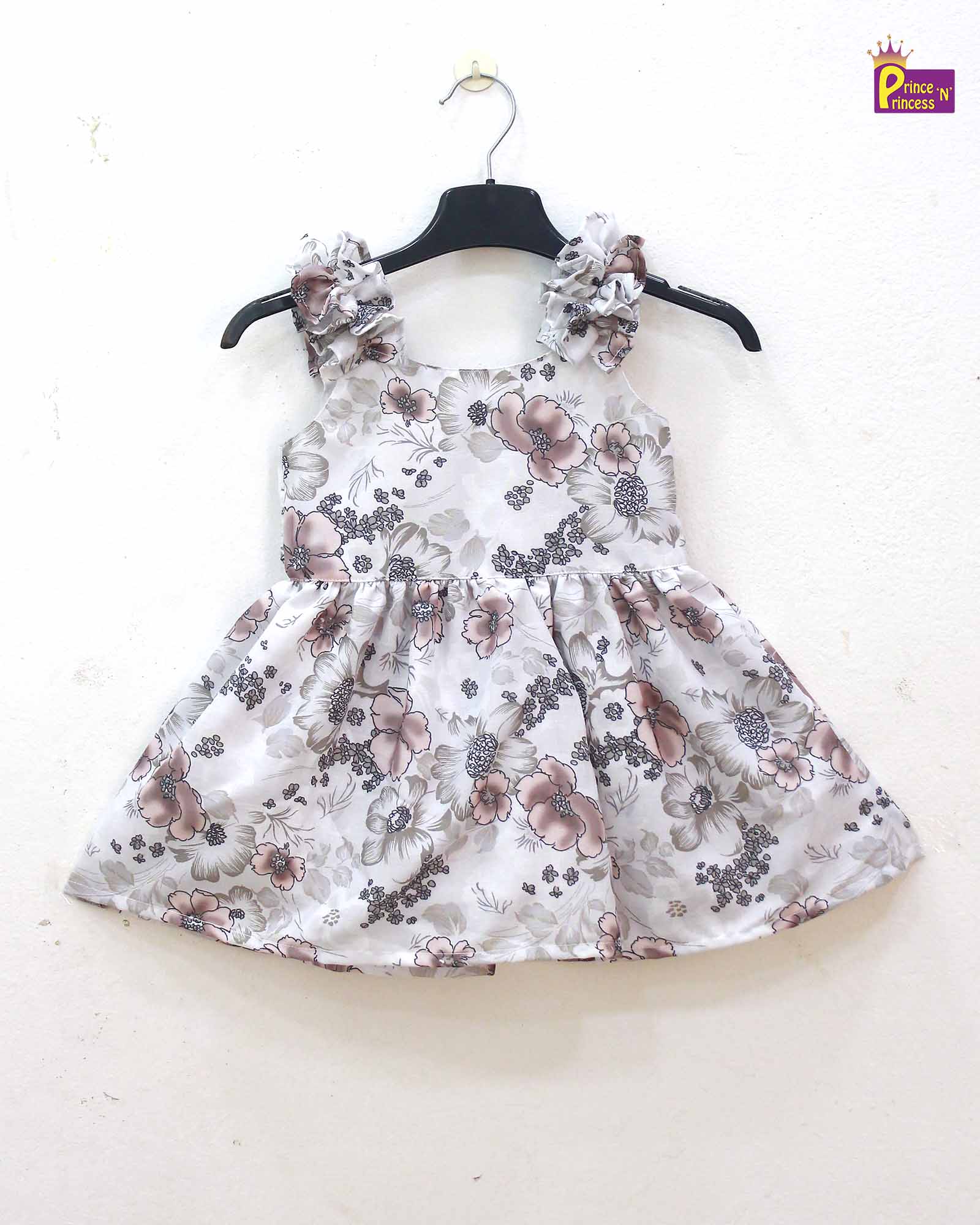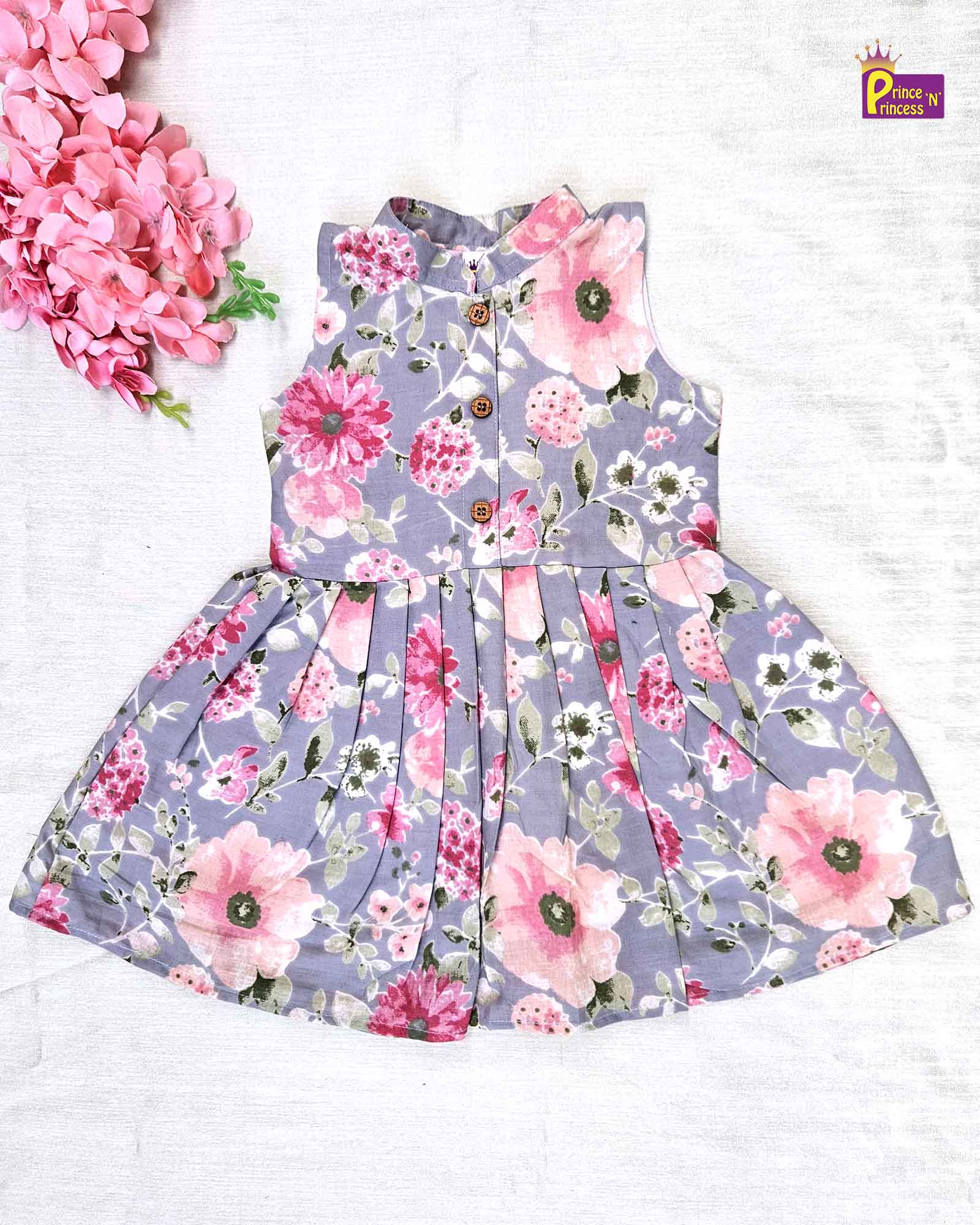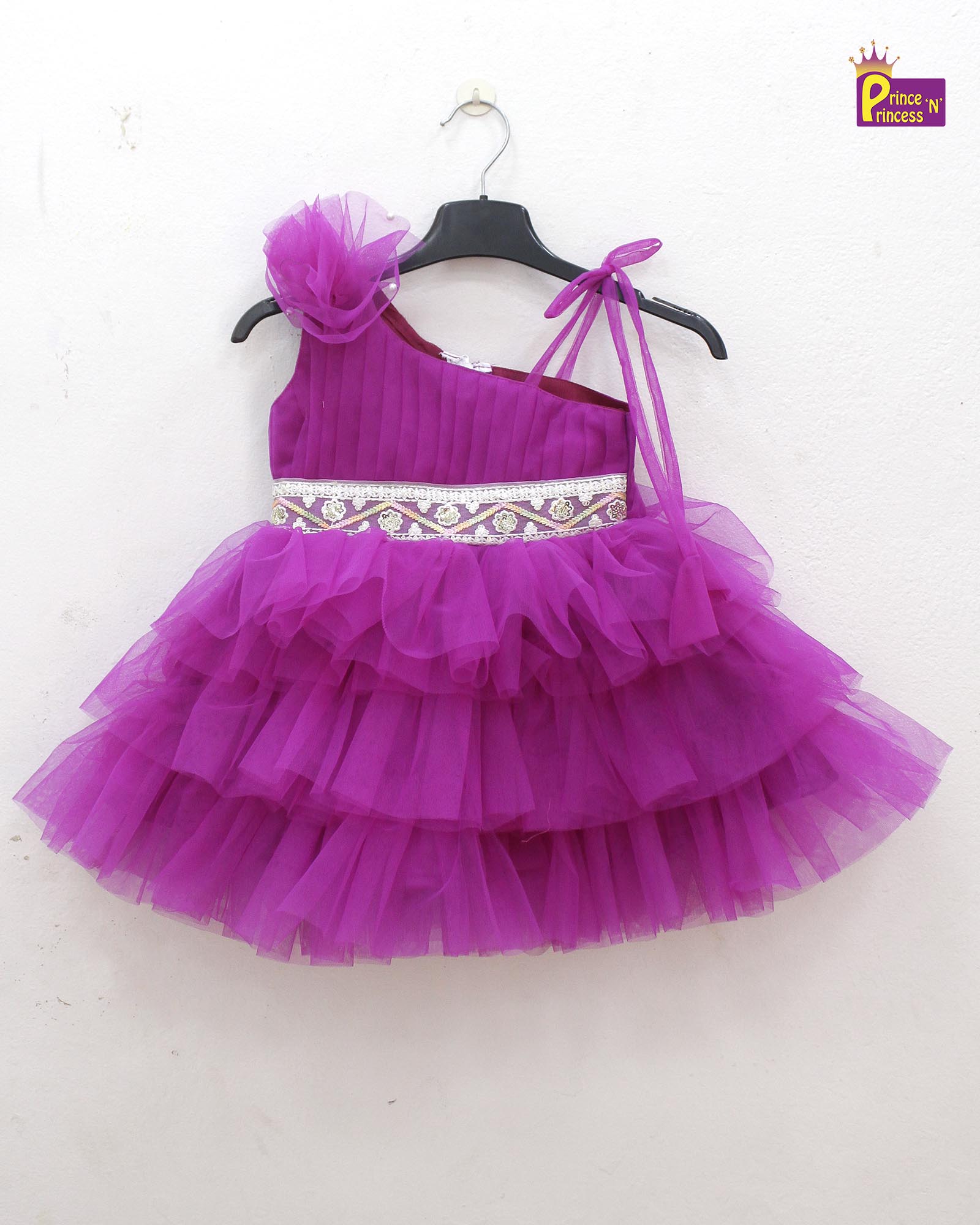 Kids Wine With Butterfly Printed Cotton Frock CF386