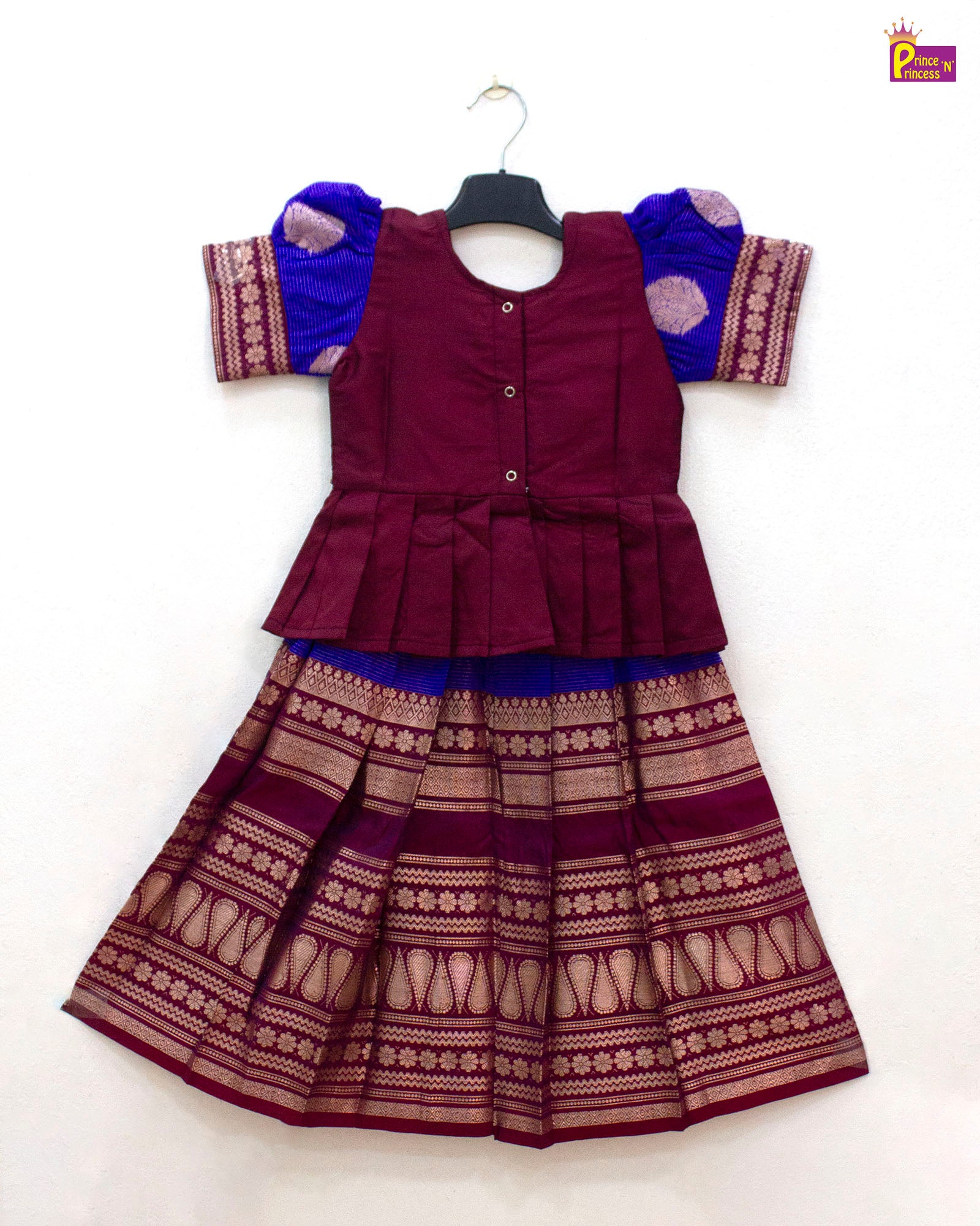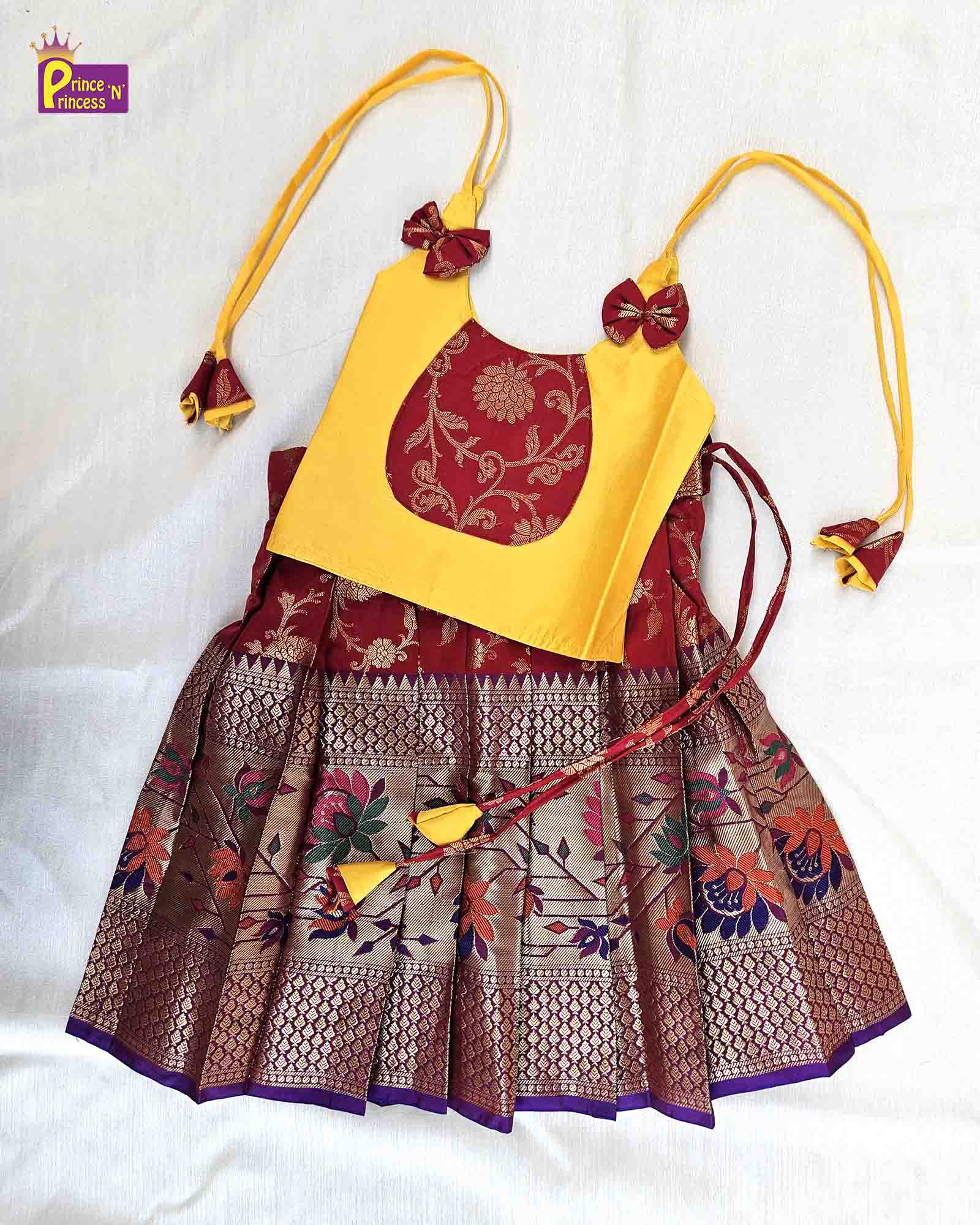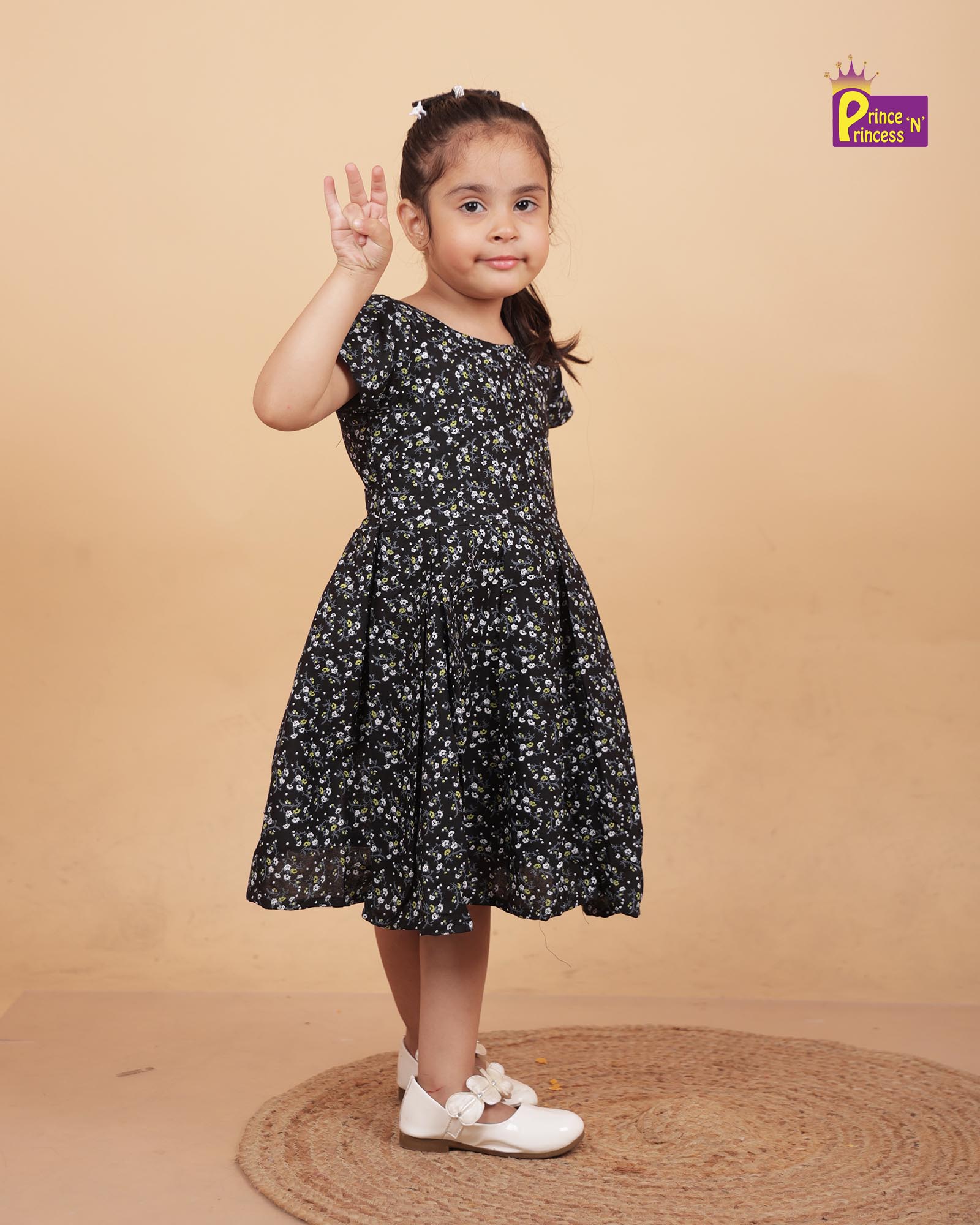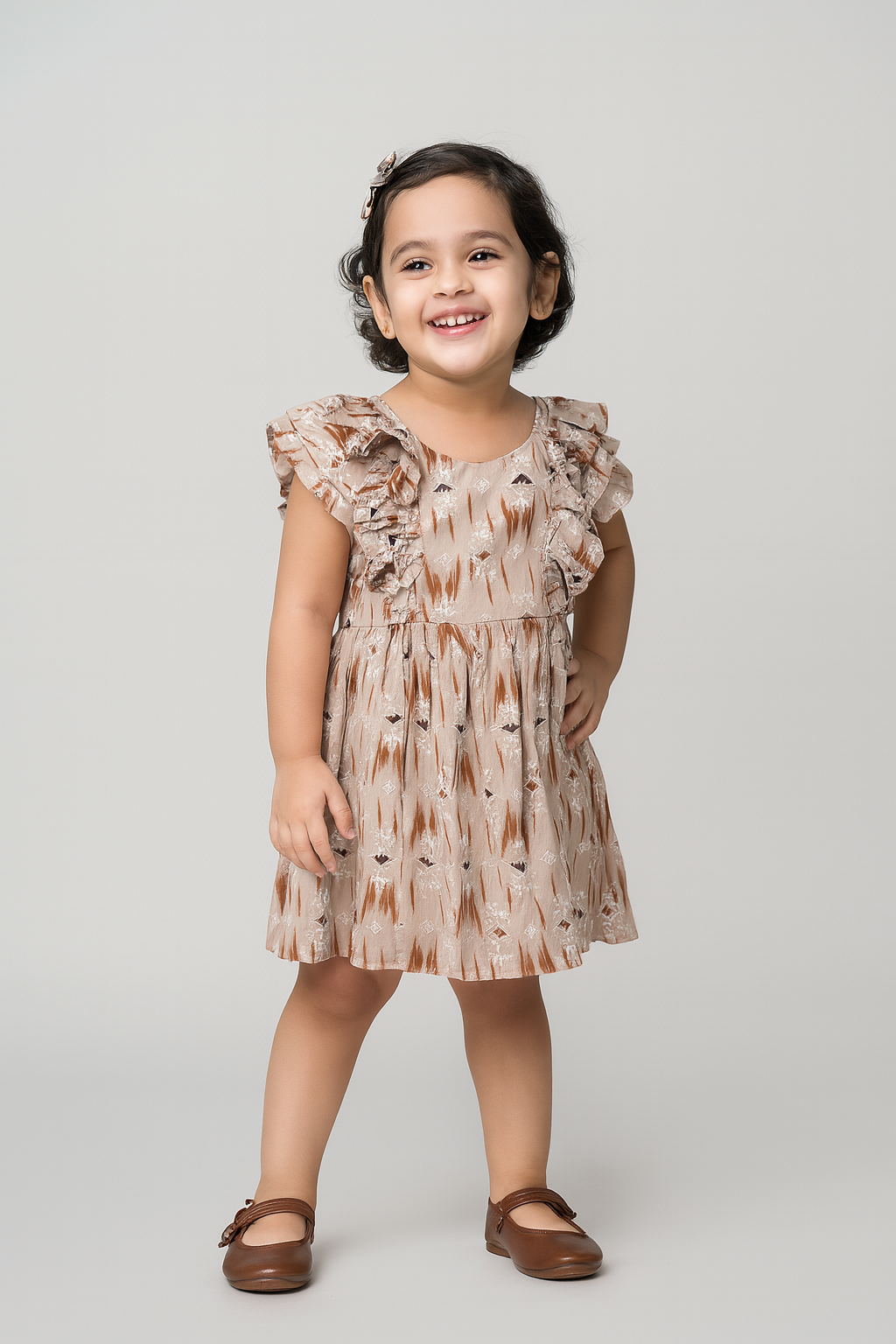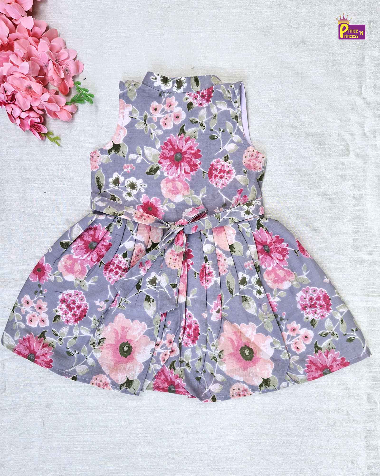Kids Wine With Butterfly Printed Cotton Frock CF386