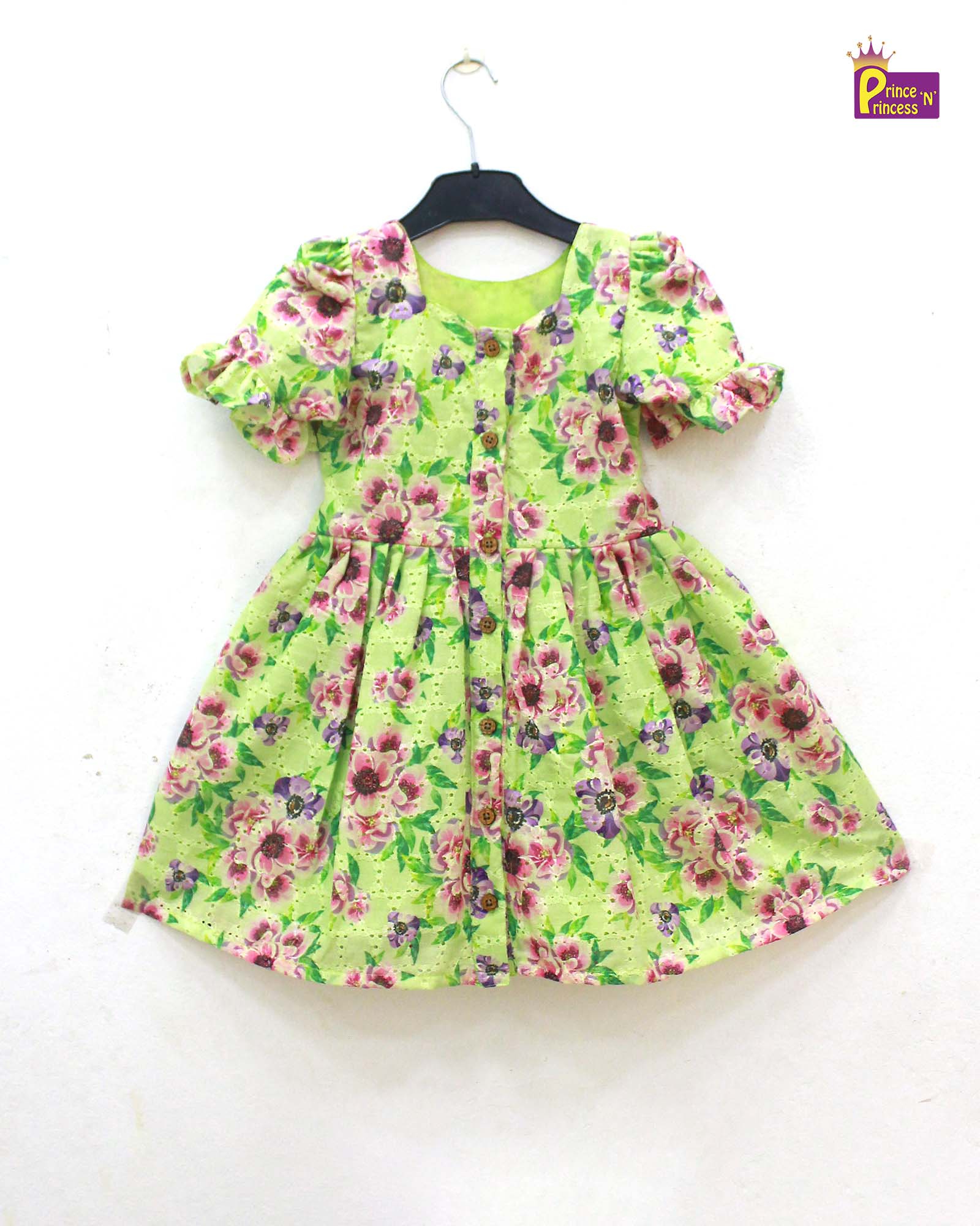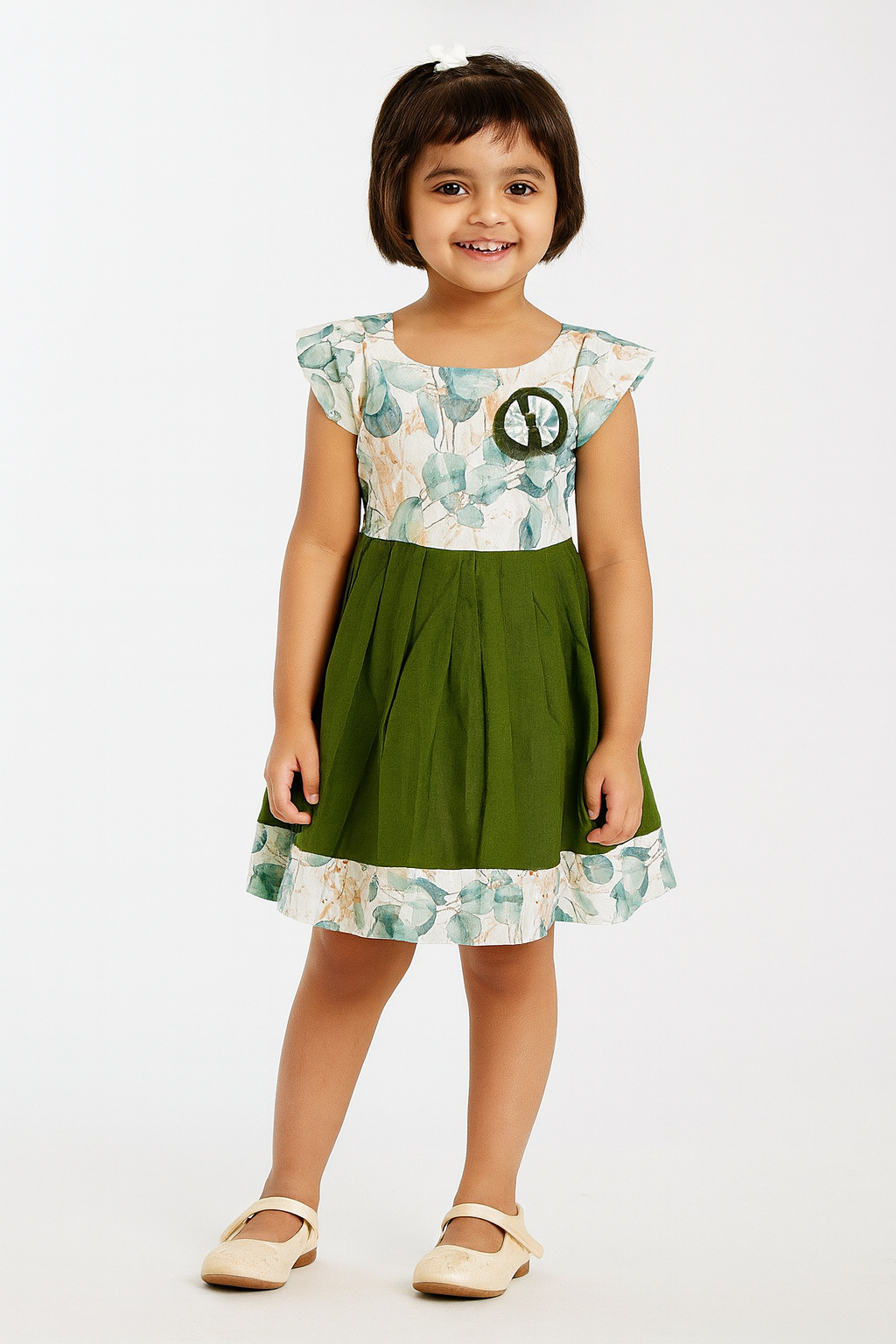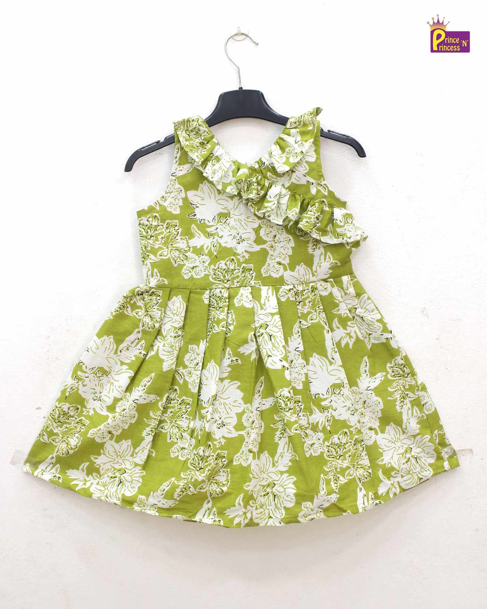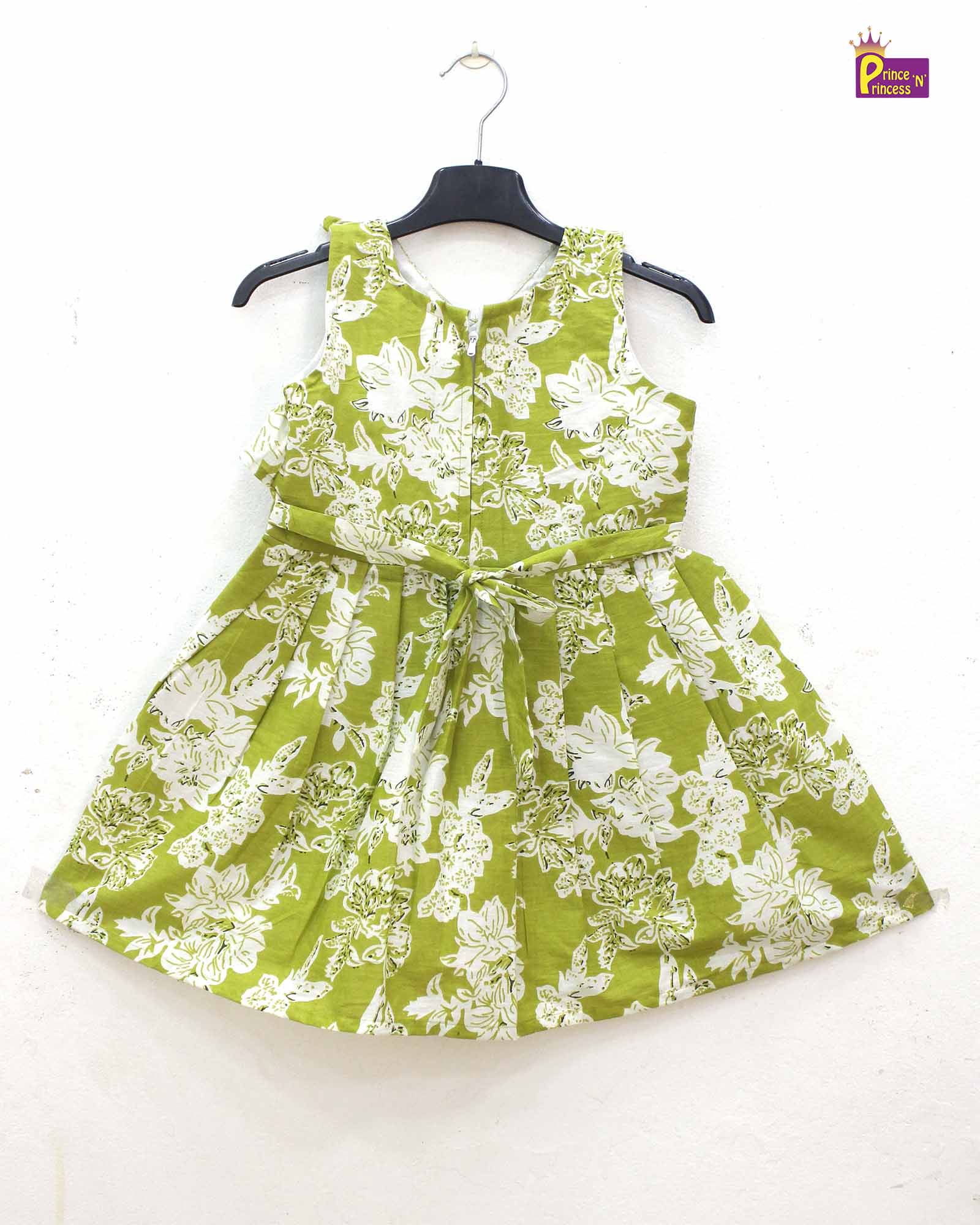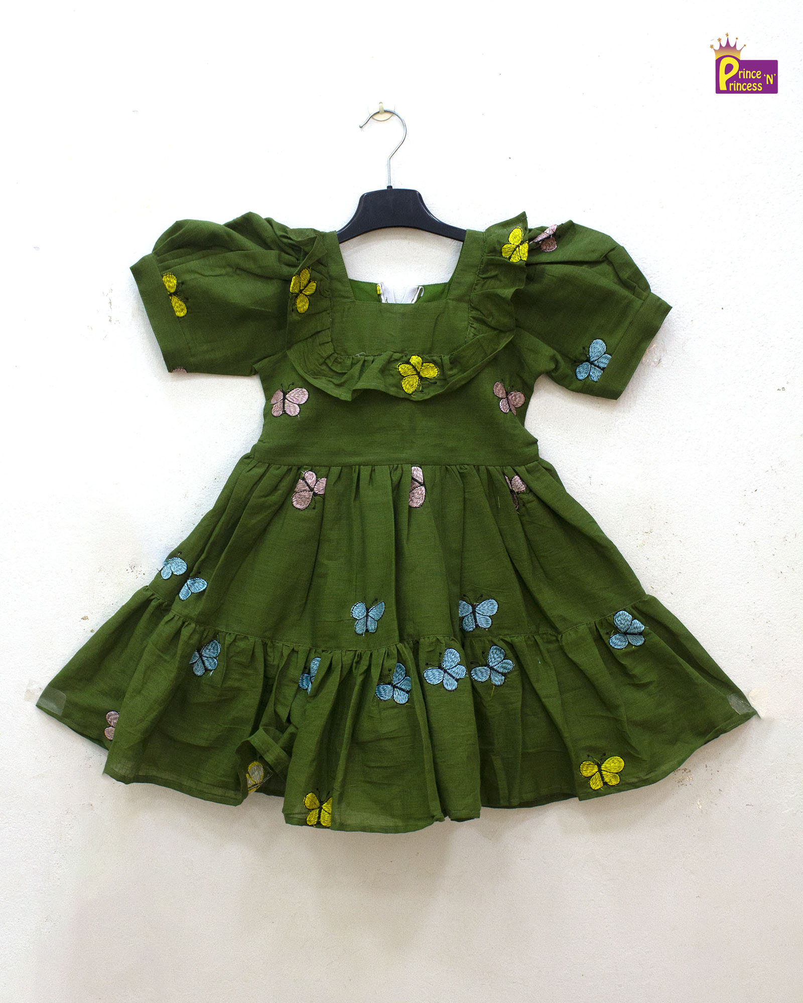 Kids Green With Printed Butterfly Cotton Frock CF387