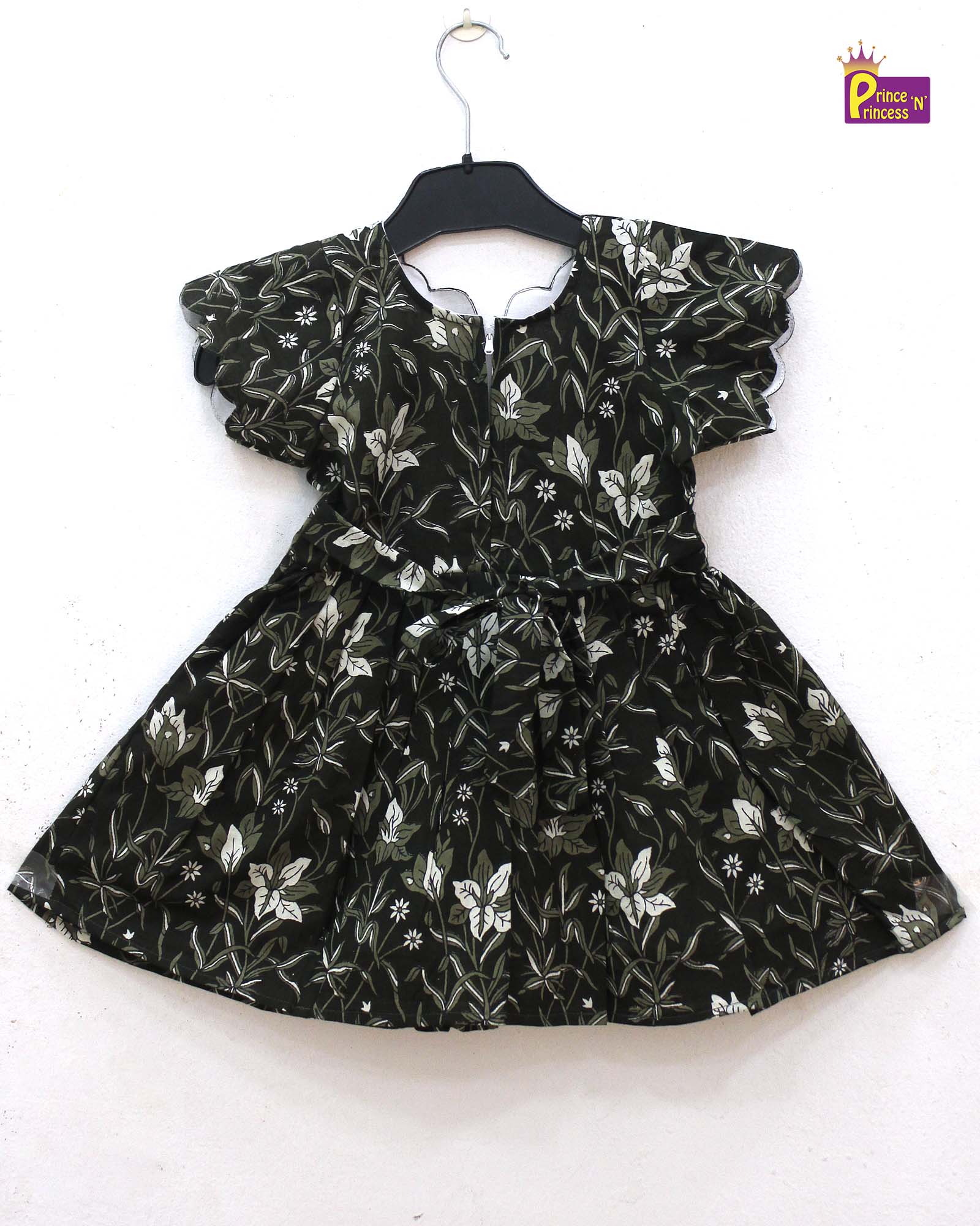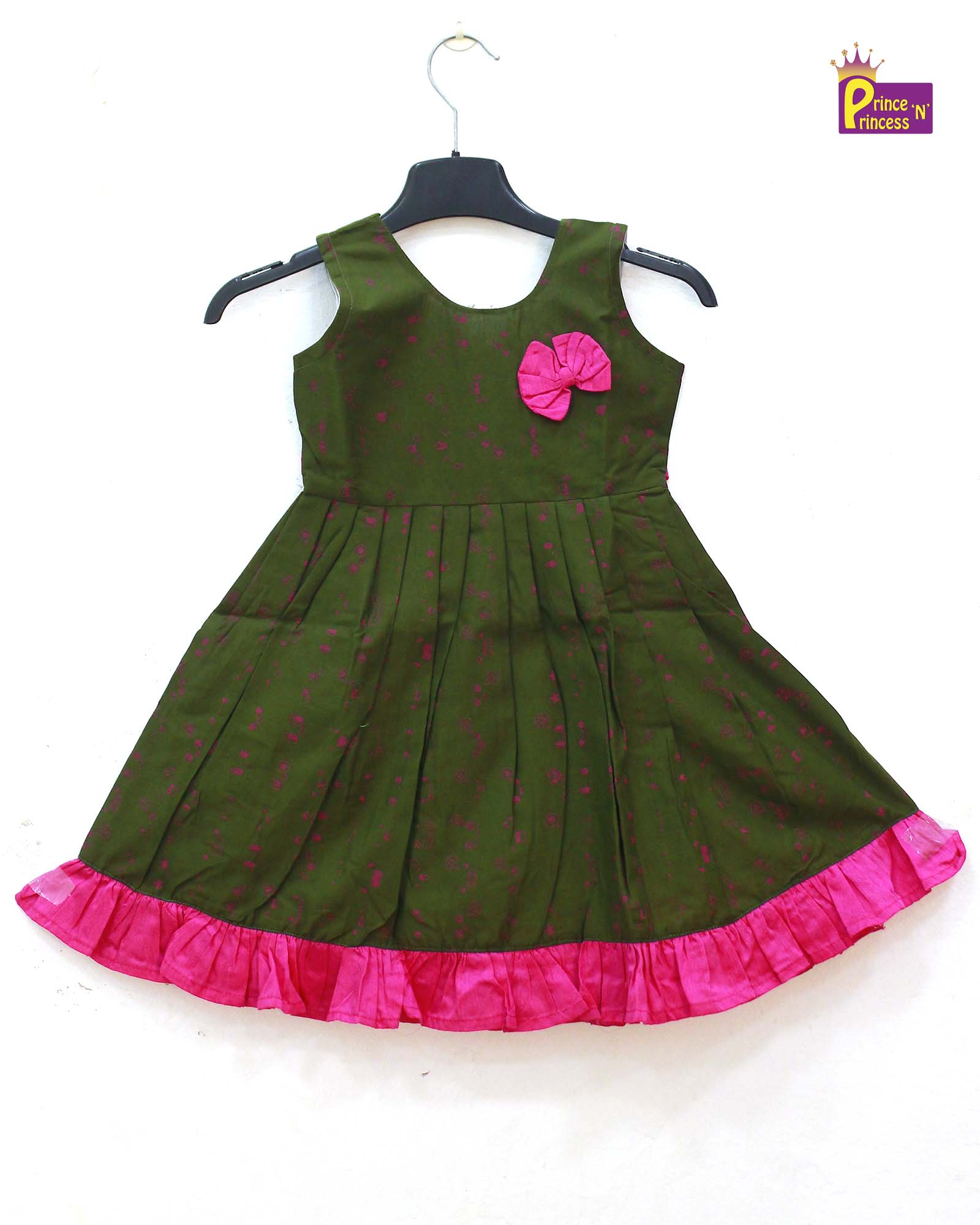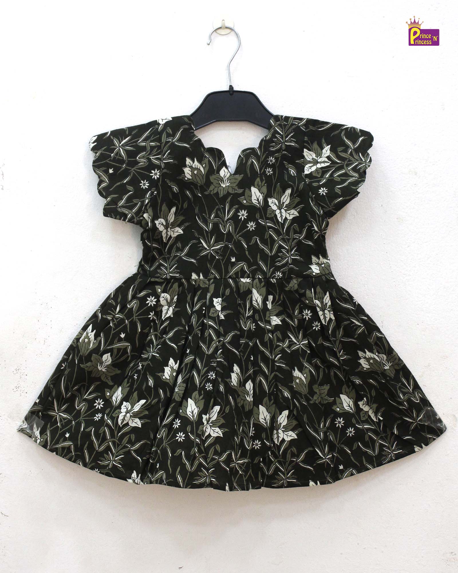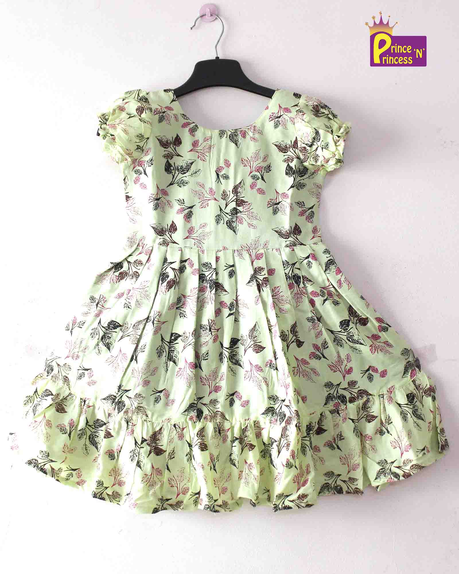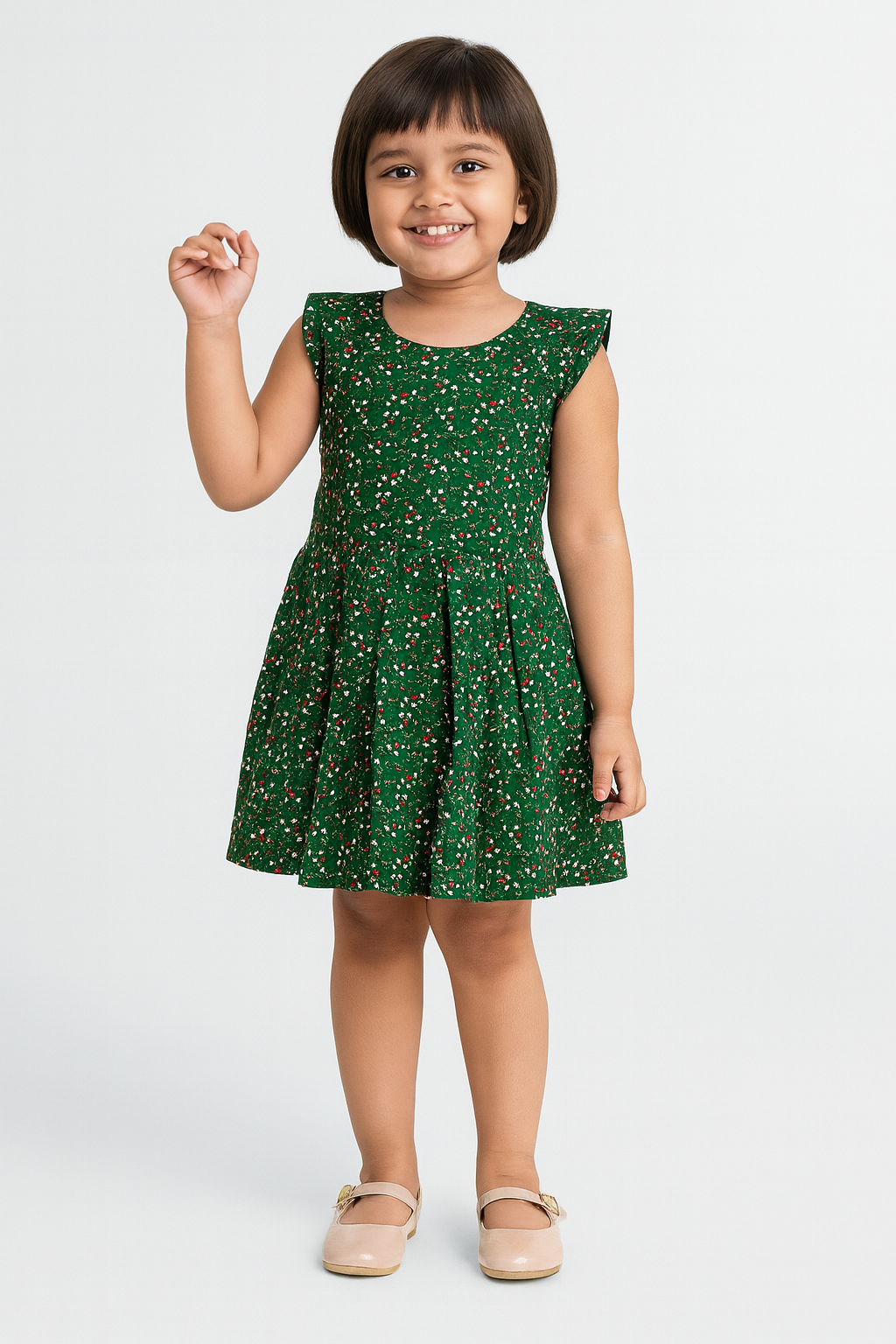 Kids Green With Printed Butterfly Cotton Frock CF387