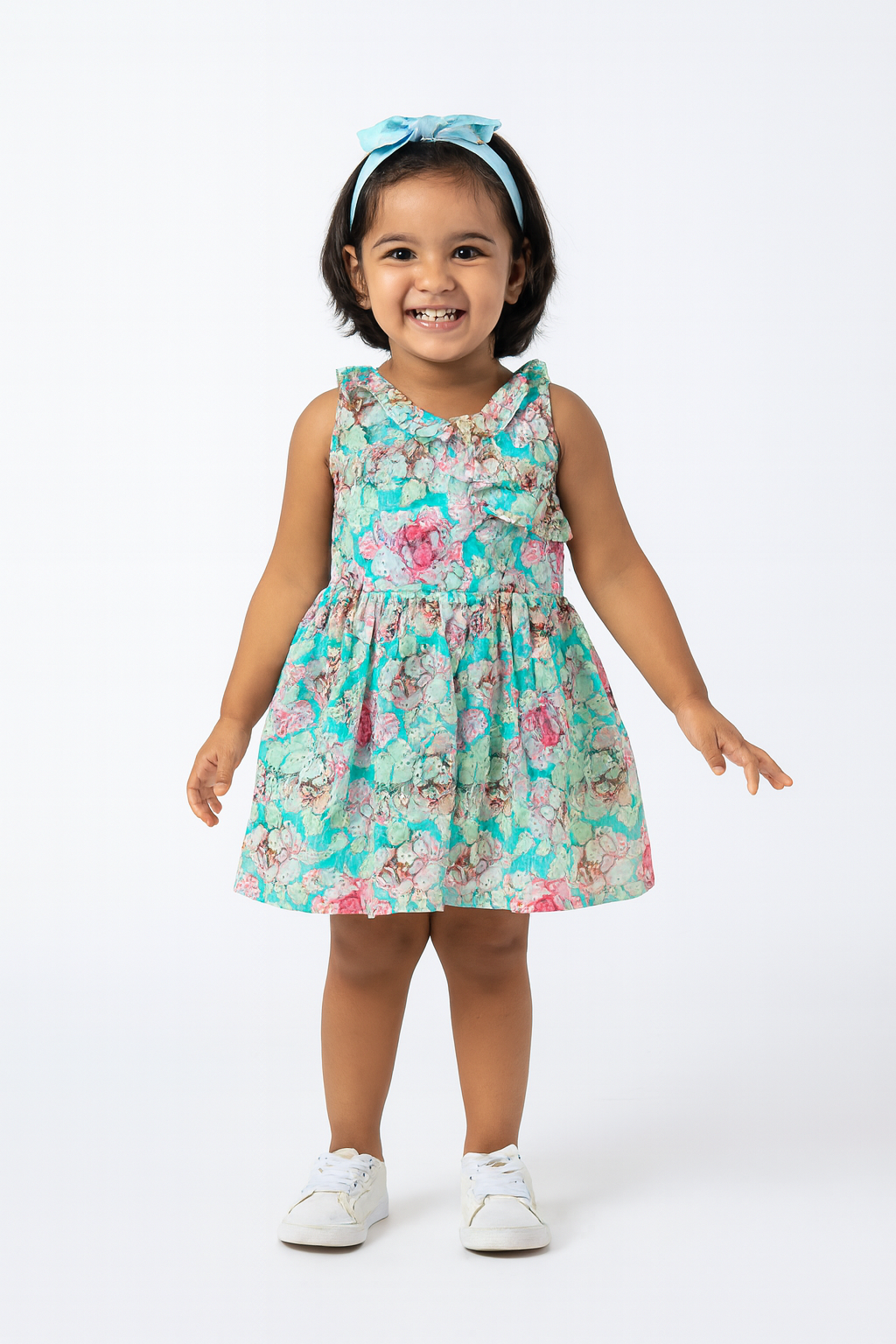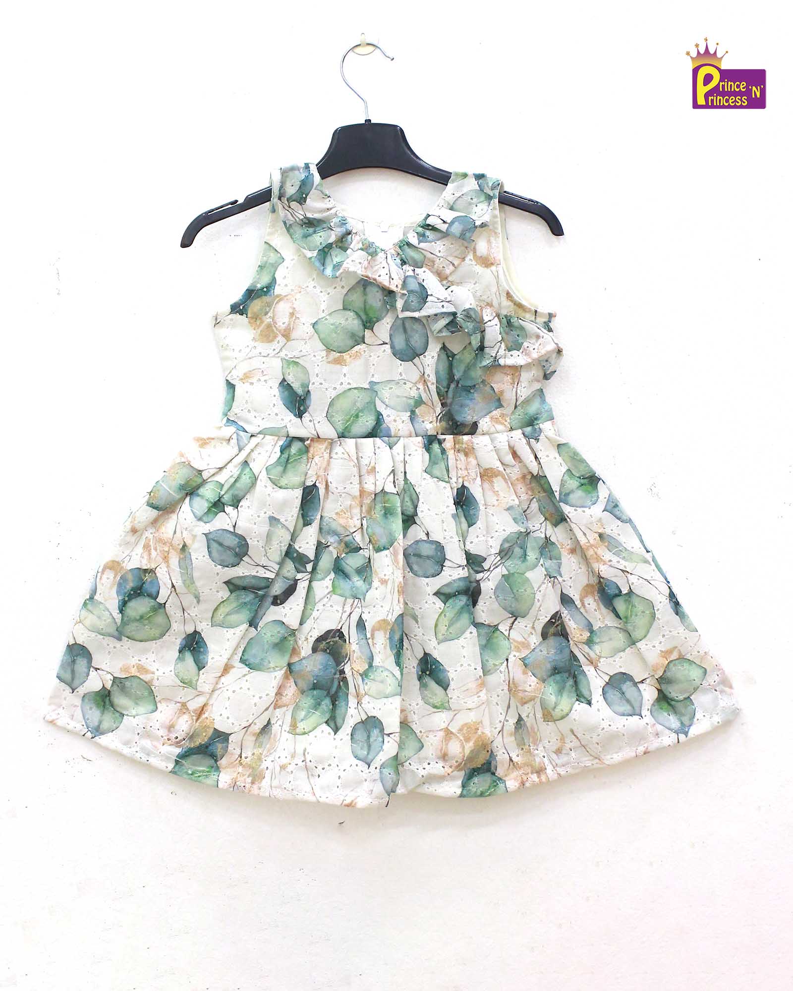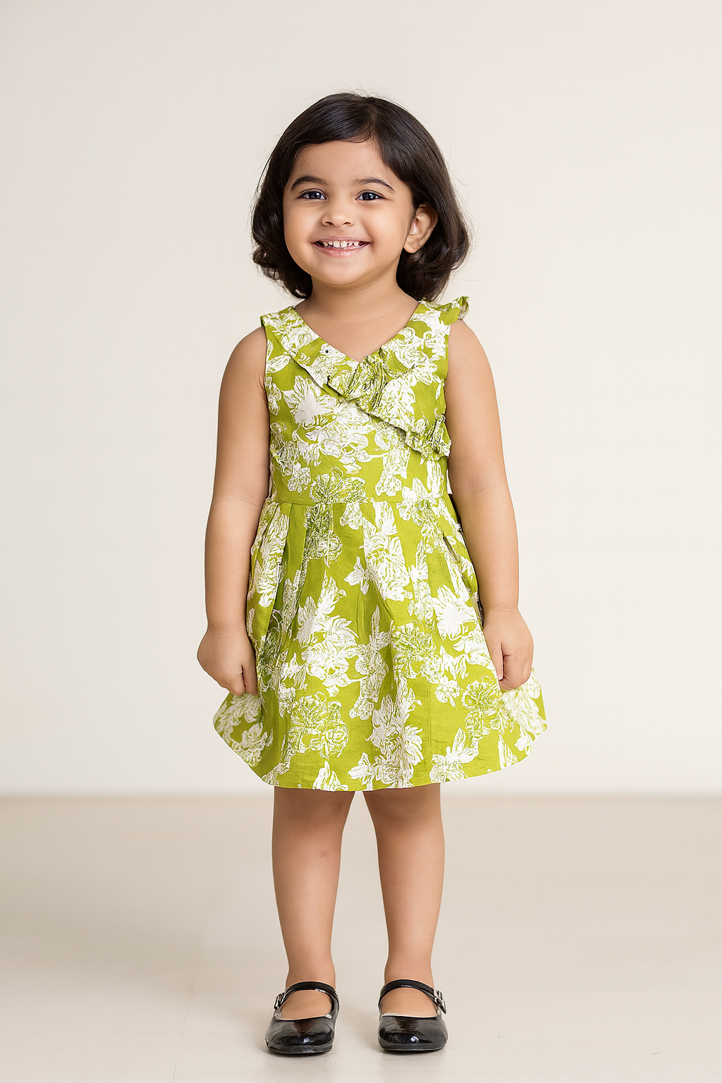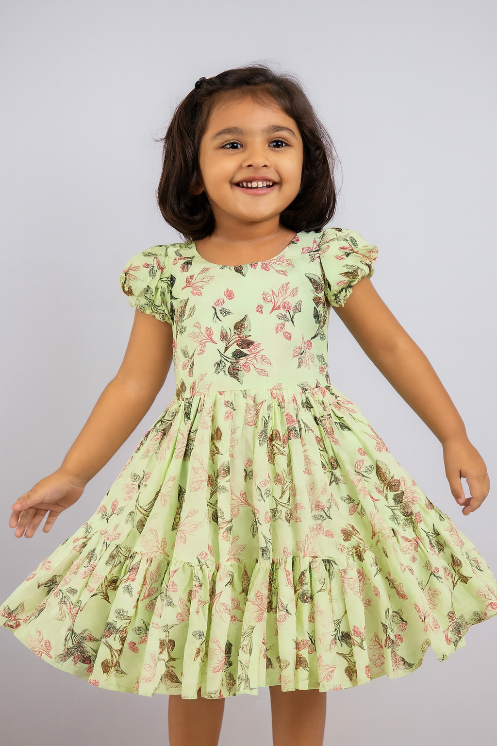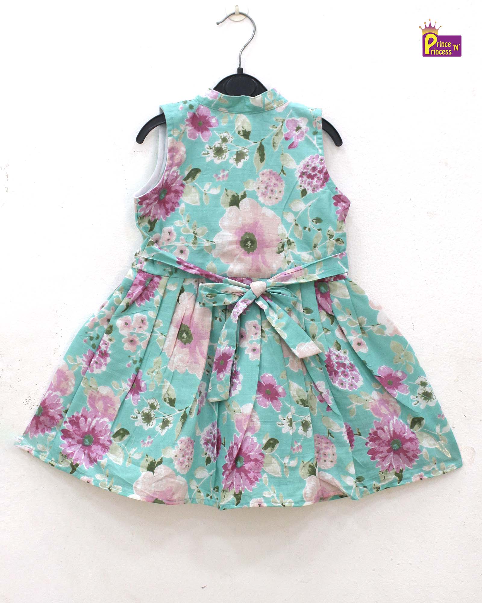 Kids Green With Printed Butterfly Cotton Frock CF387