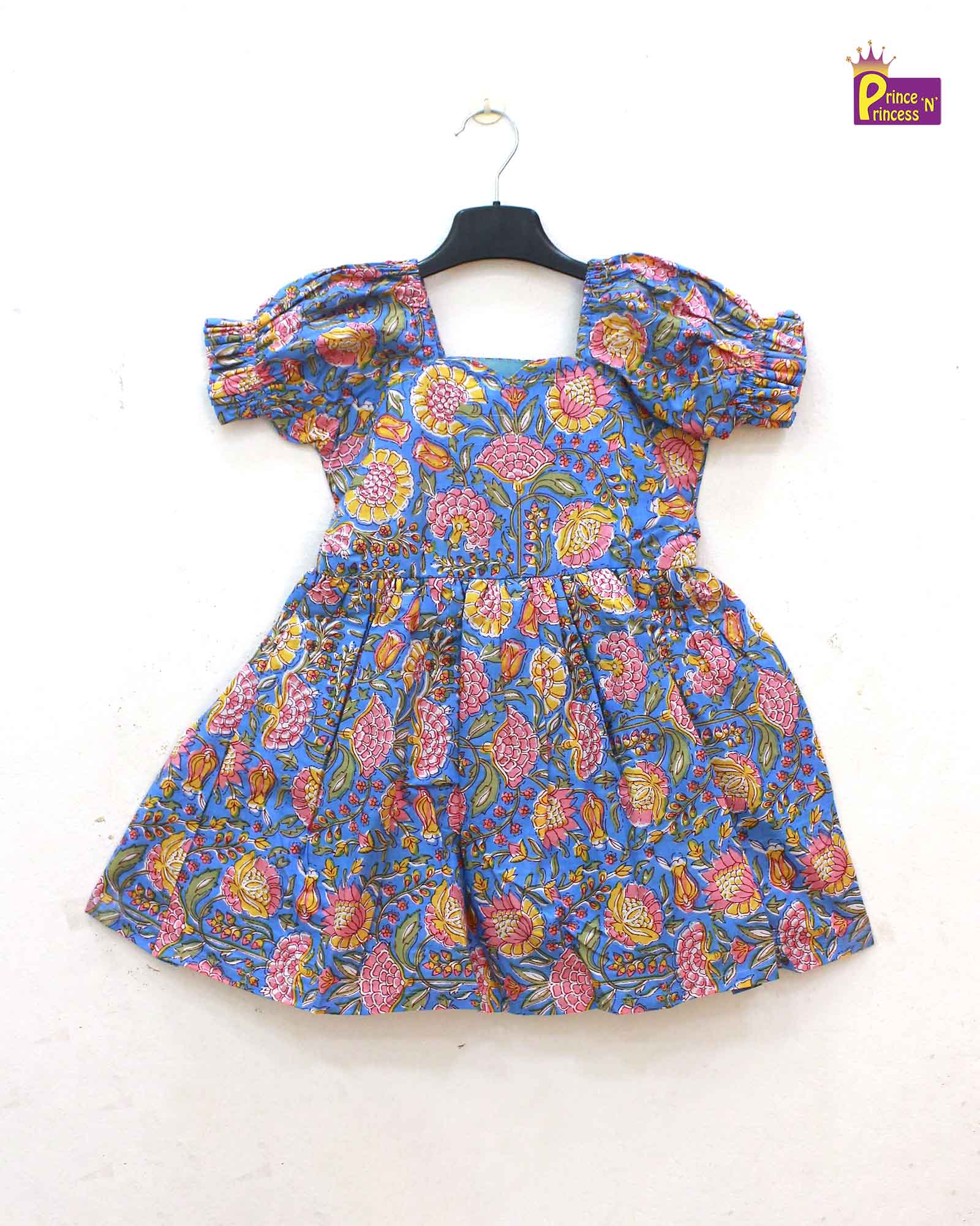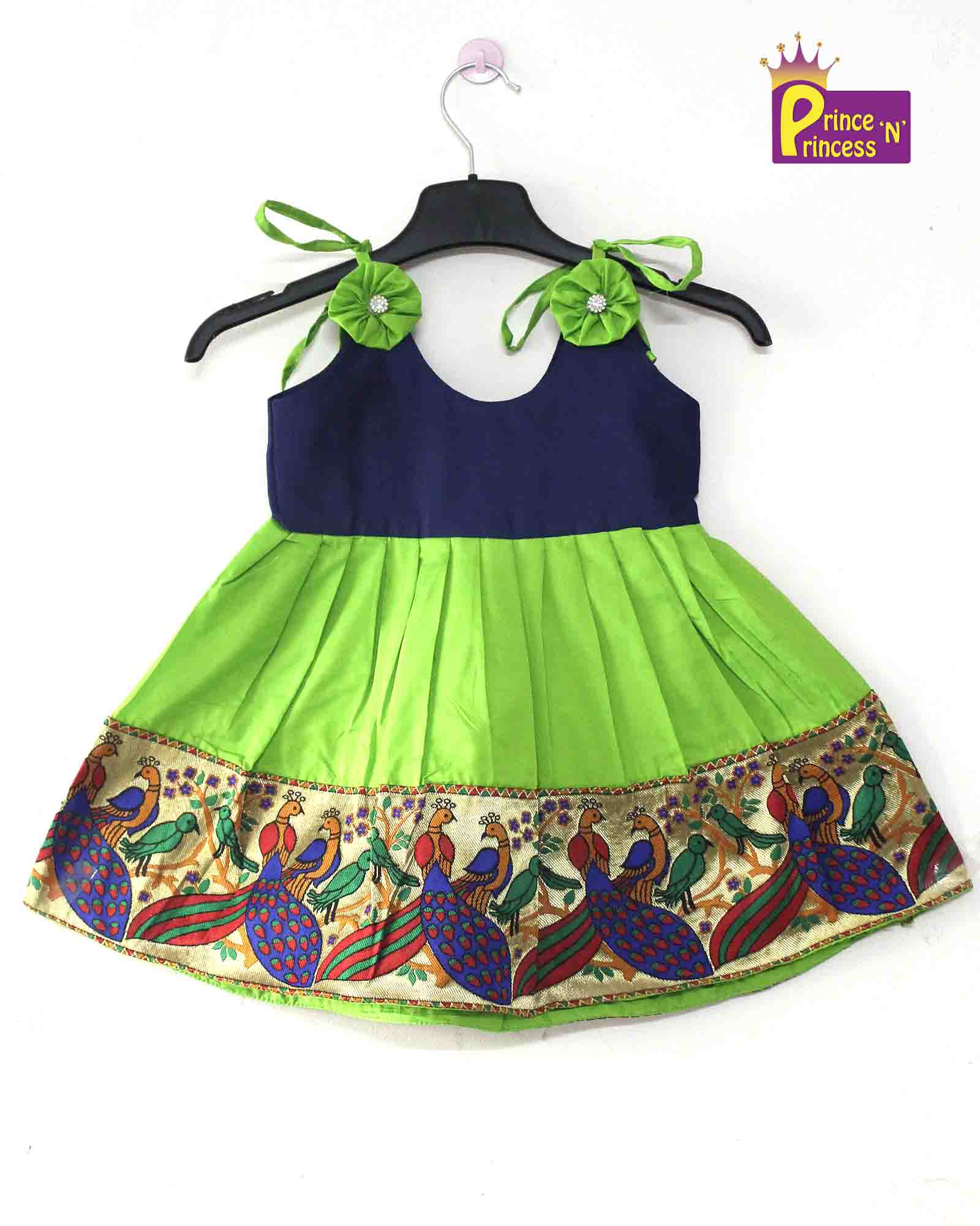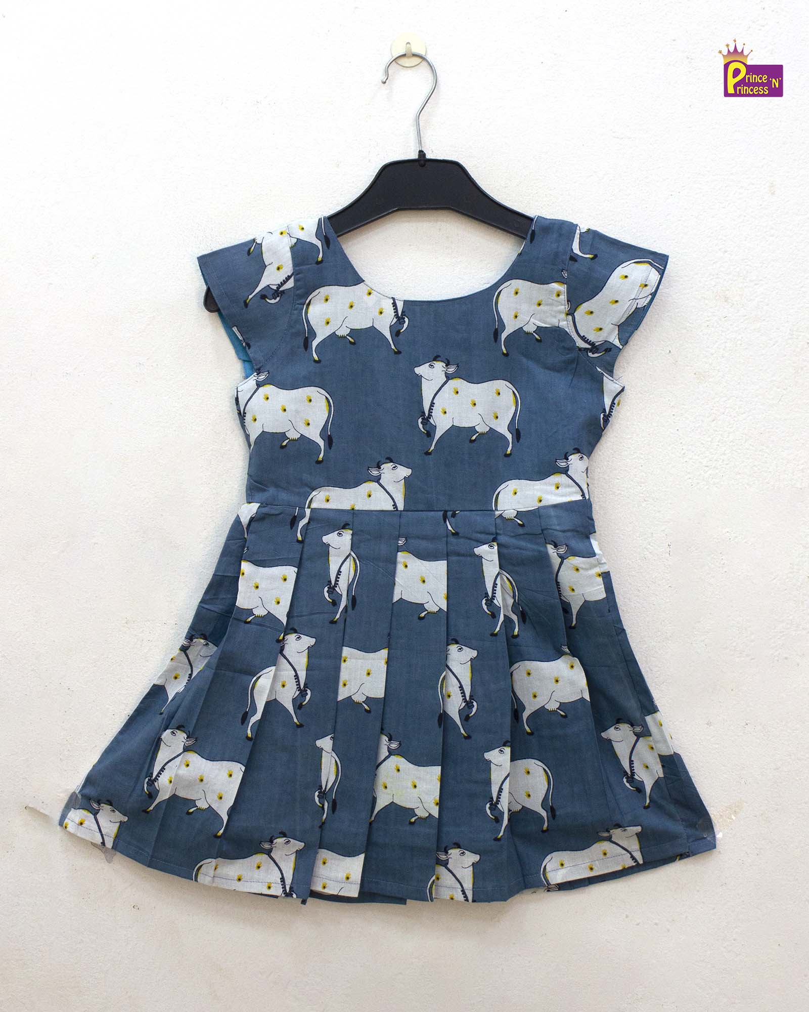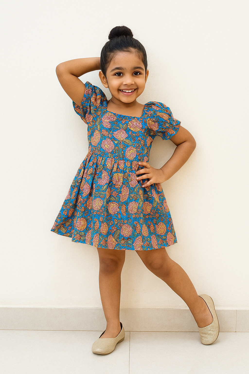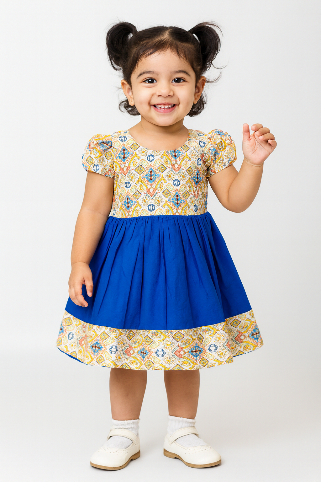 Kids Rama Blue Pichwai Cotton Frock CF383