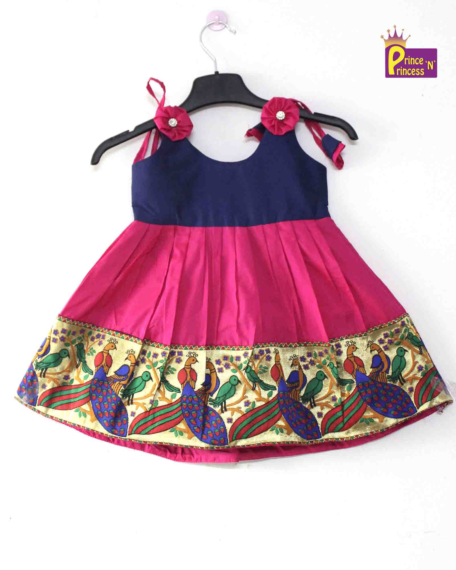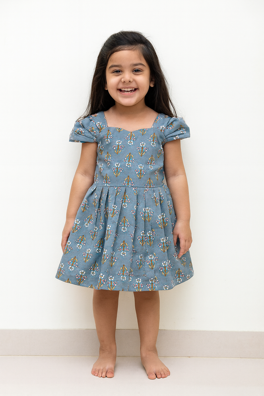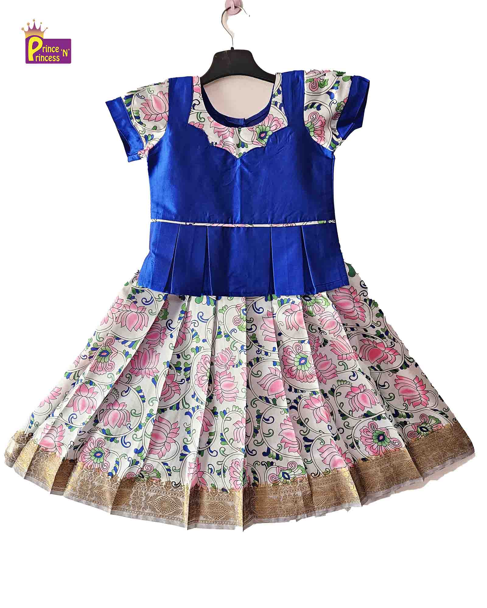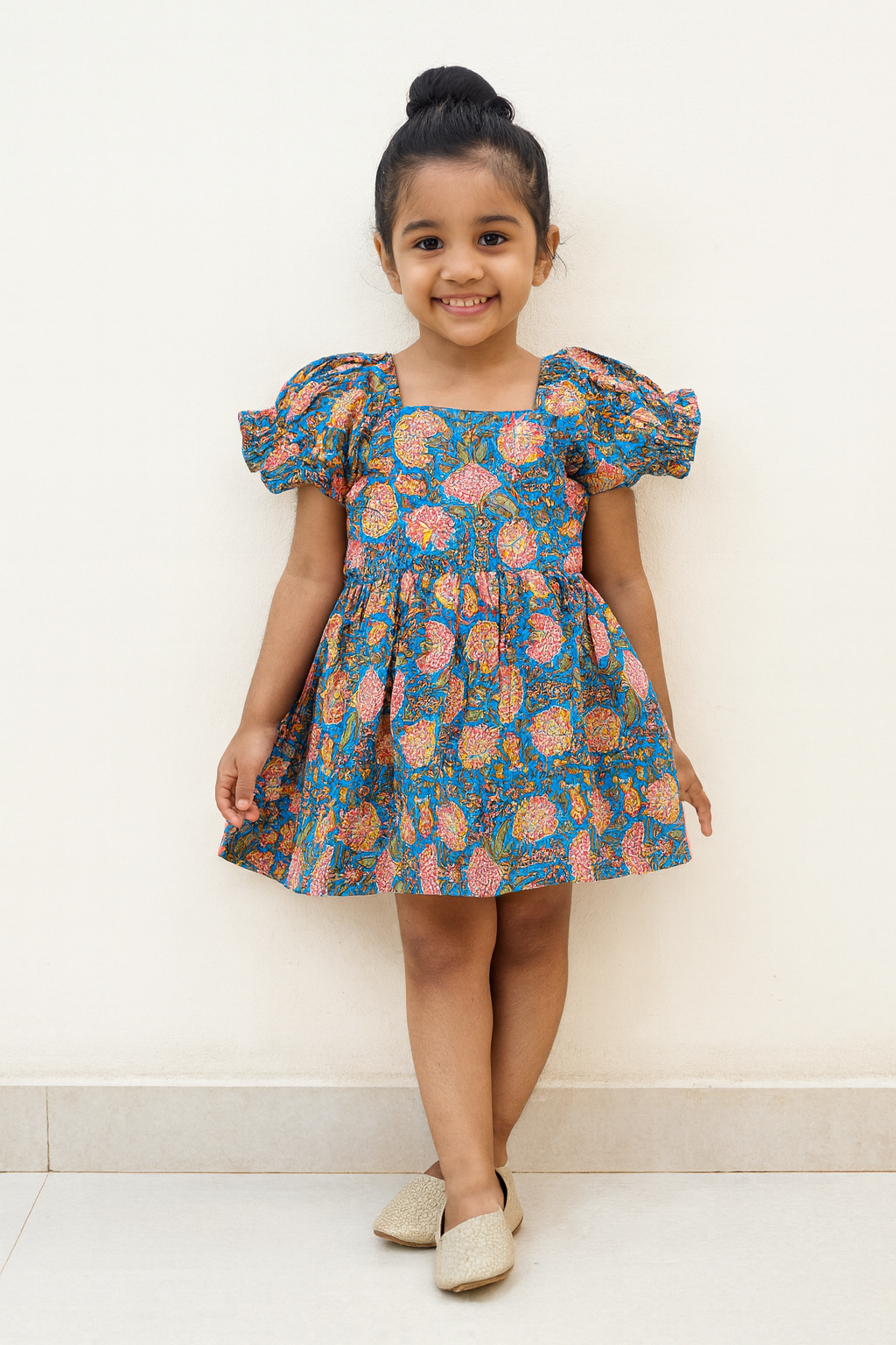 Kids Rama Blue Pichwai Cotton Frock CF383