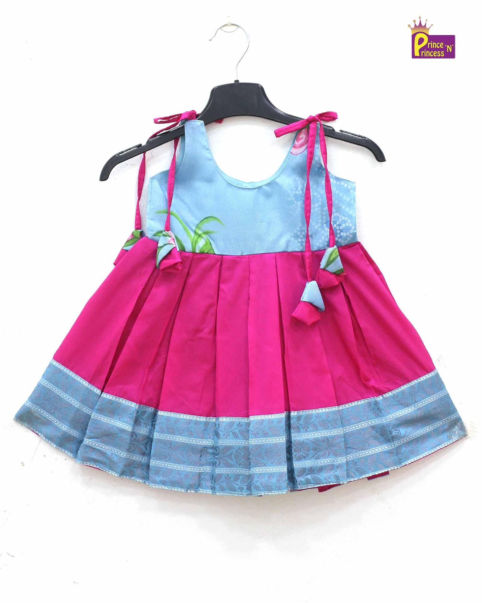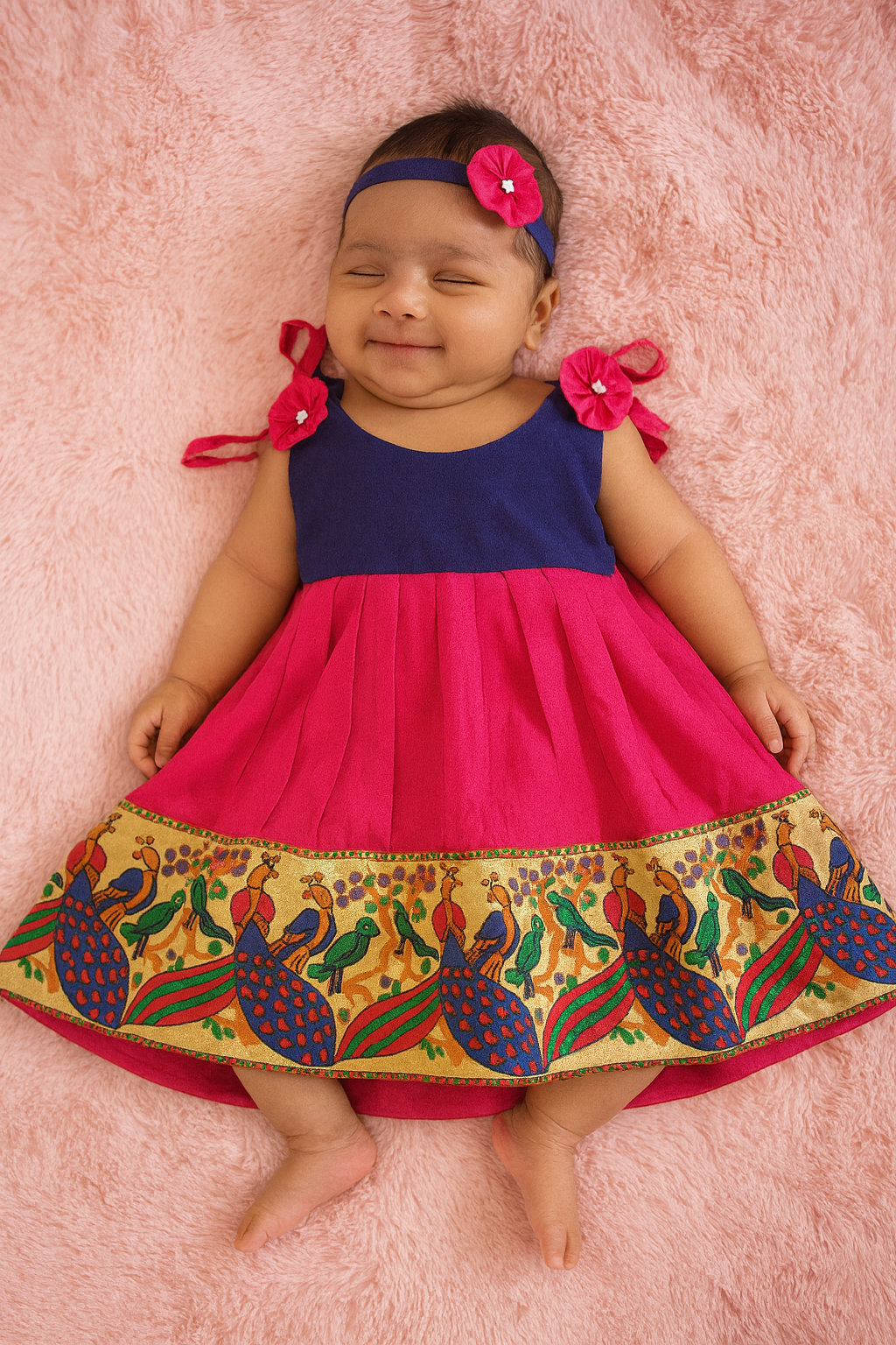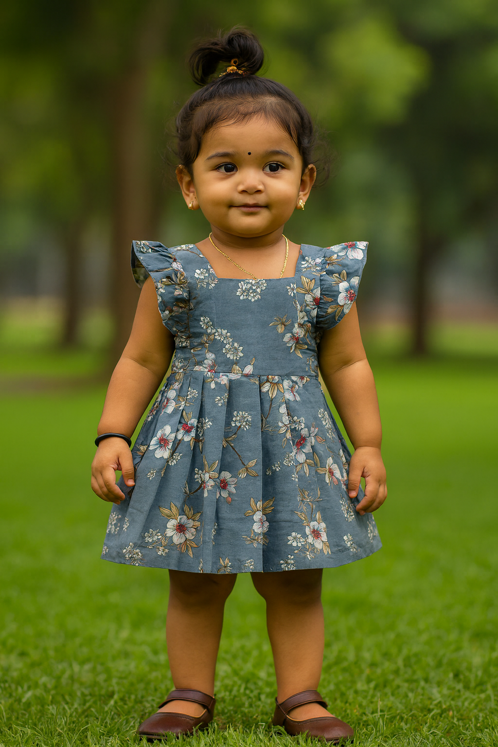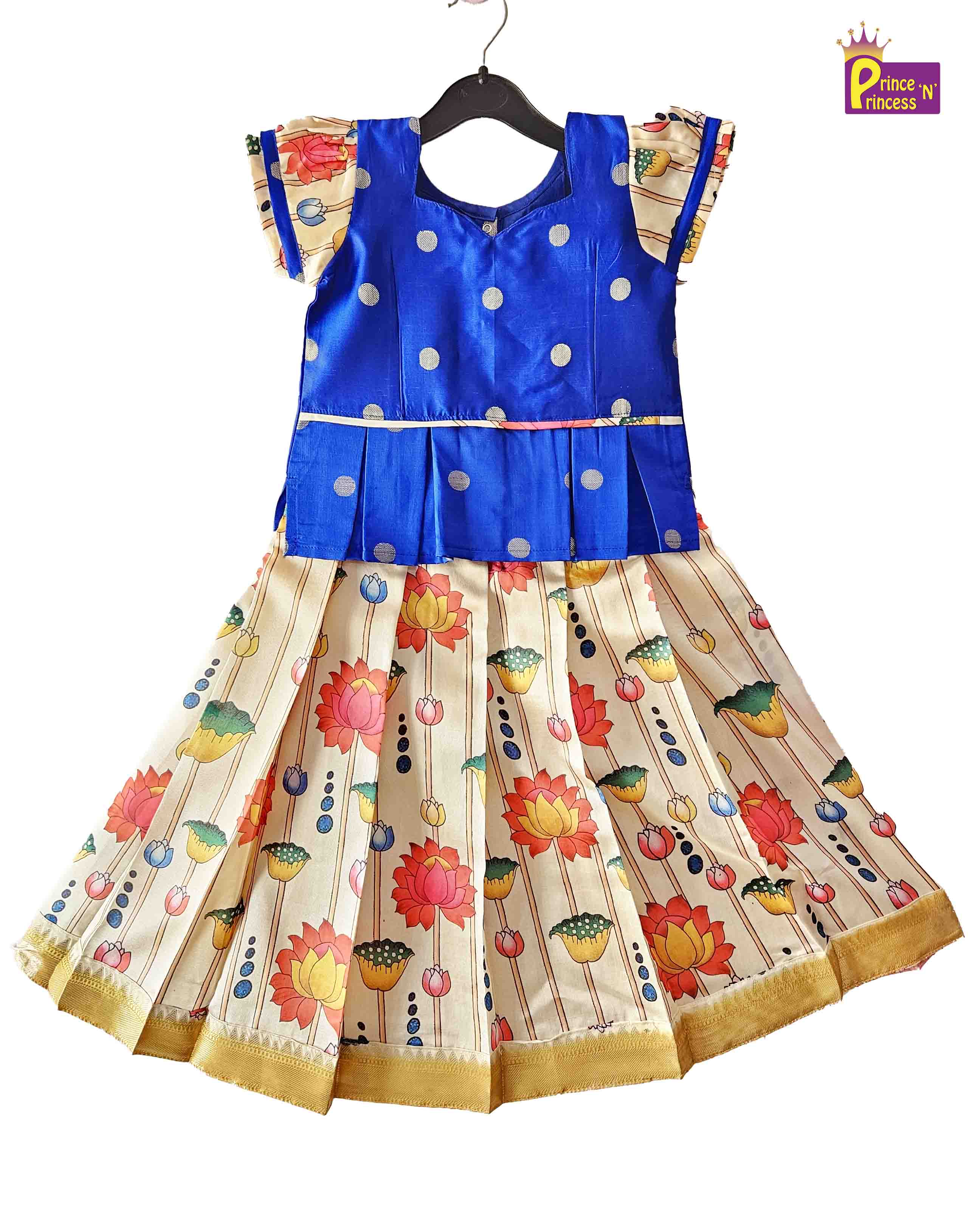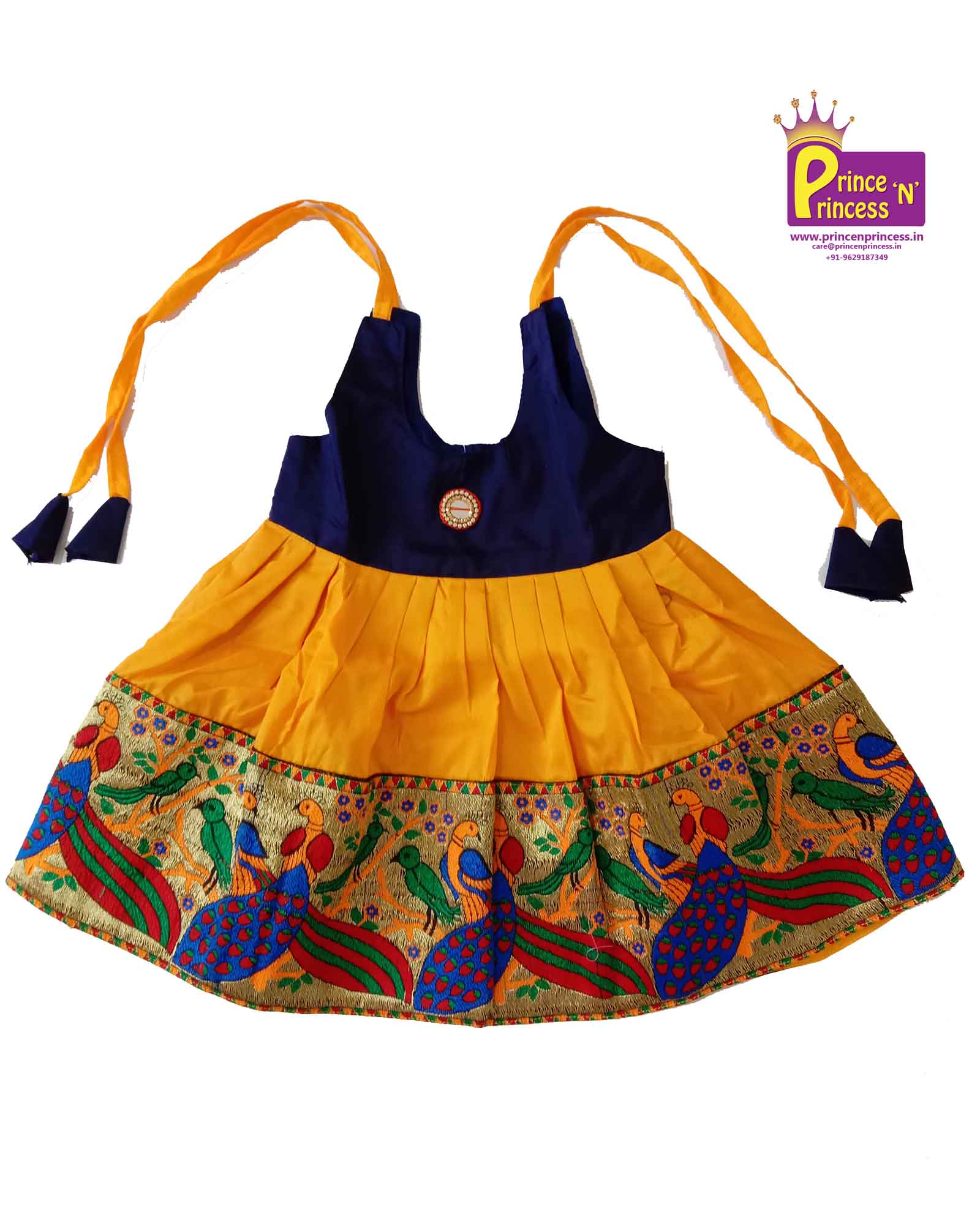 Kids Rama Blue Pichwai Cotton Frock CF383