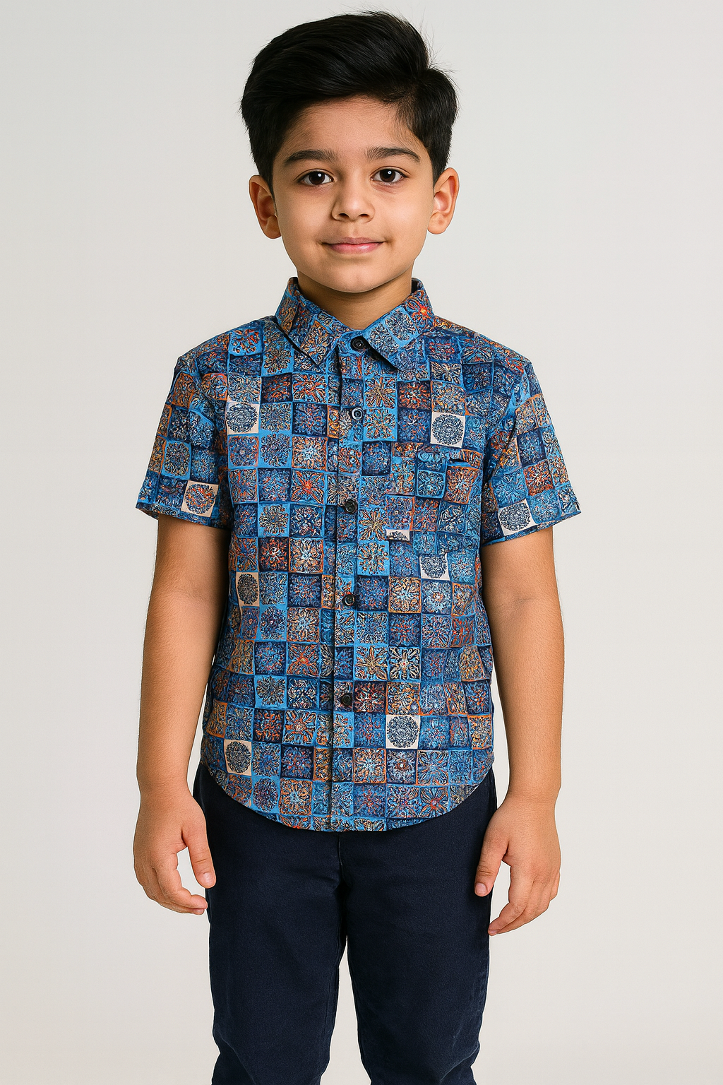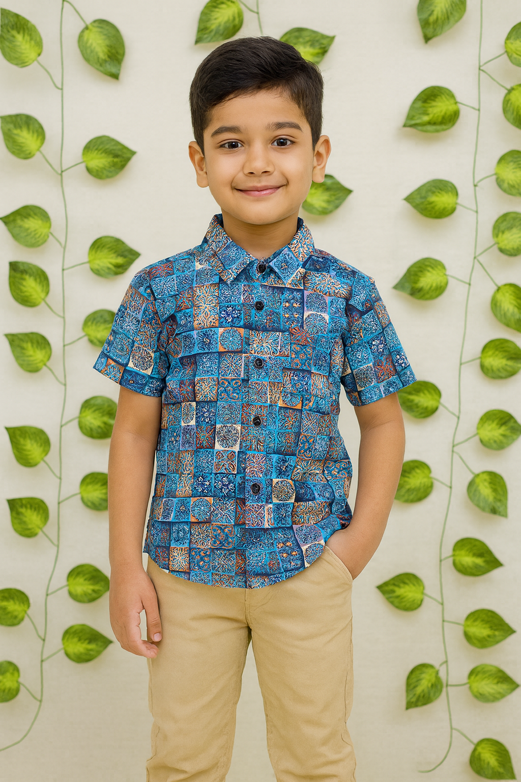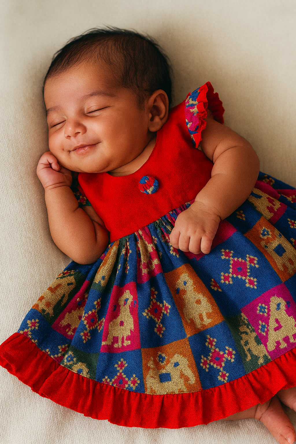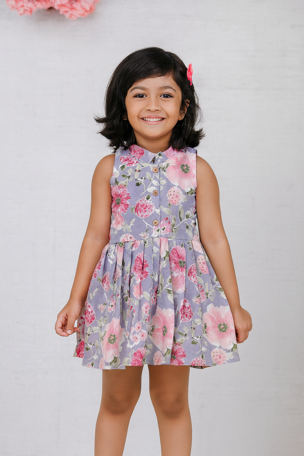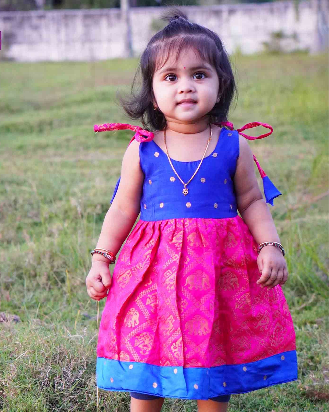 Kids Rama Blue Pichwai Cotton Frock CF383