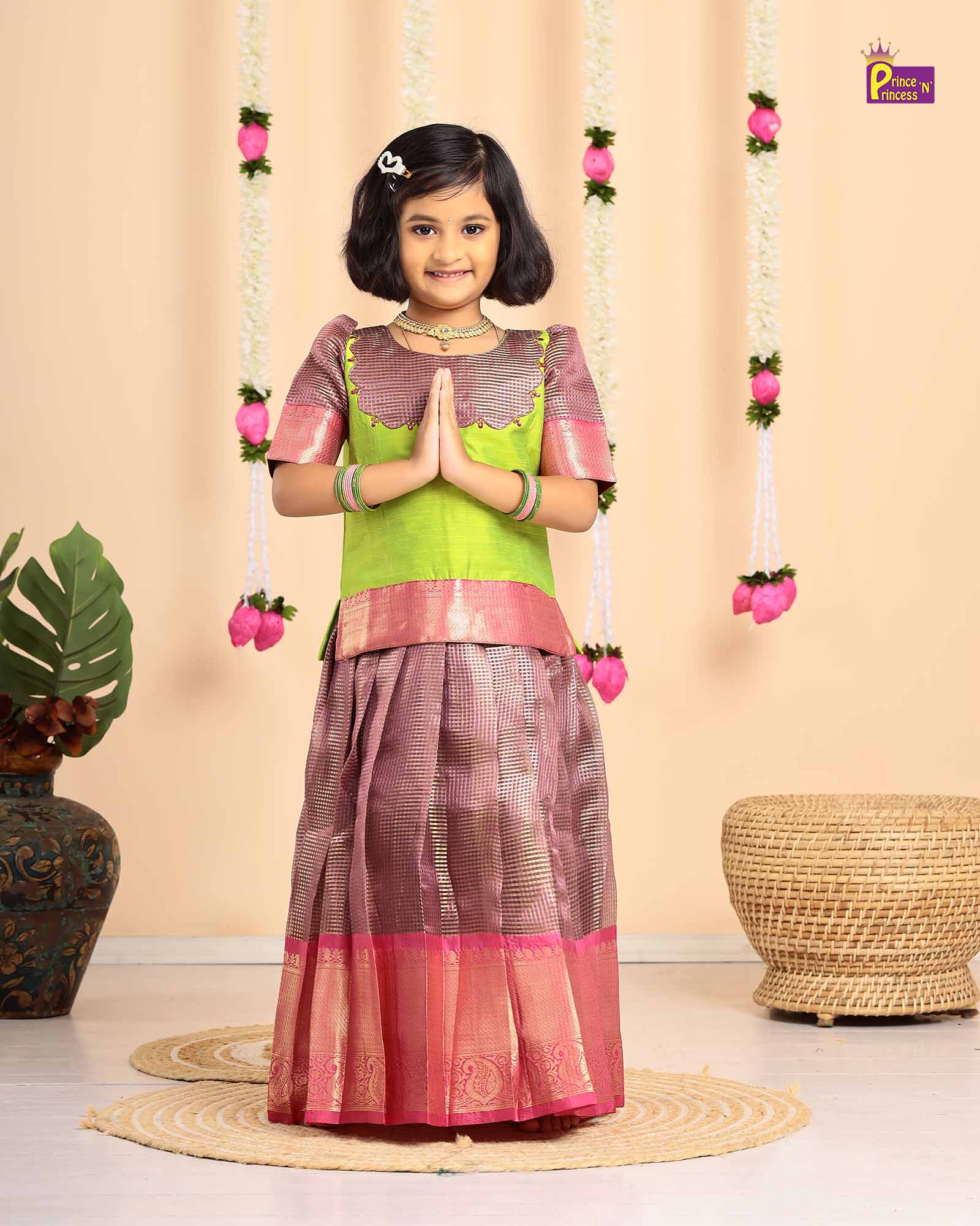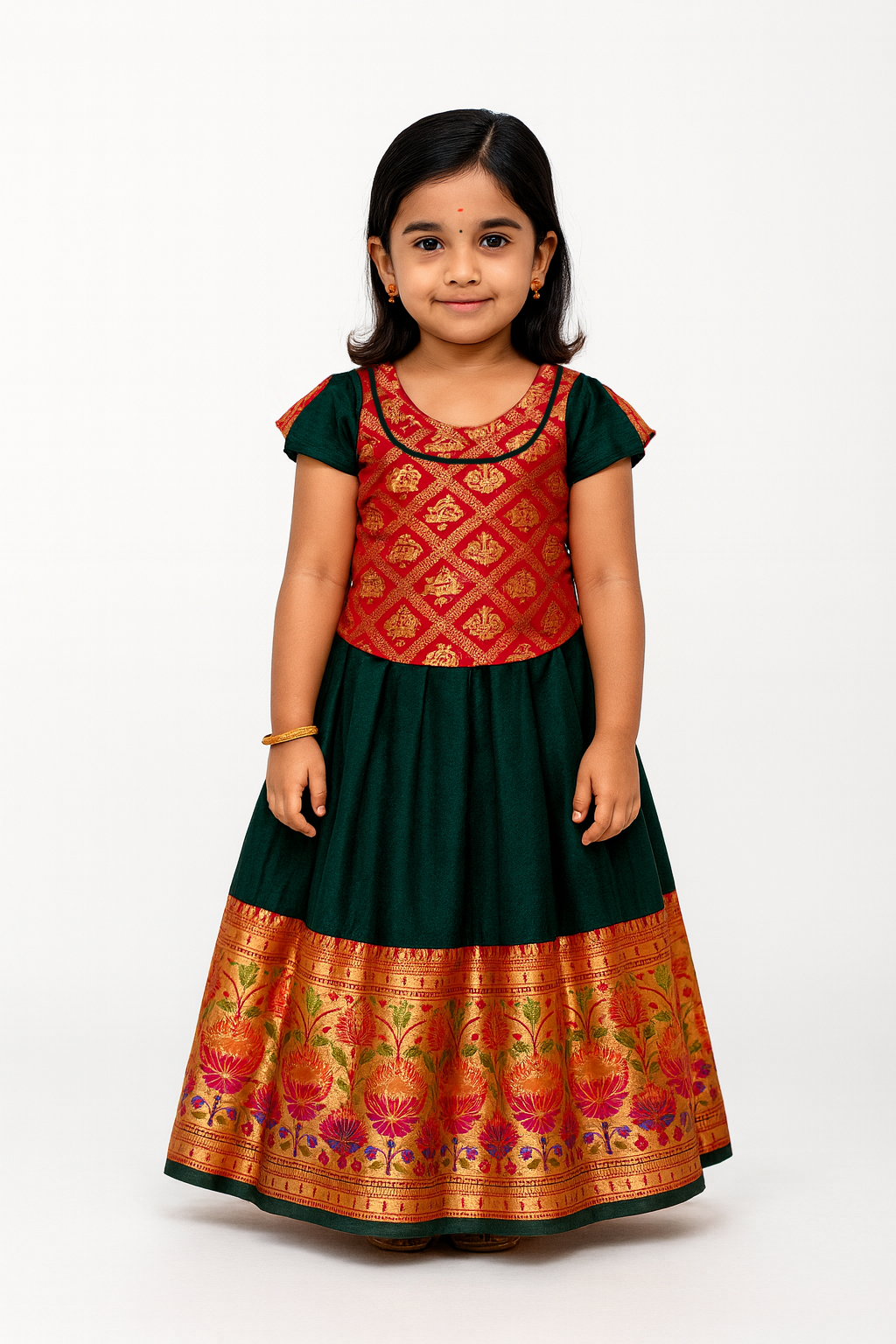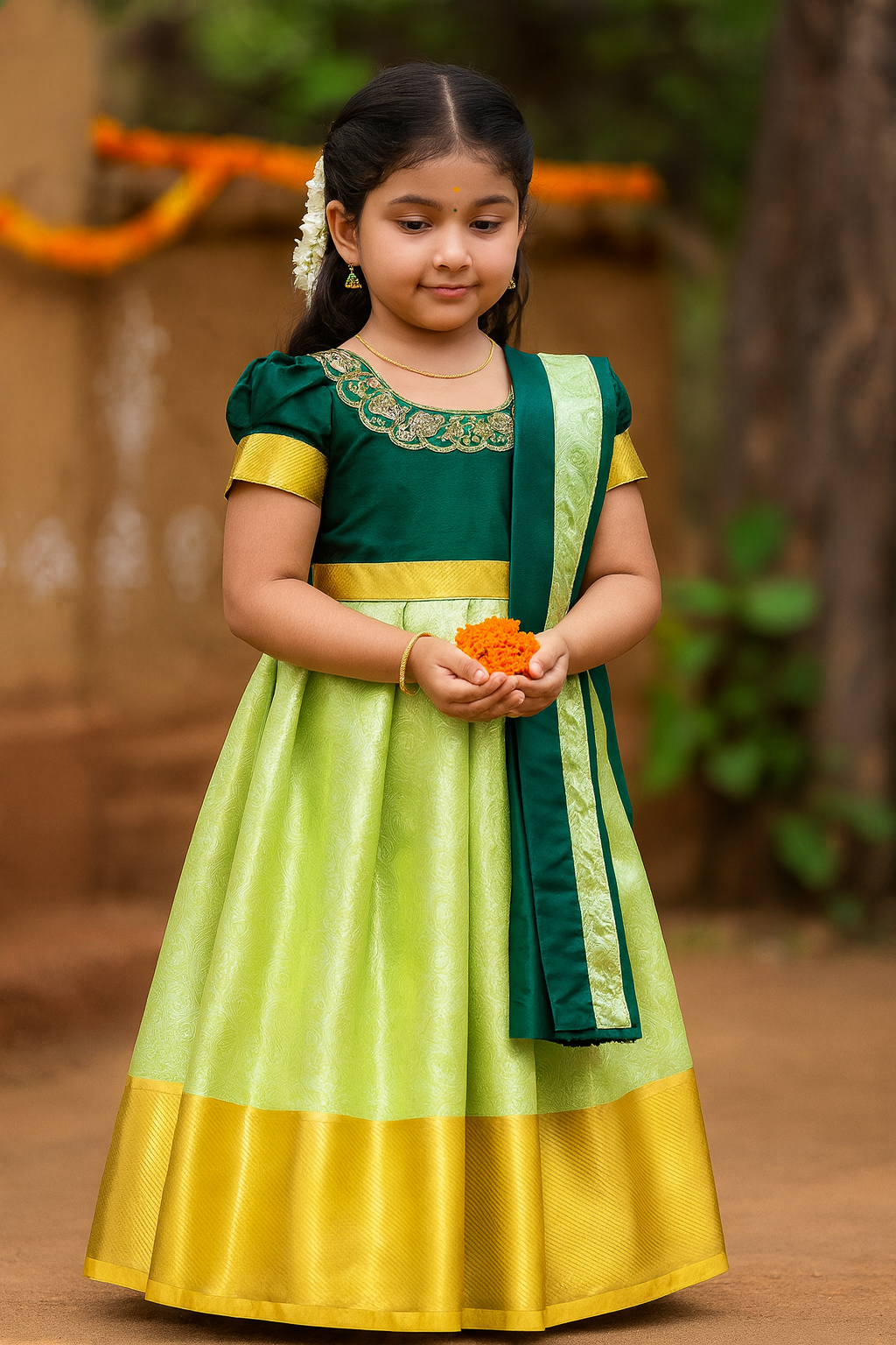 Kids Green Tisue AARI Ethnic Party Gown PG624