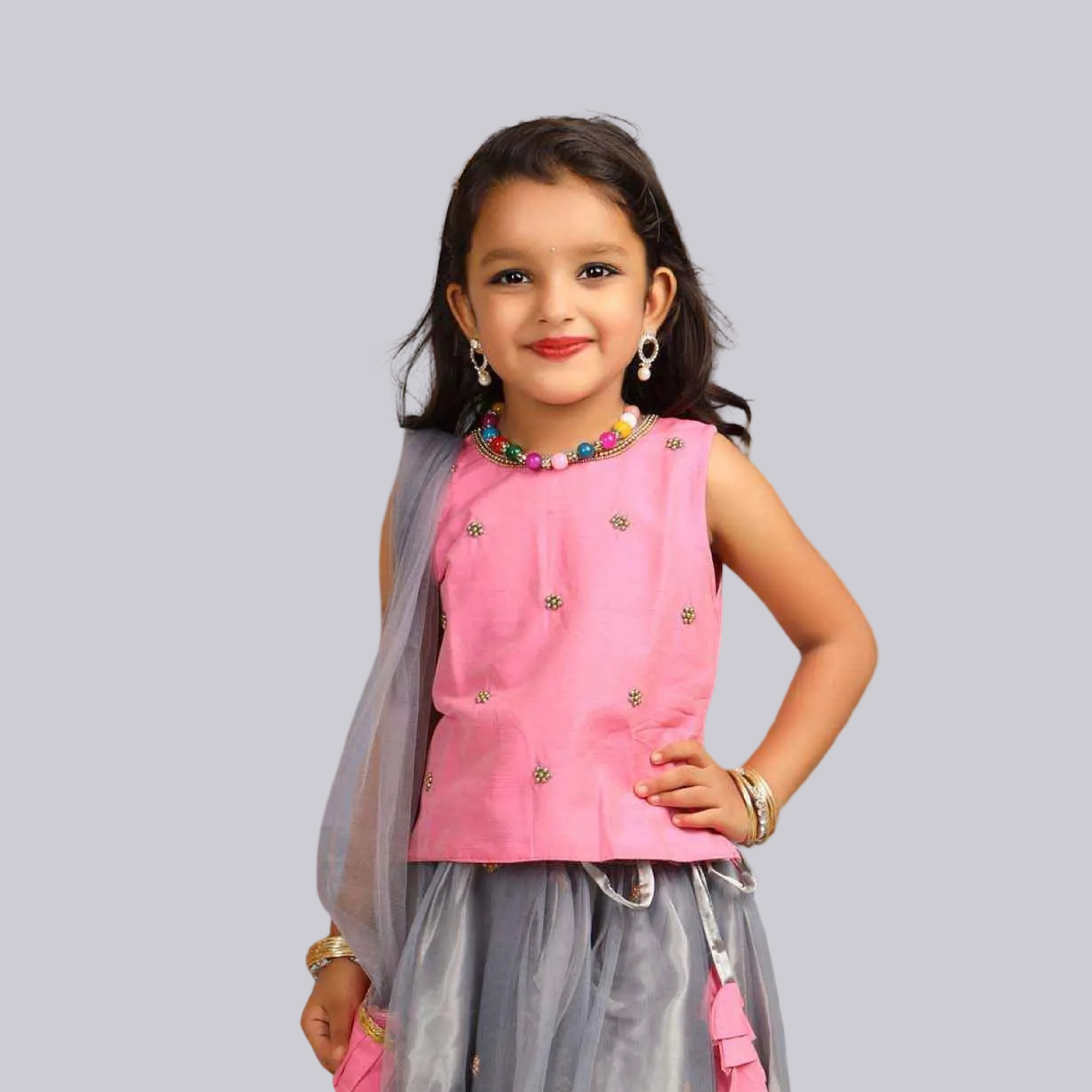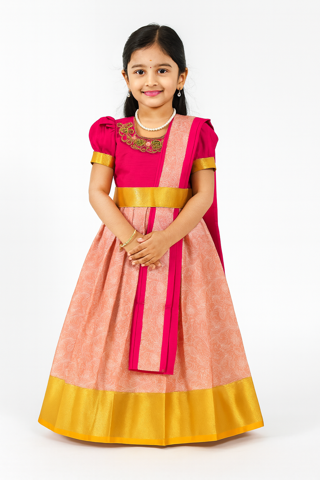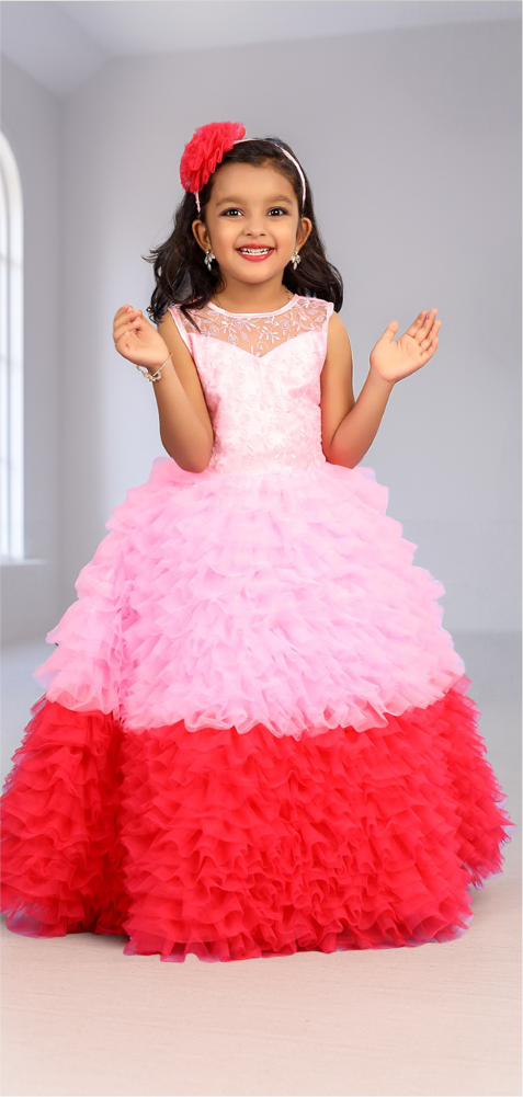 Kids Pink Tisue AARI Ethnic Party Gown PG625