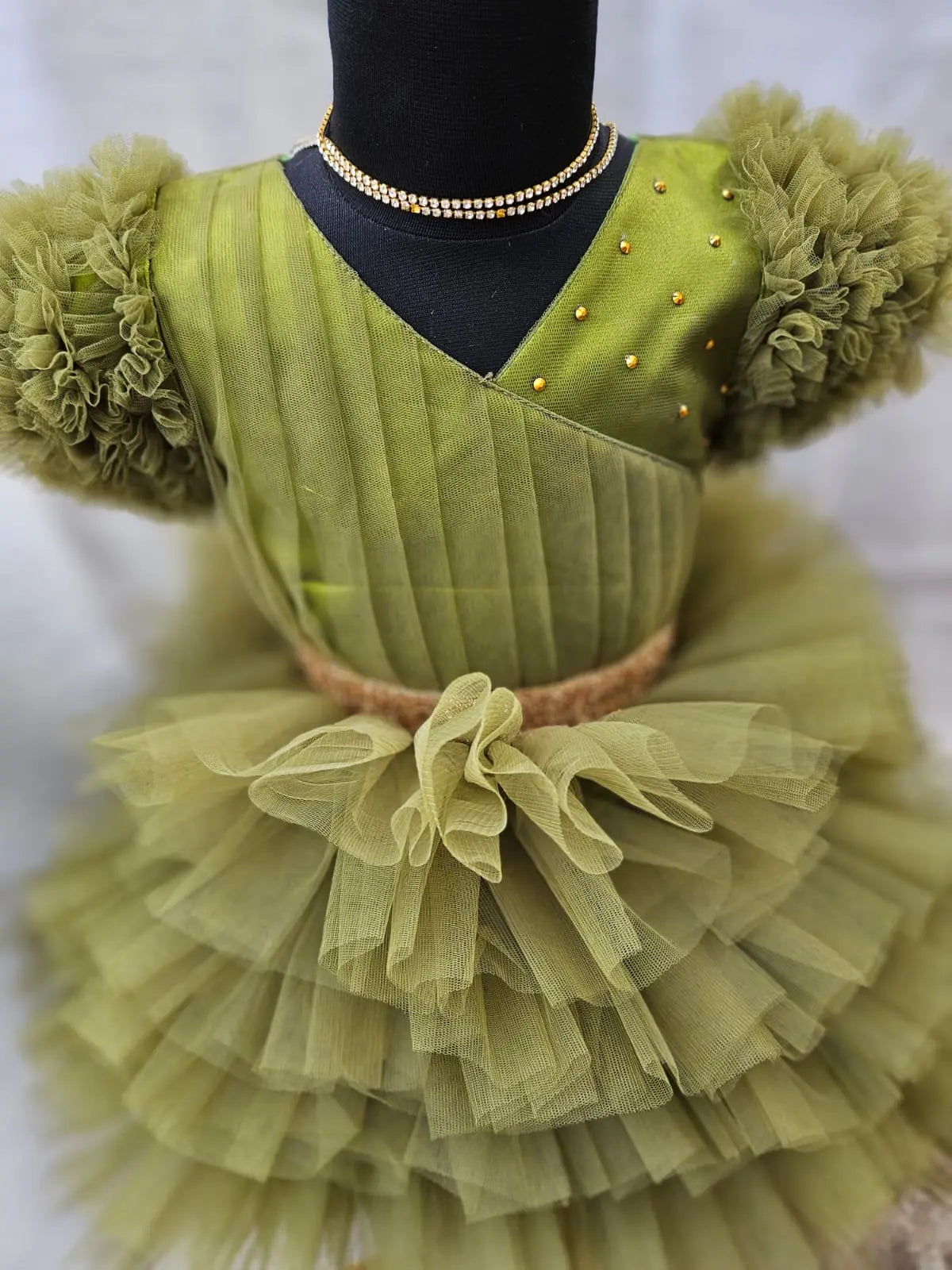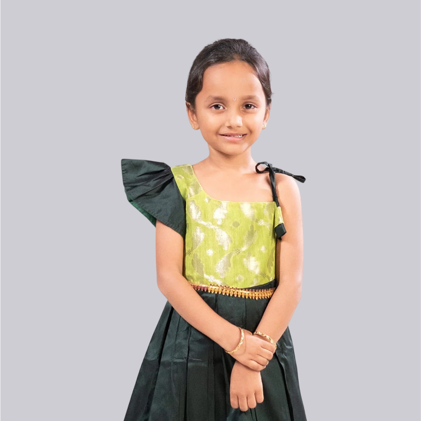 Kids Green Tisue AARI Ethnic Party Gown PG623