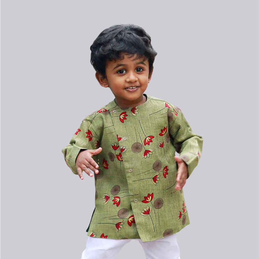Boys Rama Green Linen Cotton Kurta Pajama KP188