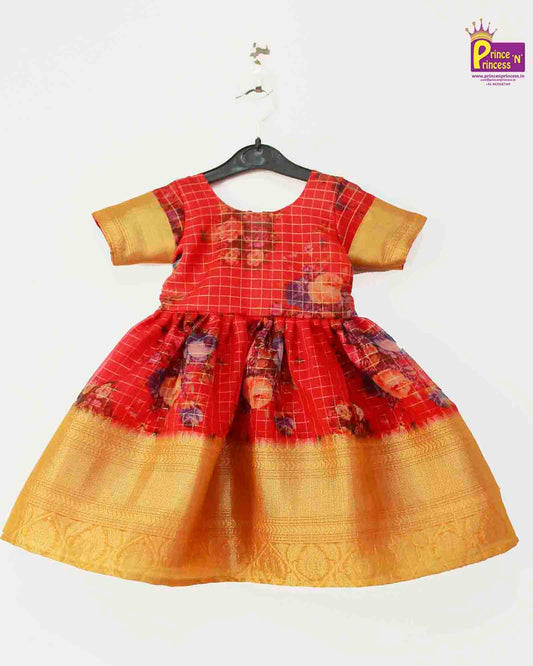 Kids Orange Ramagreen Embroidery Aari Work Pattu Pavadai PPP1053