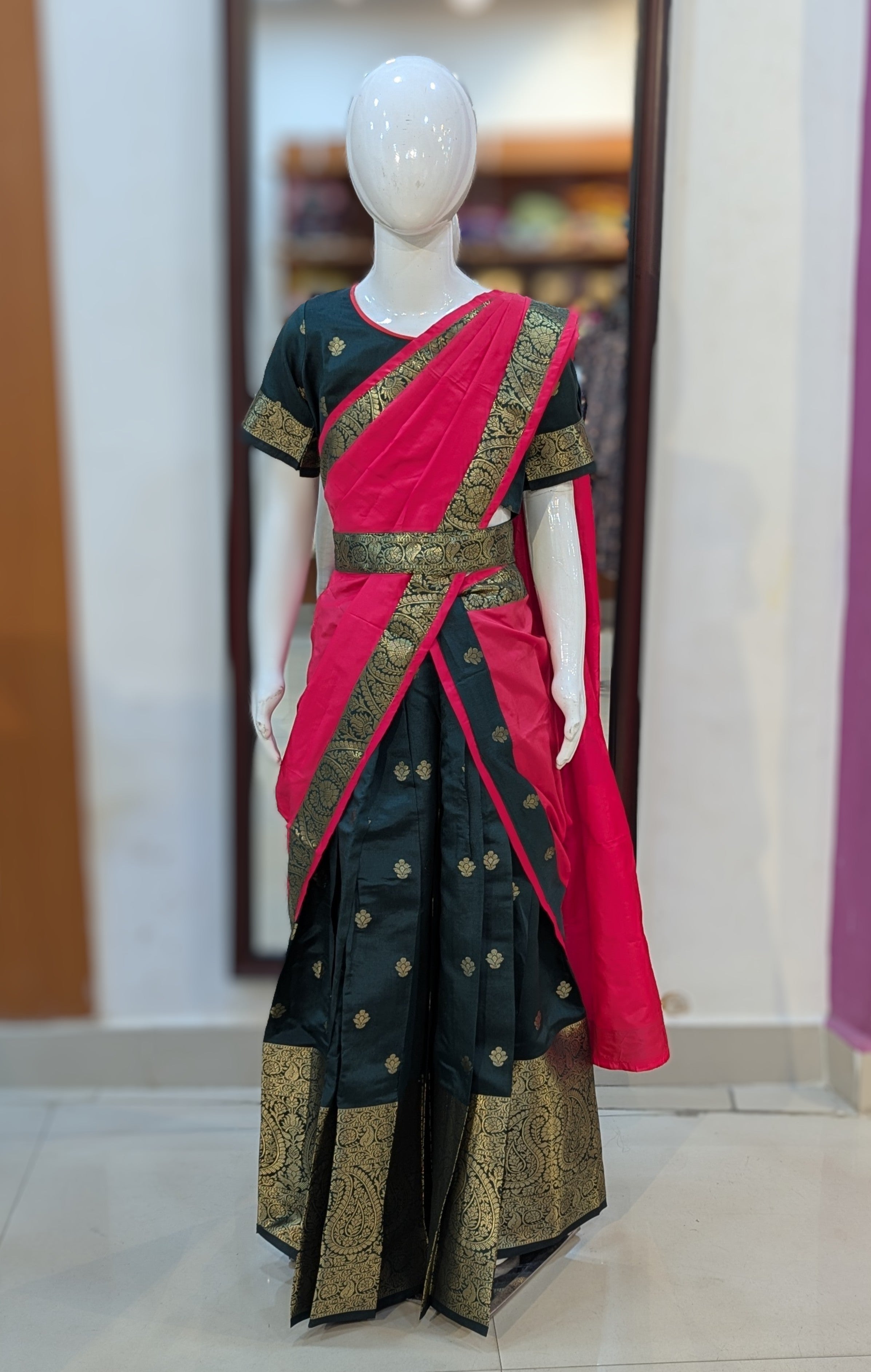 Green Rani Pink Half Saree or Dhavani for Little Princess HF025