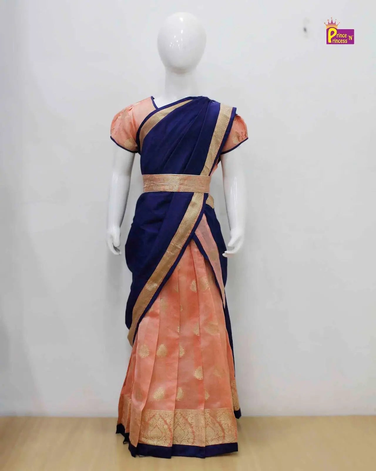 Peach Navy Blue Traditional Half saree for Little Princess HF037