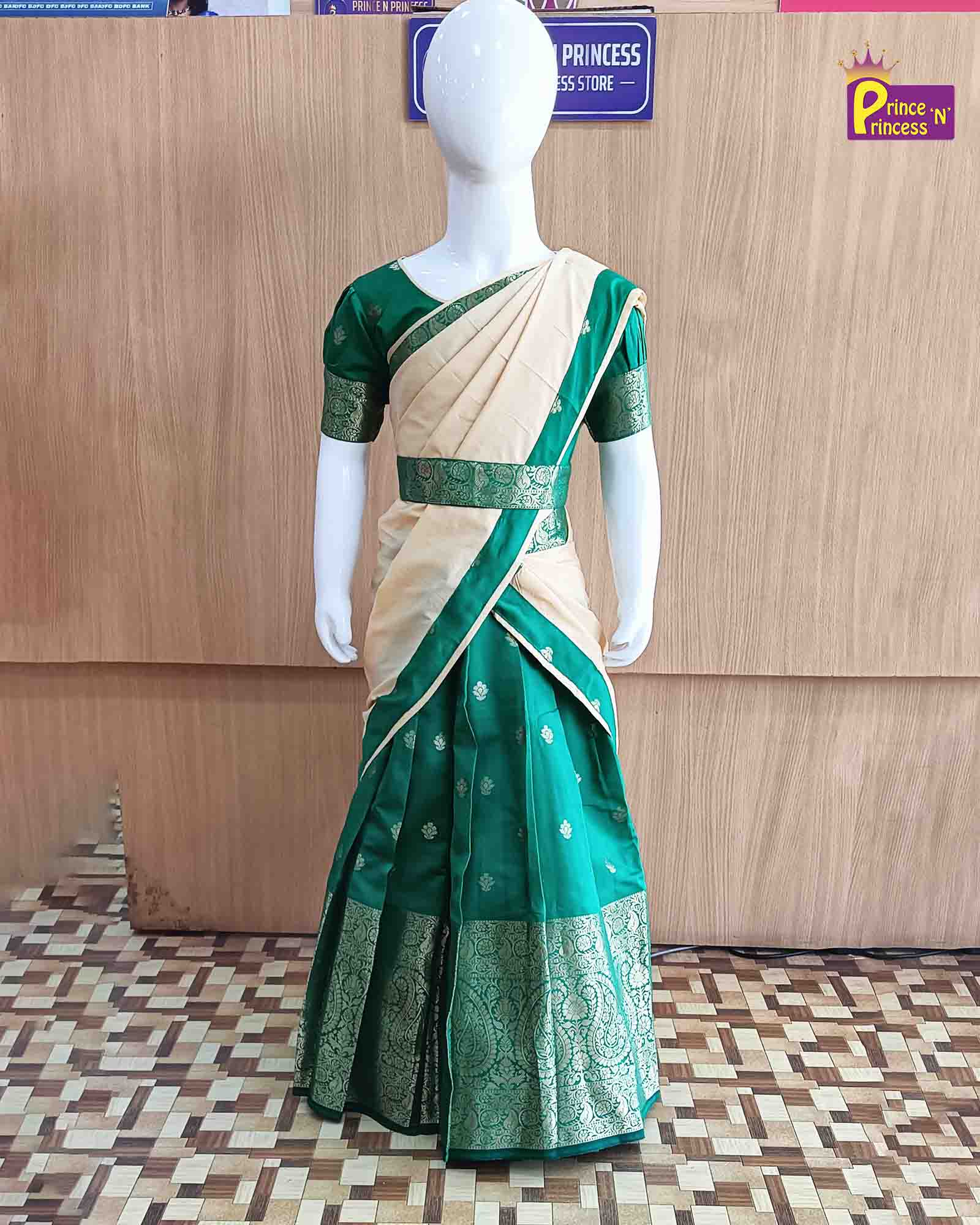Green Biege Half Saree or Dhavani for Little Princess HF022