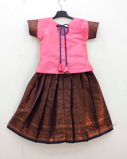 Kids Pink With Golden Yellow Traditional Pattupavadai PPP1833 ( We need 2-3 days of despatch time)