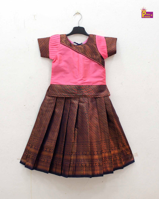 Kids Pink With Cream Traditional Pattupavadai PPP1921
