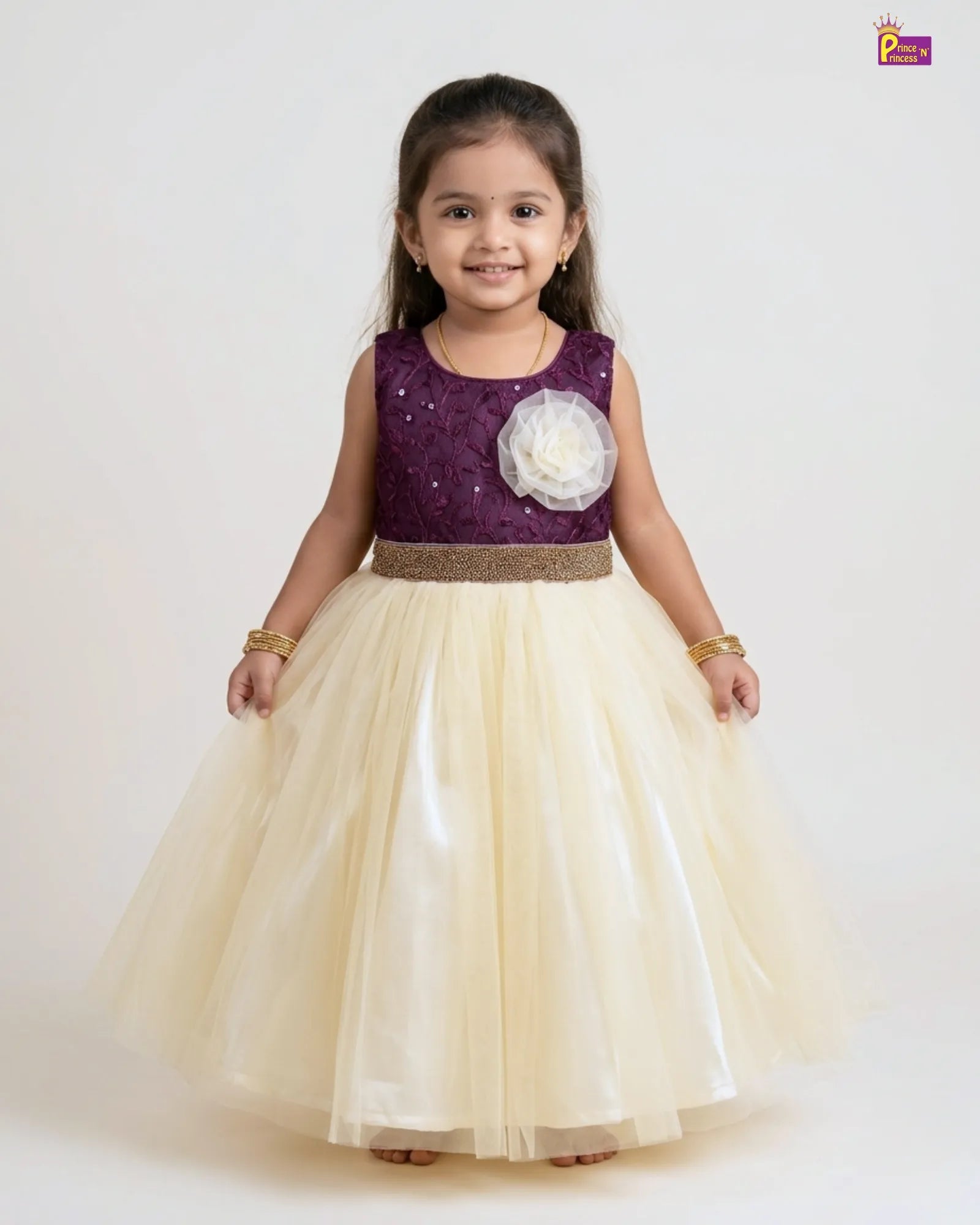 Party Gown for Girl - Baby Girl Purple Sequin Lace & Cream Tulle Ball Gown WGF087