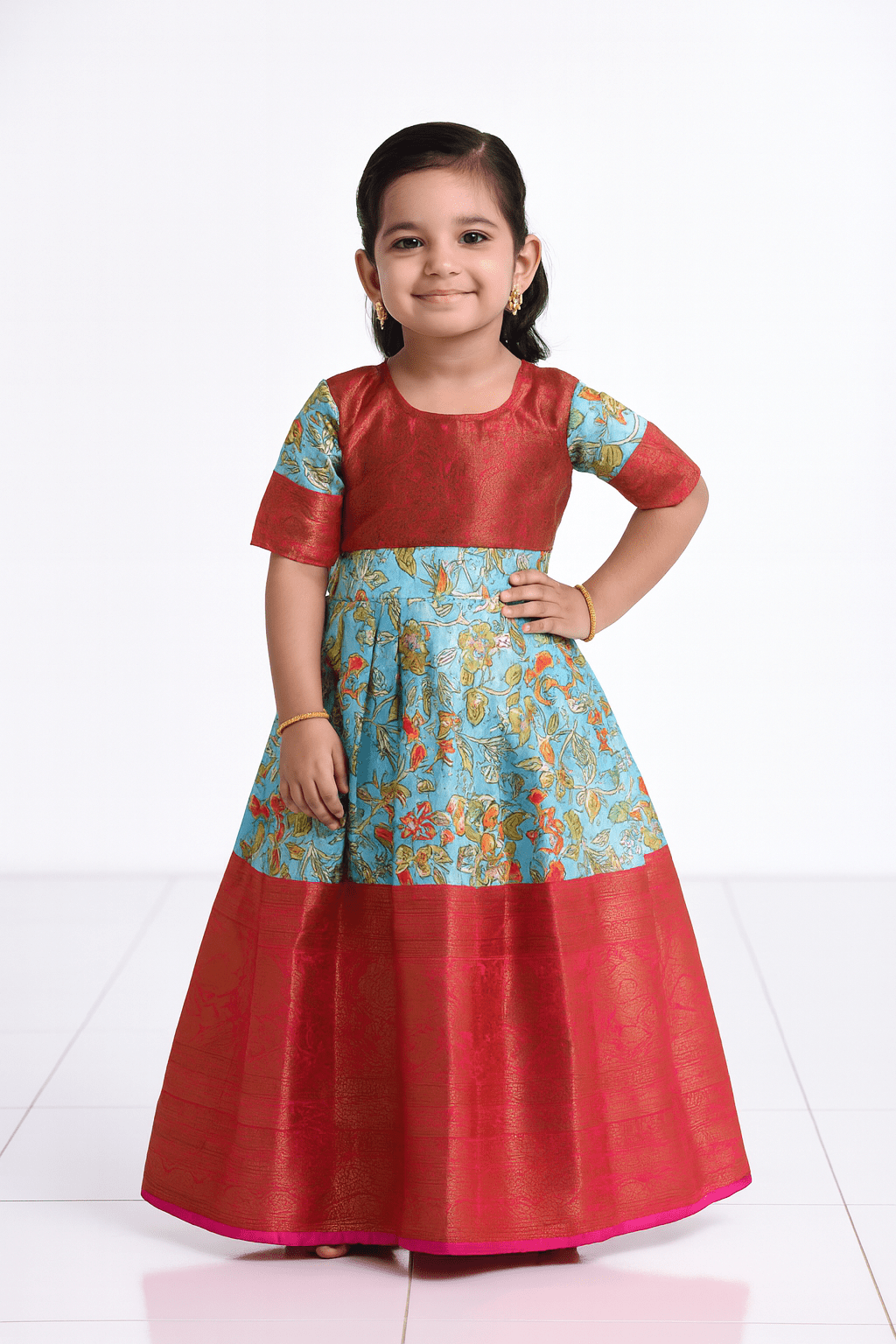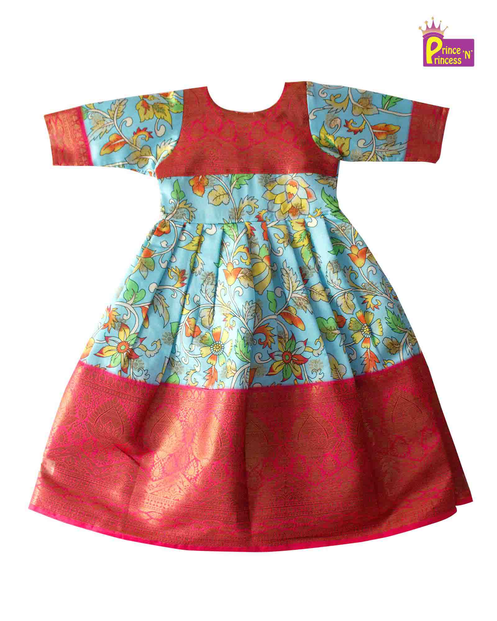 Blue Pink Kalamkari Design Gown PG318