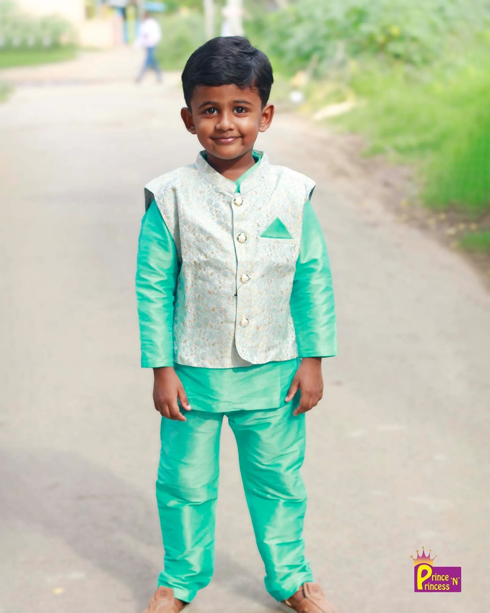 Kids Blue with Golden Traditional Aari Pattupavadai PPP1732 ( We need 2-3 days of despatch time)