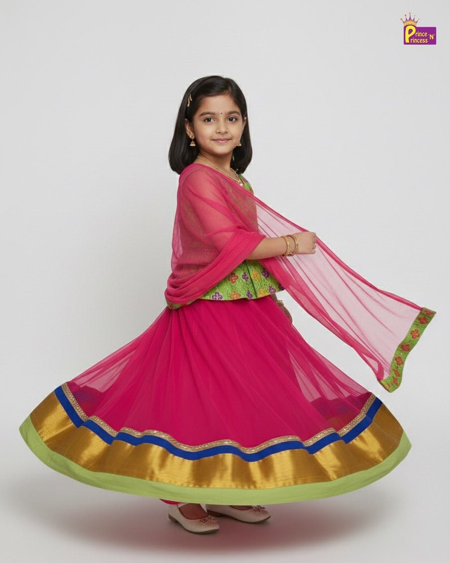 Green With Pnik Sequence Embroidery tops Lehenga Choli LC008