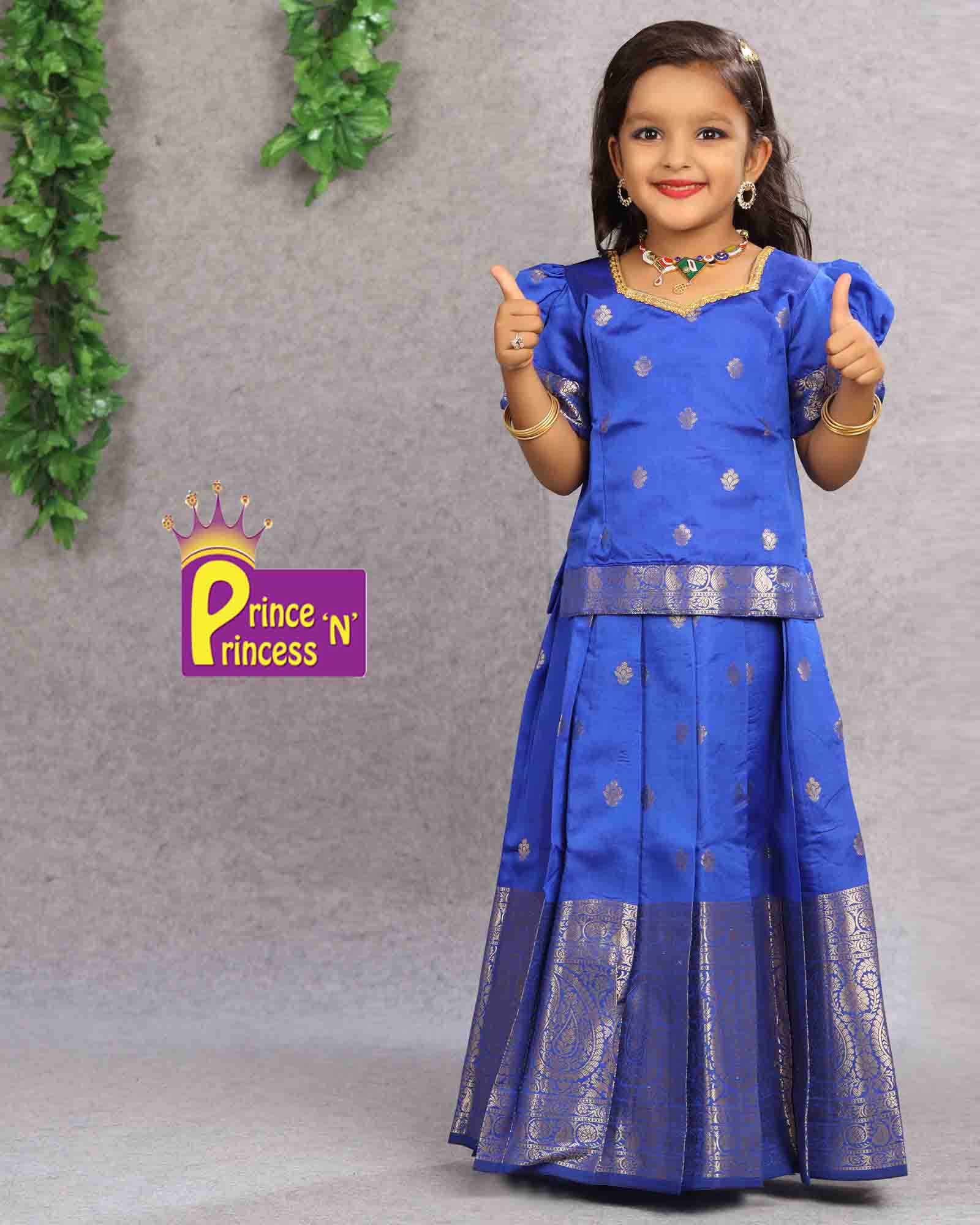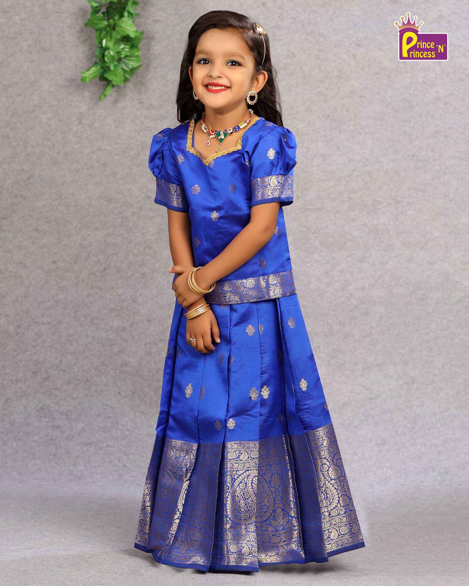Kids Blue Big Border Traditional Pattu Pavadai PPP1105