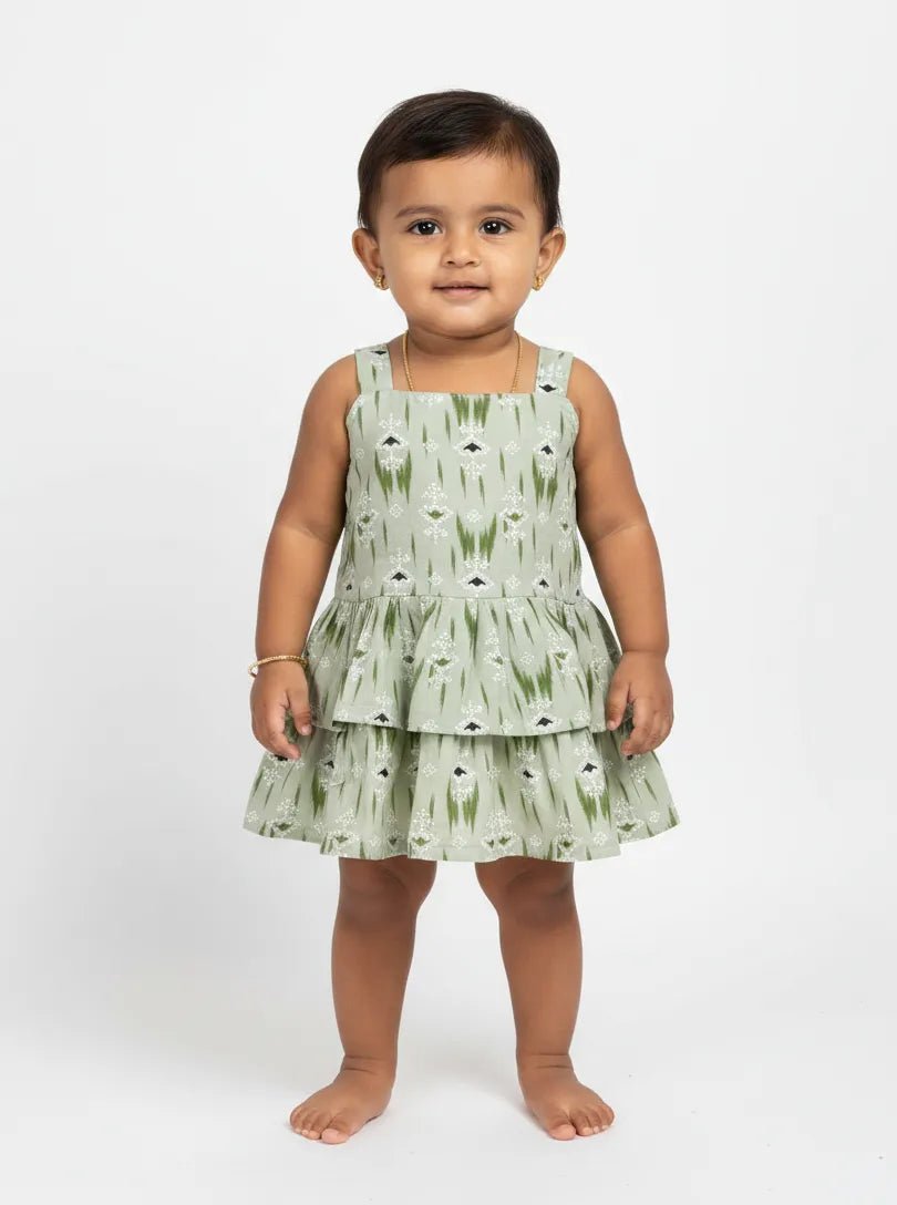 New Born Chettinad Cotton Frock Orange with Green LF1727