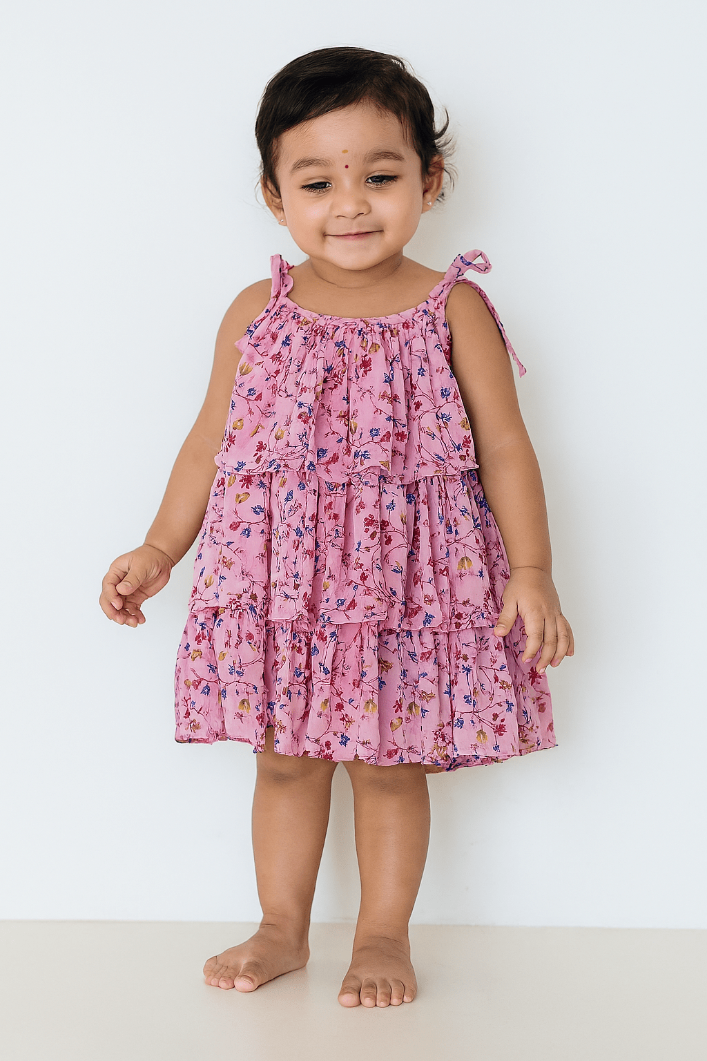 Kids Traditional Aari Pattu Pavadai for Girls - Pink Raw Silk designed with Elegant Look | PPP1946