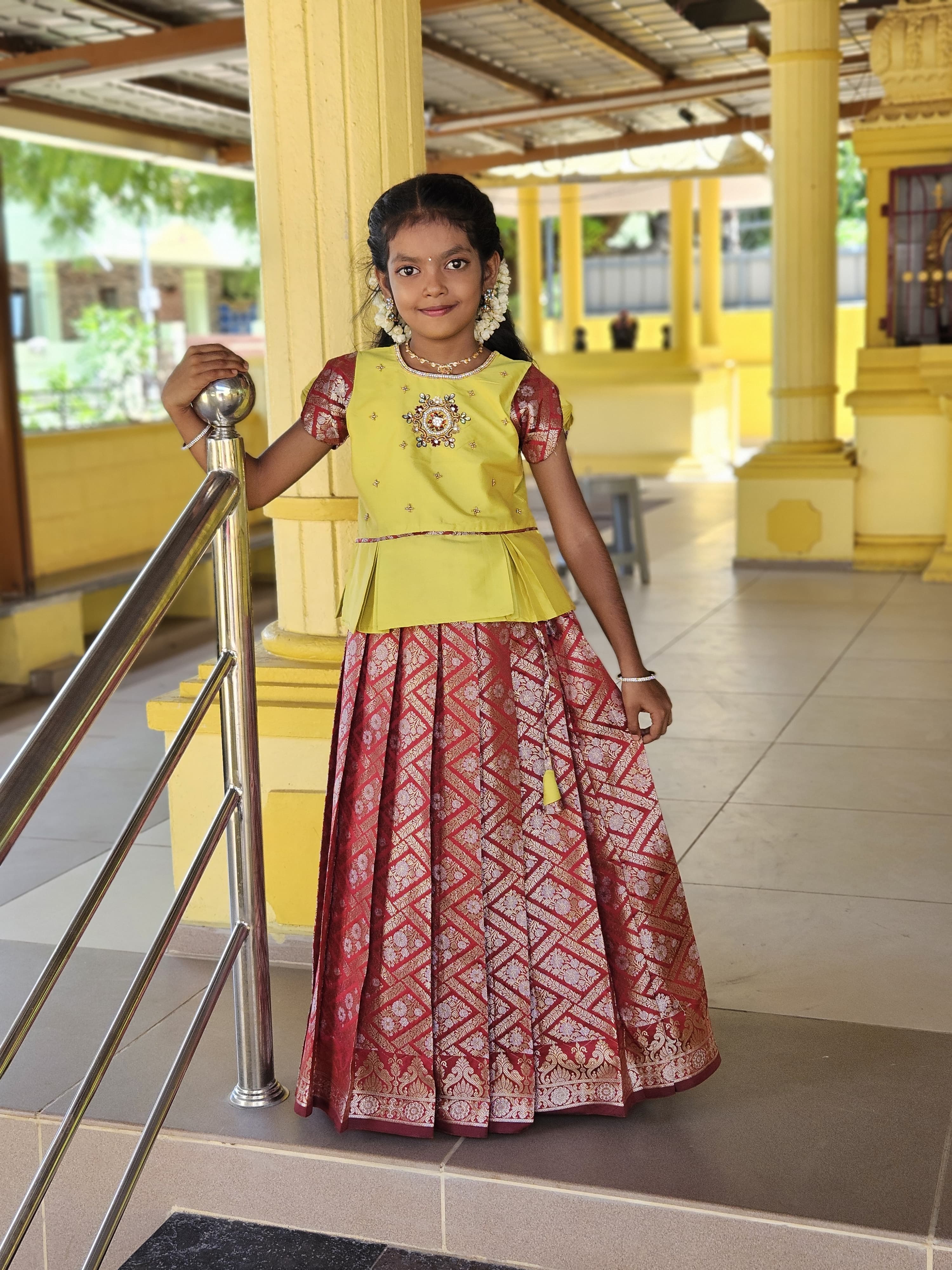 Material : Top (Rawsilk) ,skirt (Digital Satin Banarasi Silk )