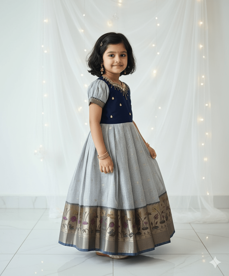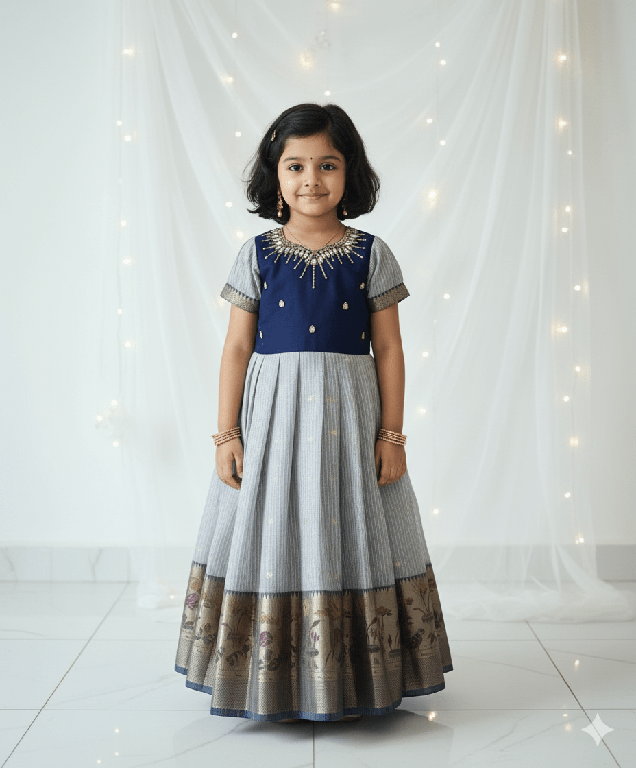 Kids Navy Tisue AARI Ethnic Party Gown PG622