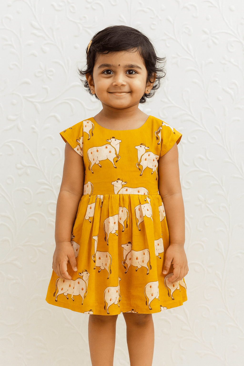Girls Cotton Knee Frock - Breathable Summer Dress for Kids CF400