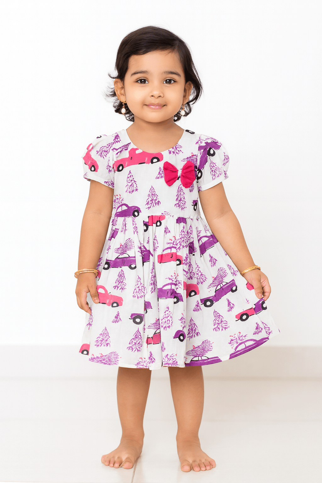 Girls Cotton Knee Frock - Breathable Summer Dress for Kids CF400