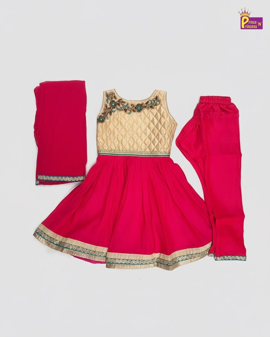 New Born Pink with Gold Banarasi Silk Knot Type Frock LF1666