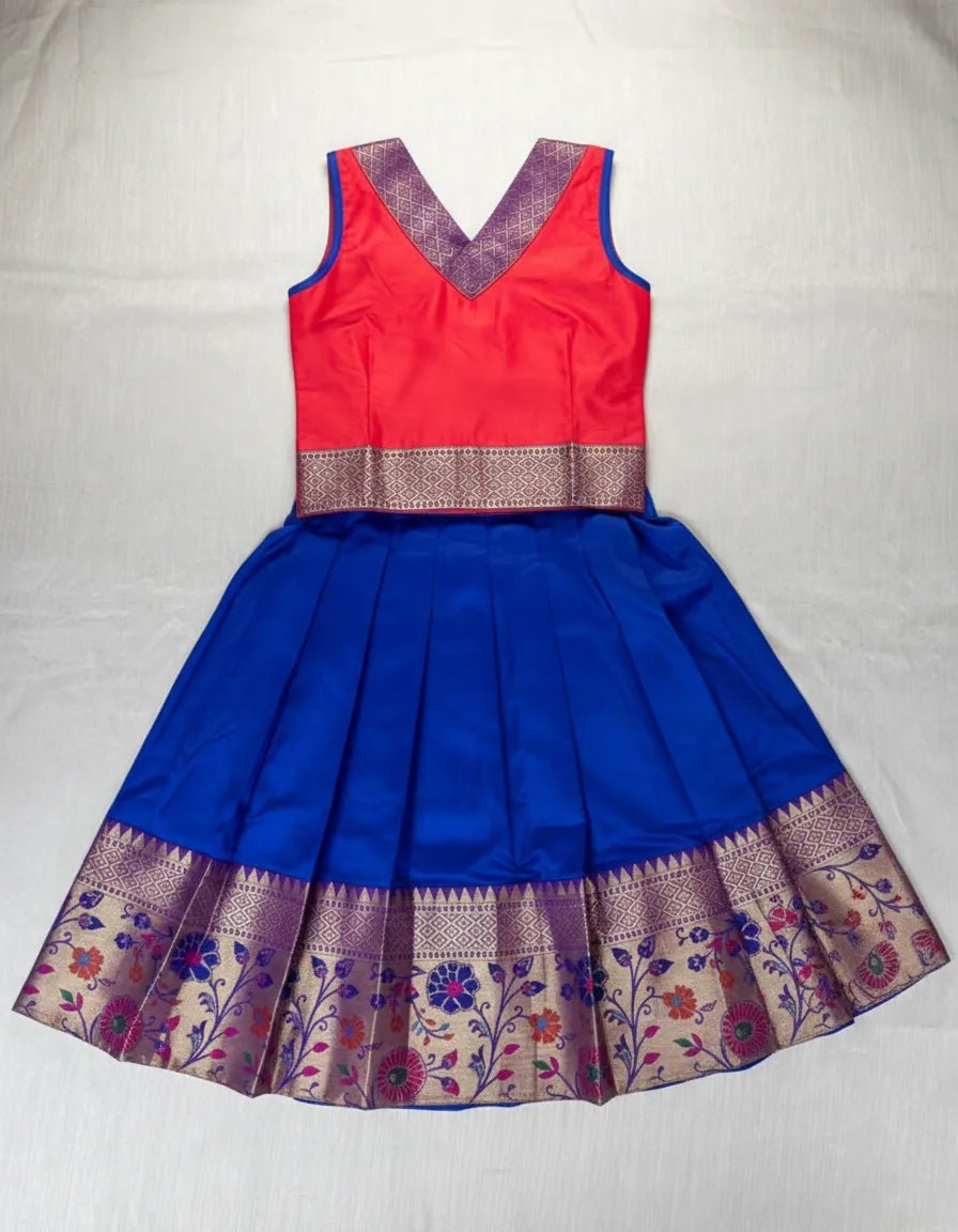 Kids Traditional Pattupavadai Red with Pepsi Blue PPP1981