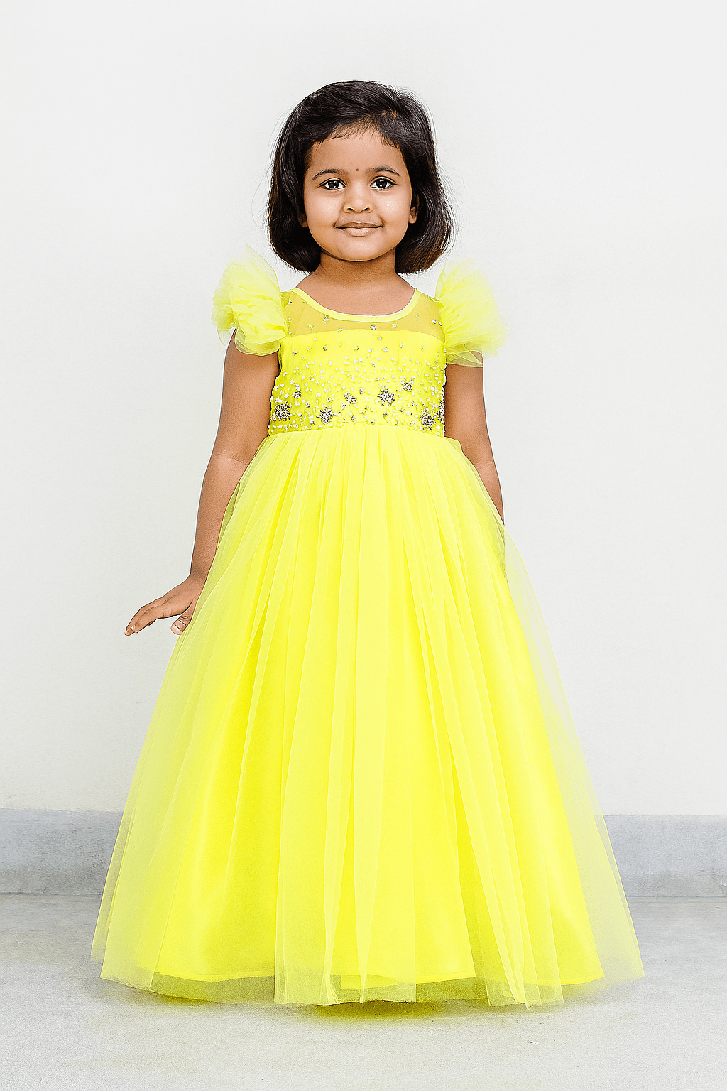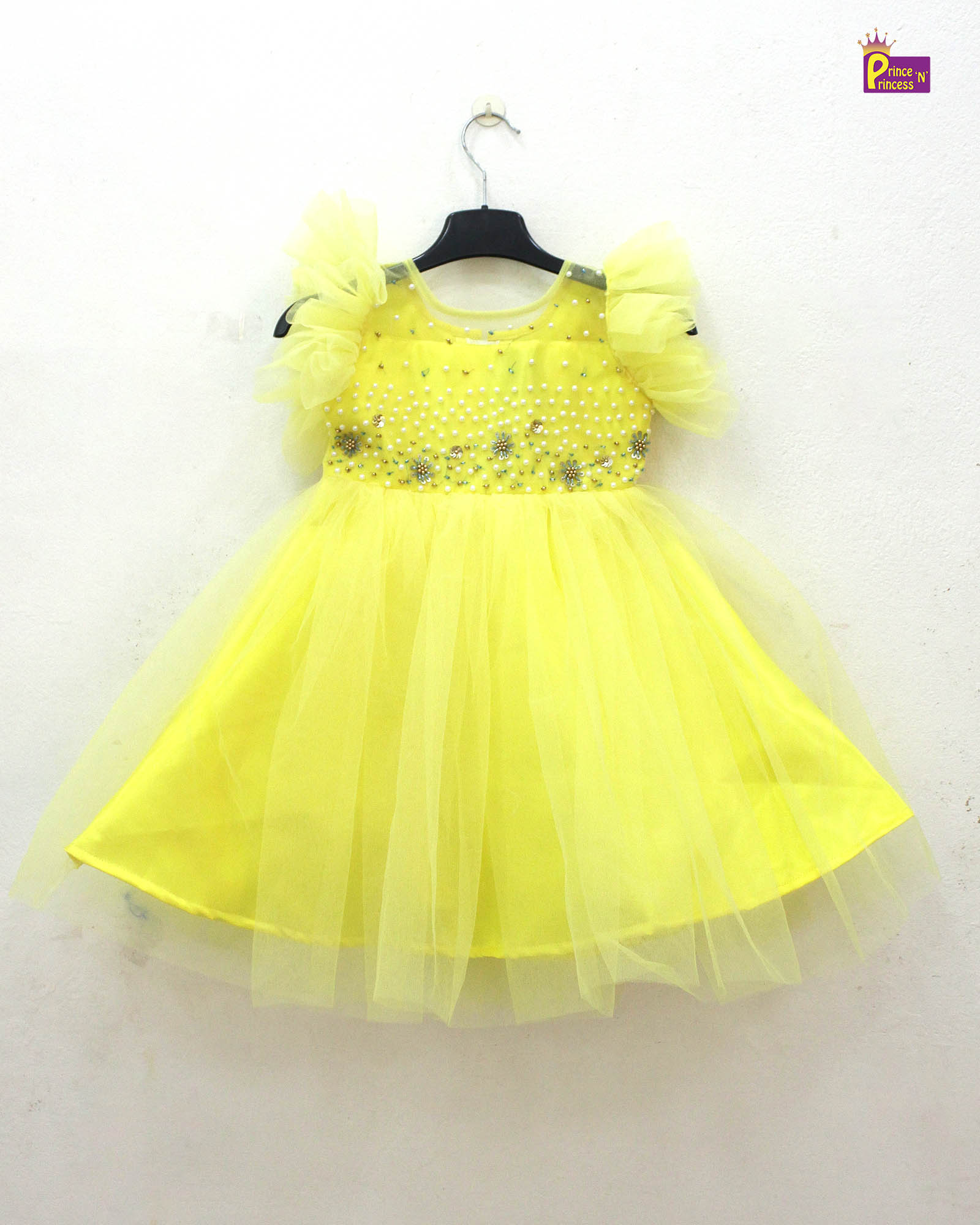 Kids Yellow Aari work Prince N Princess Birthday Gown WGF034