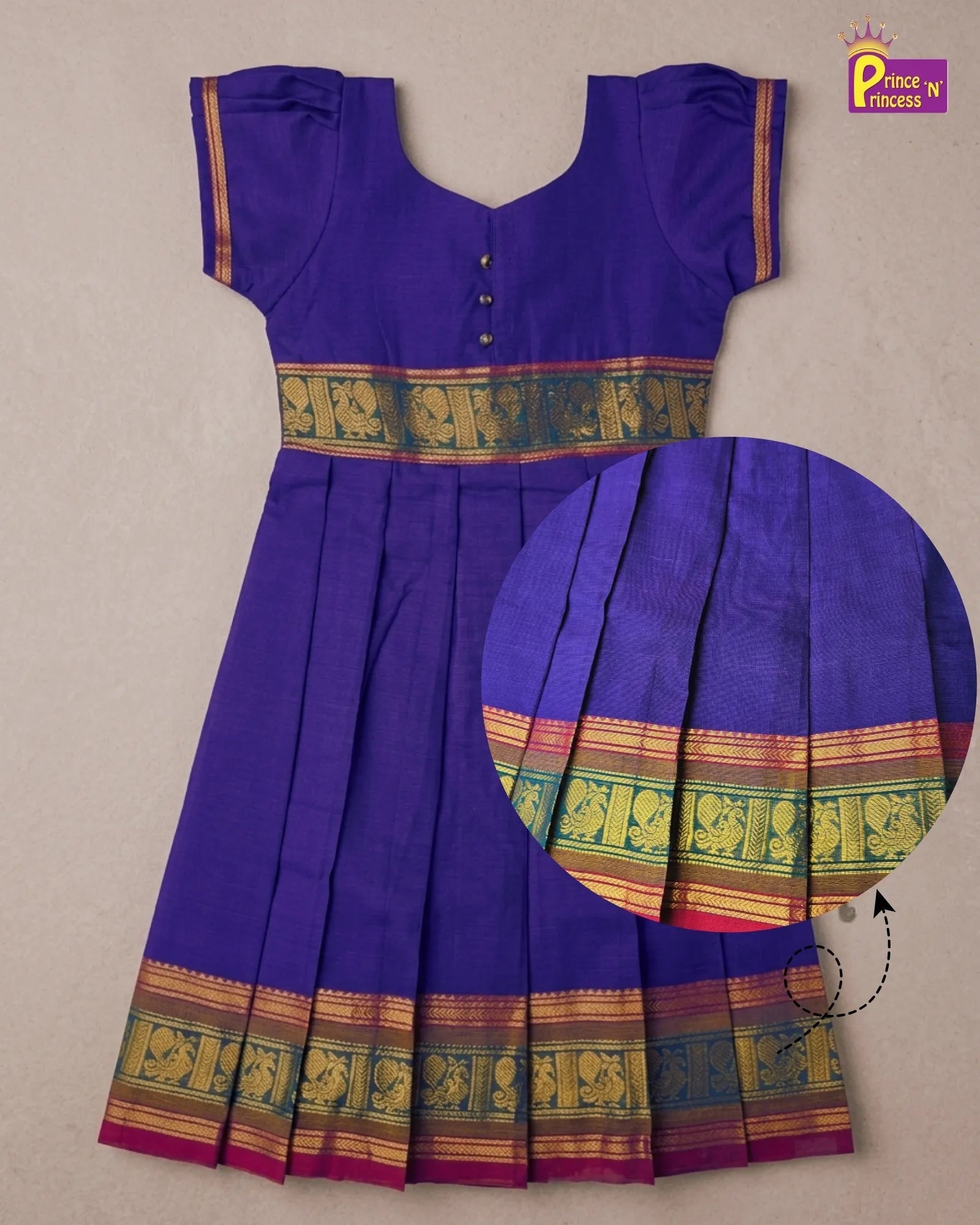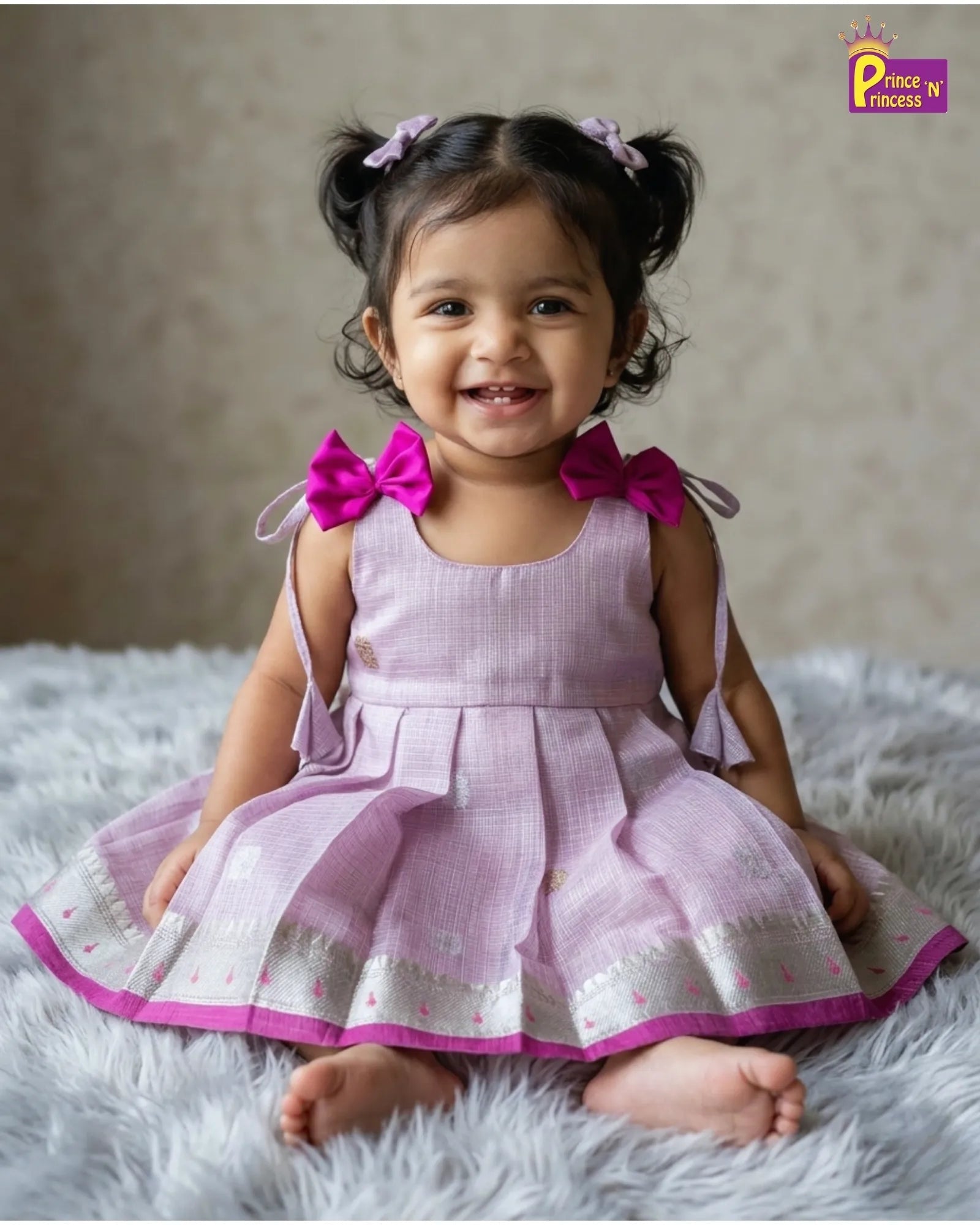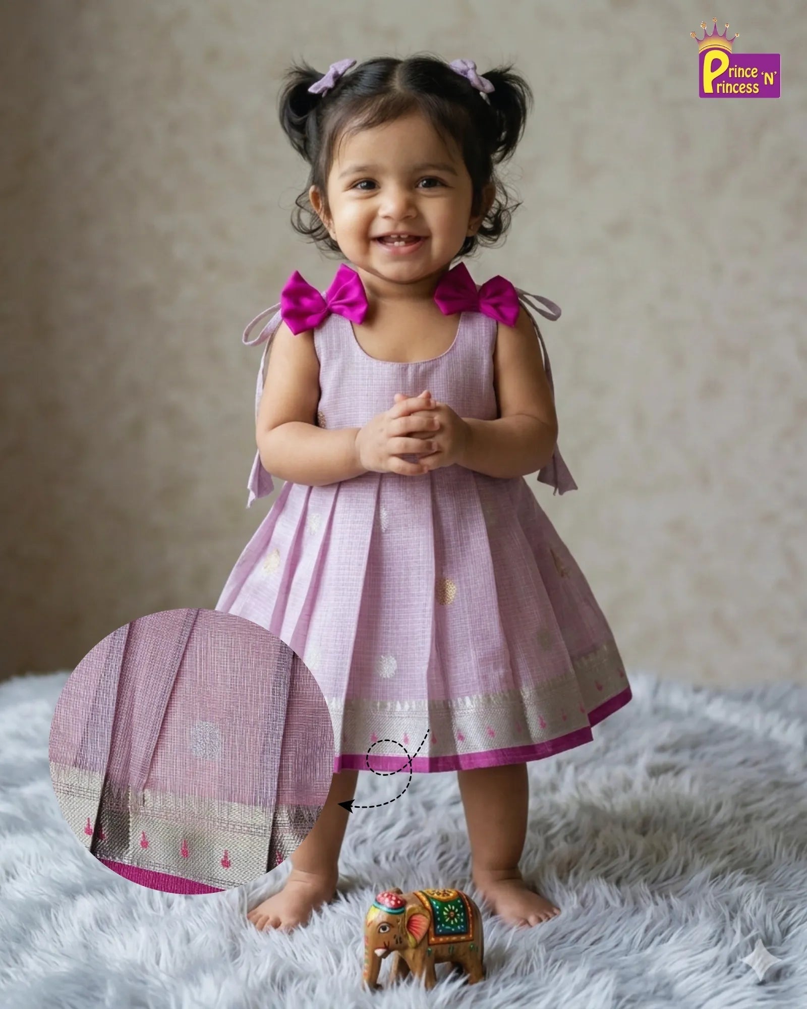 Every Prince N Princess Royal Moments Gift box includes a matching handcrafted silk thread bangle, thoughtfully paired with our premium pattu frock (Size S). Designed to perfectly fit babies around 1 year old, the bangle is lightweight, skin-friendly, and adds a charming traditional touch to your little one’s special occasion look.