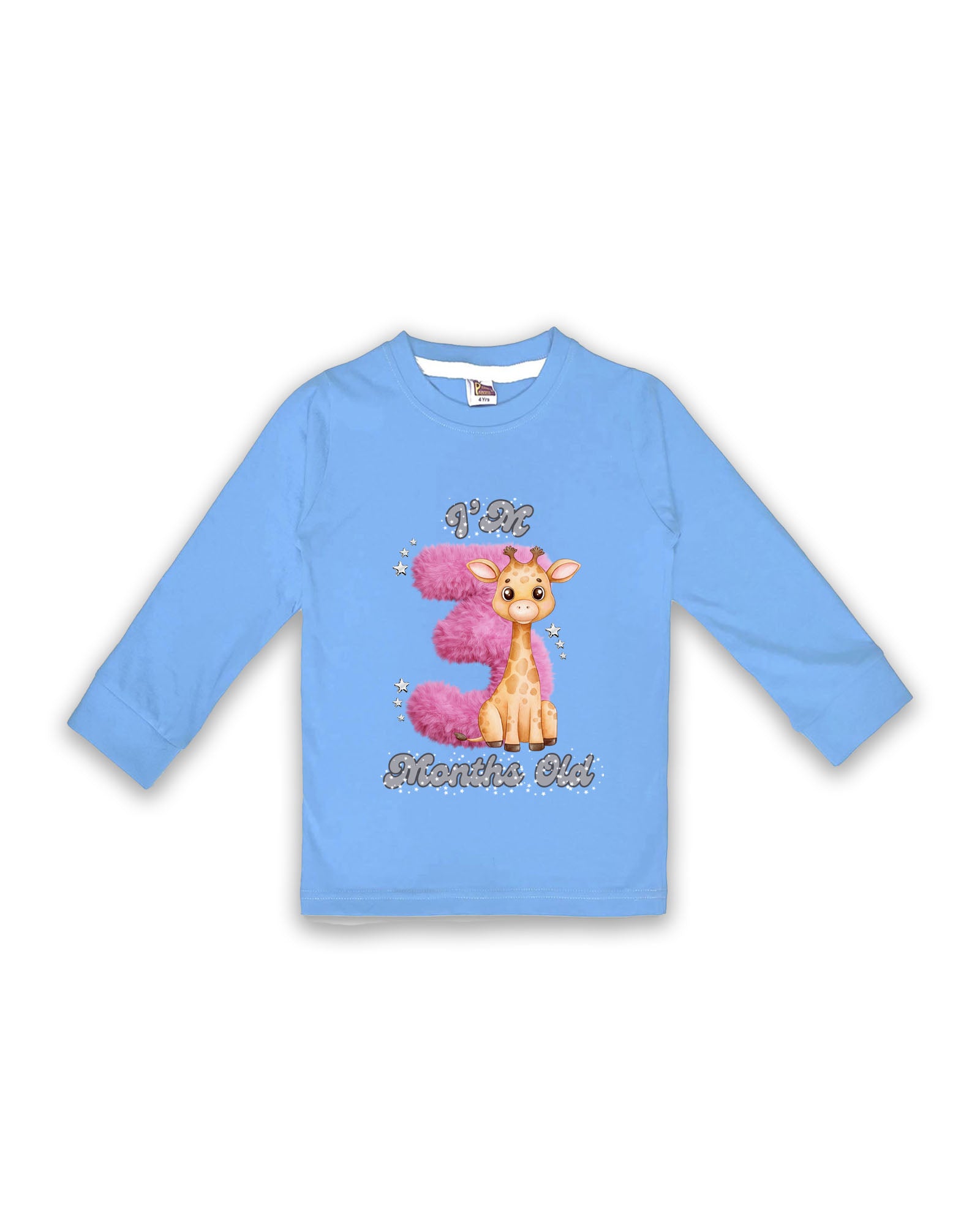 Celebrate your baby girl's 3-month milestone with this adorable full sleeve tees featuring a fluffy pink number “3” and a sweet giraffe print. Made with soft, breathable cotton, this cozy brown tees is gentle on delicate skin and perfect for photoshoots, milestone celebrations, or gifting. The cute design adds a fun, magical touch to your baby’s special day!
