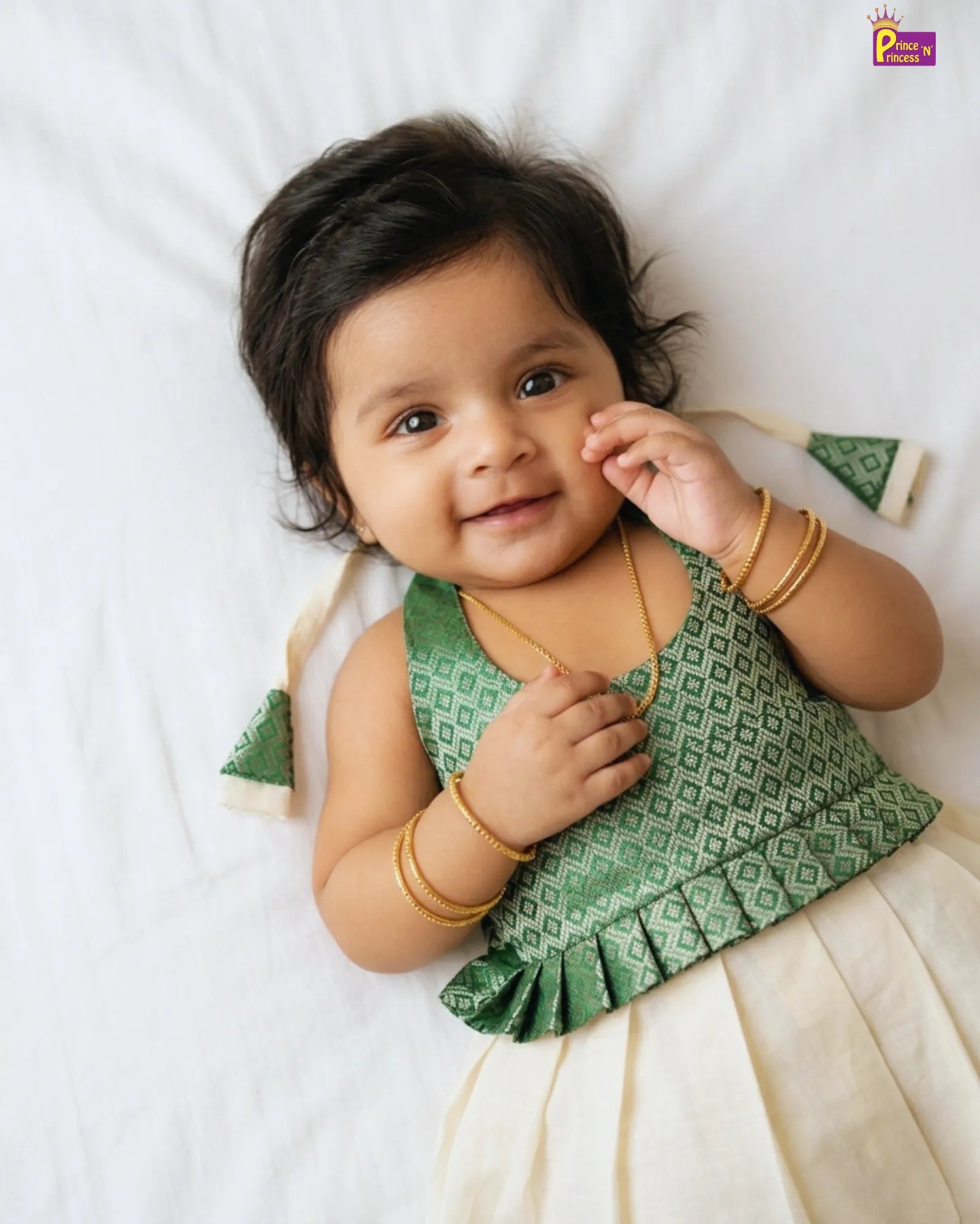 Kerala Pattu Frock for Baby Girls Green Kasavu Traditional Dress LF1904