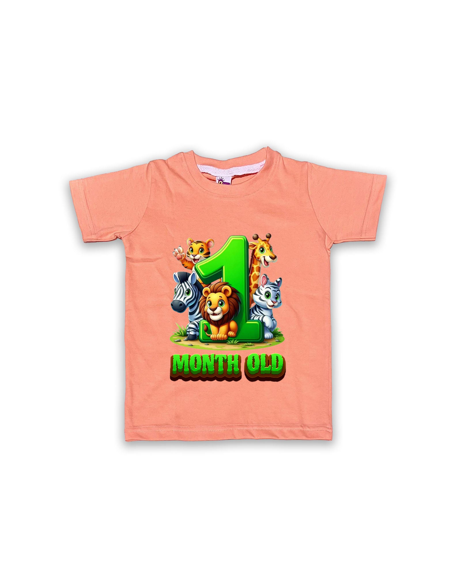 1-Month Milestone Tee: Fun and colorful jungle-themed design with “1 Month Old” print.