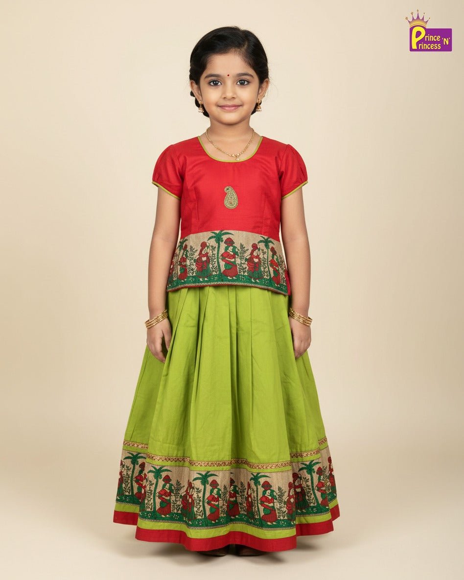 Raw Silk Banarasi Border Pattu Pavadai Red With Green PPP2007