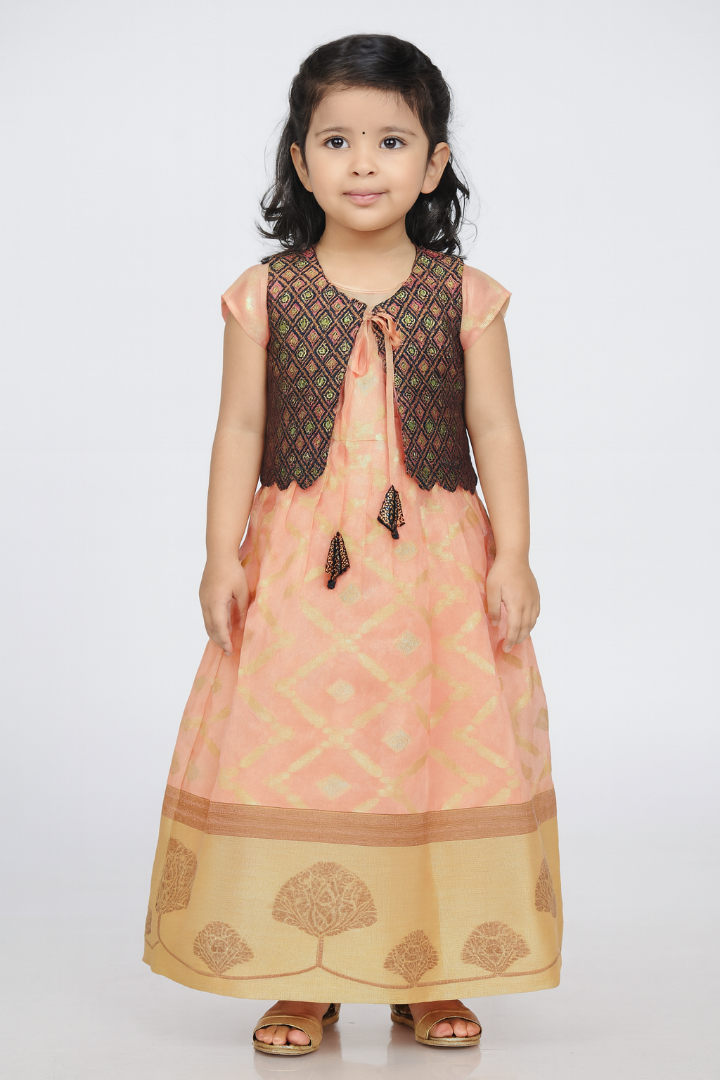 Type : Full Length Gown with Pleasted Banarasi Coat